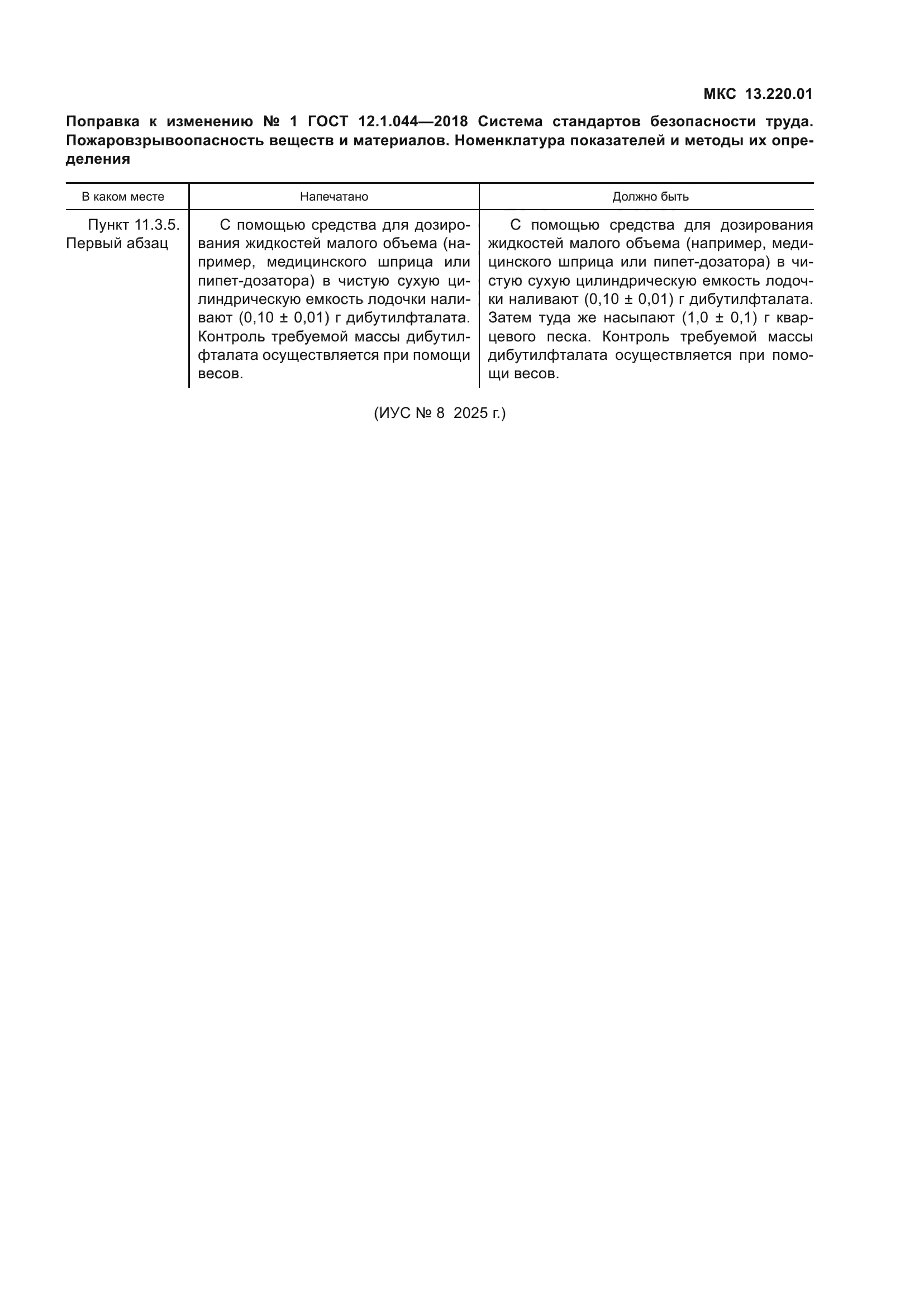 | Приложение №1: | Изменение к ГОСТ 12.1.044-2018. Поправка к изменению |