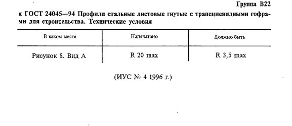 | Название рус.: | Профили стальные листовые гнутые с трапециевидными гофрами для строительства. Технические условия |