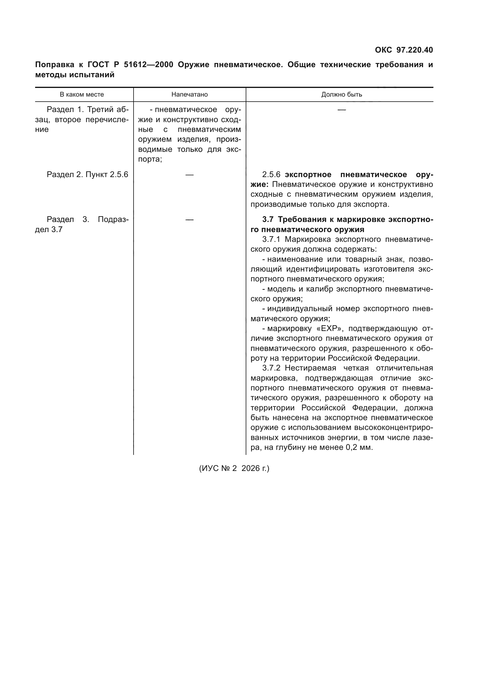 | Область применения: | Настоящий стандарт распространяется на спортивное, охотничье пневматическое оружие, а также пневматическое оружие для любительской стрельбы и спорта и конструктивно сходные с пневматическим оружием изделия. Требования настоящего стандарта не распространяются на:- боевое пневматическое оружие;- пневматическое оружие и конструктивно сходные с пневматическим оружием изделия, производимые только для экспорта;- экспериментальные и находящиеся в стадии разработки пневматическое оружие и конструктивно сходные с пневматическим оружием изделия;- маркеры для игры в пейнтбол;- ружья и пистолеты для подводной охоты;- промышленное и потребительское пневматическое оборудование, предназначенное для забивания гвоздей, скоб и т.п., забоя скота и т.д.;- изделия, которые к оружию не относятся, - винтовки, пистолеты и револьверы с дульной энергией до 0,5 Дж;- ранее разработанные, серийно выпускаемые и сертифицированные пневматическое оружие и конструктивно сходные с пневматическим оружием изделия |