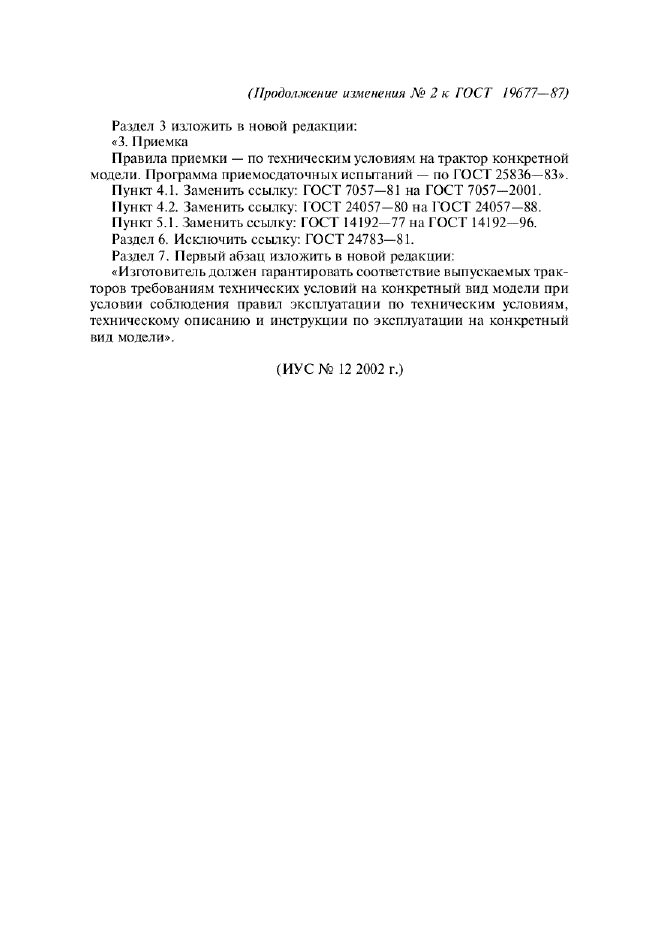 | Взамен в части: | ГОСТ 19677-74 в части сельскохозяйственных тракторов |