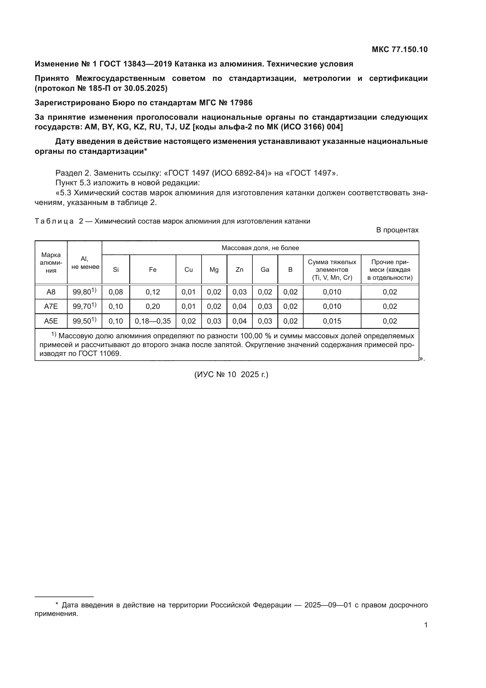 | Приложение №1: | Изменение №1 к ГОСТ 13843-2019 |