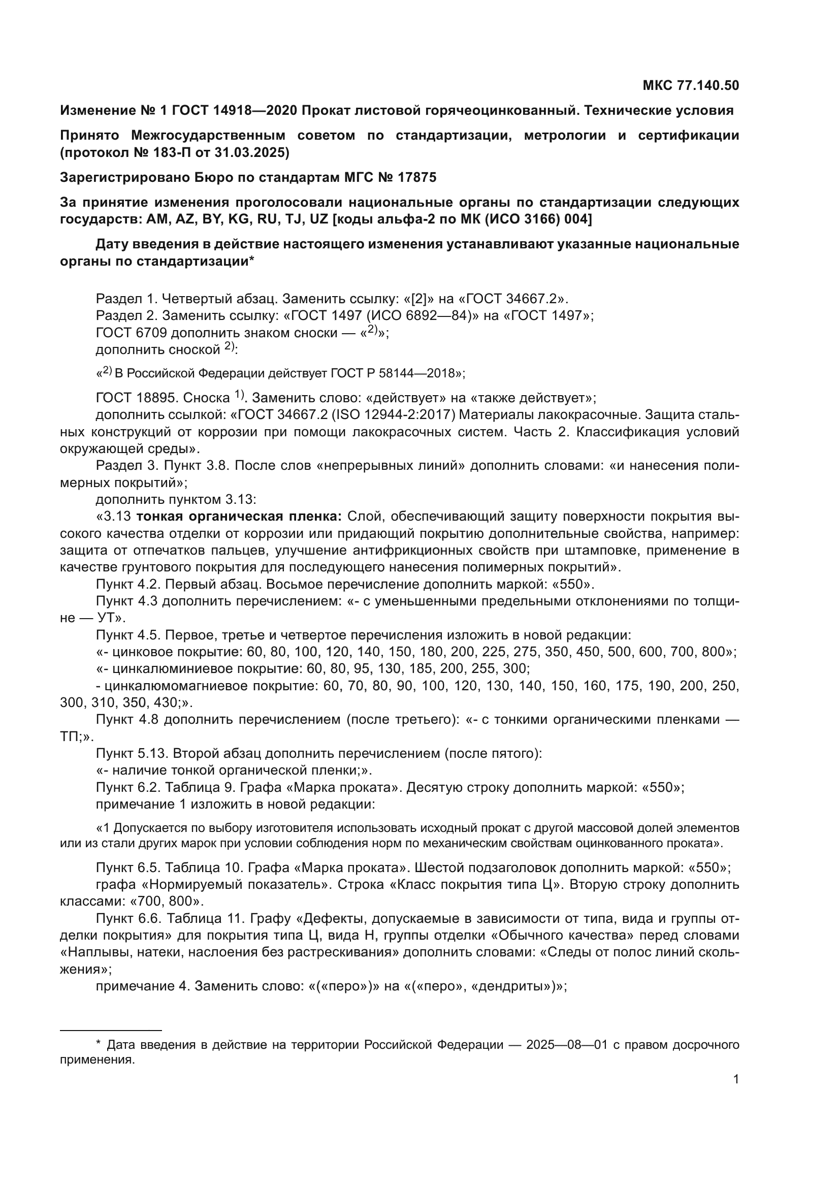 | Приложение №1: | Изменение №1 к ГОСТ 14918-2020 |