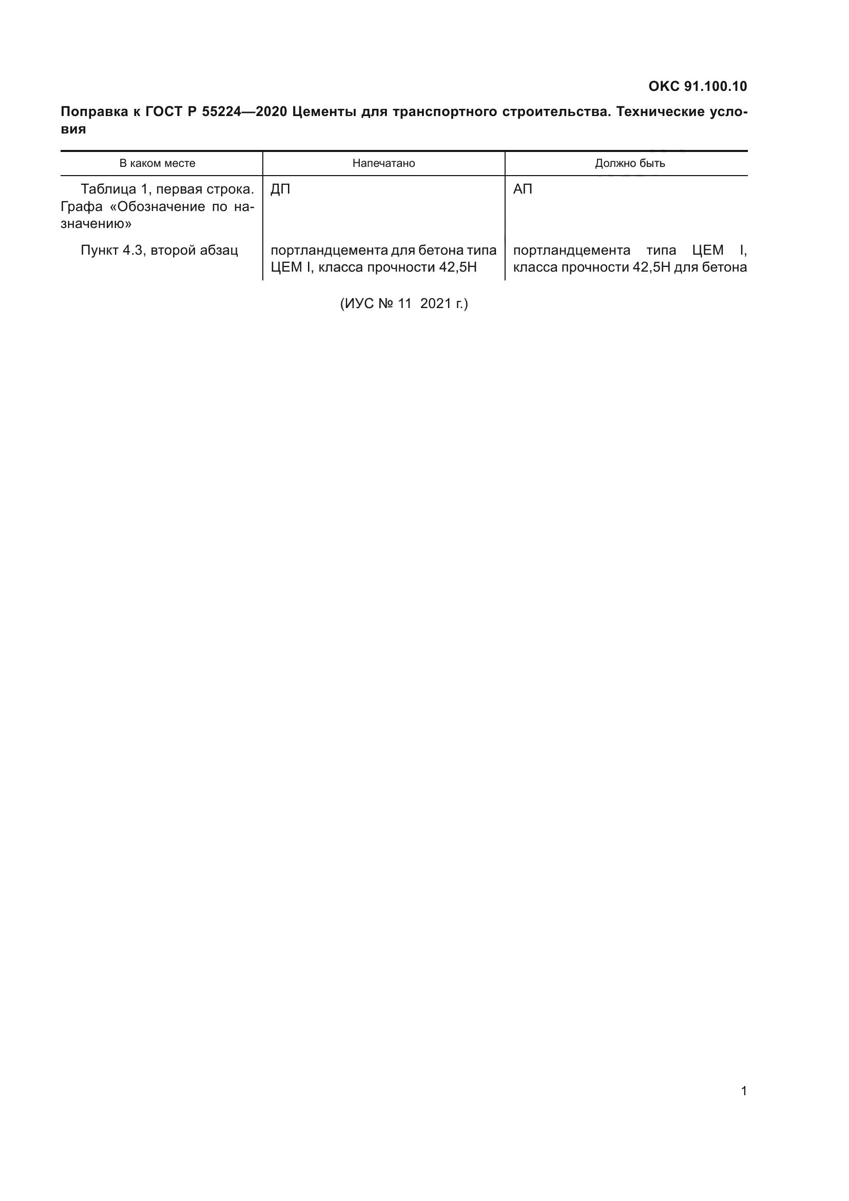| Приложение №1: | Поправка к ГОСТ Р 55224-2020 |