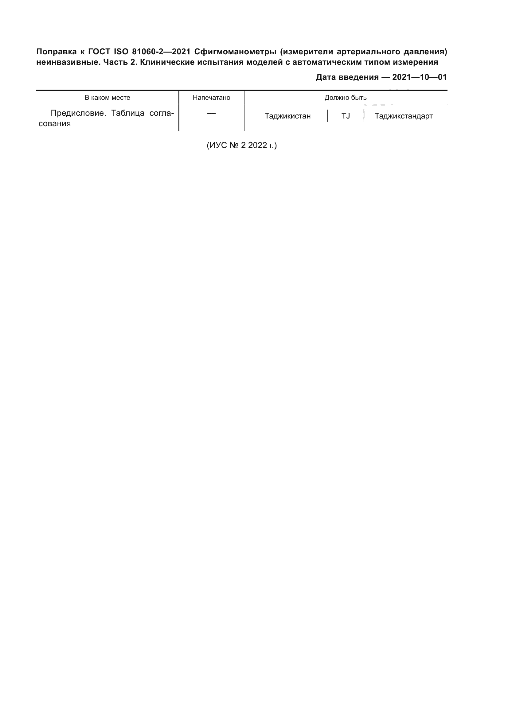 | Приложение №1: | Поправка к ГОСТ ISO 81060-2-2021 |