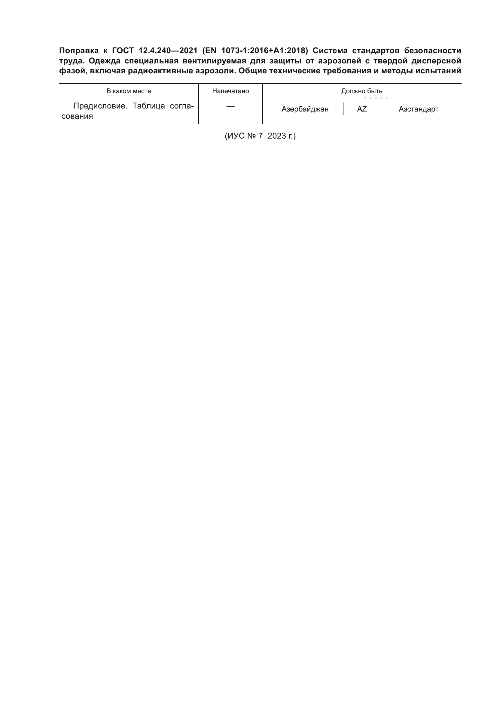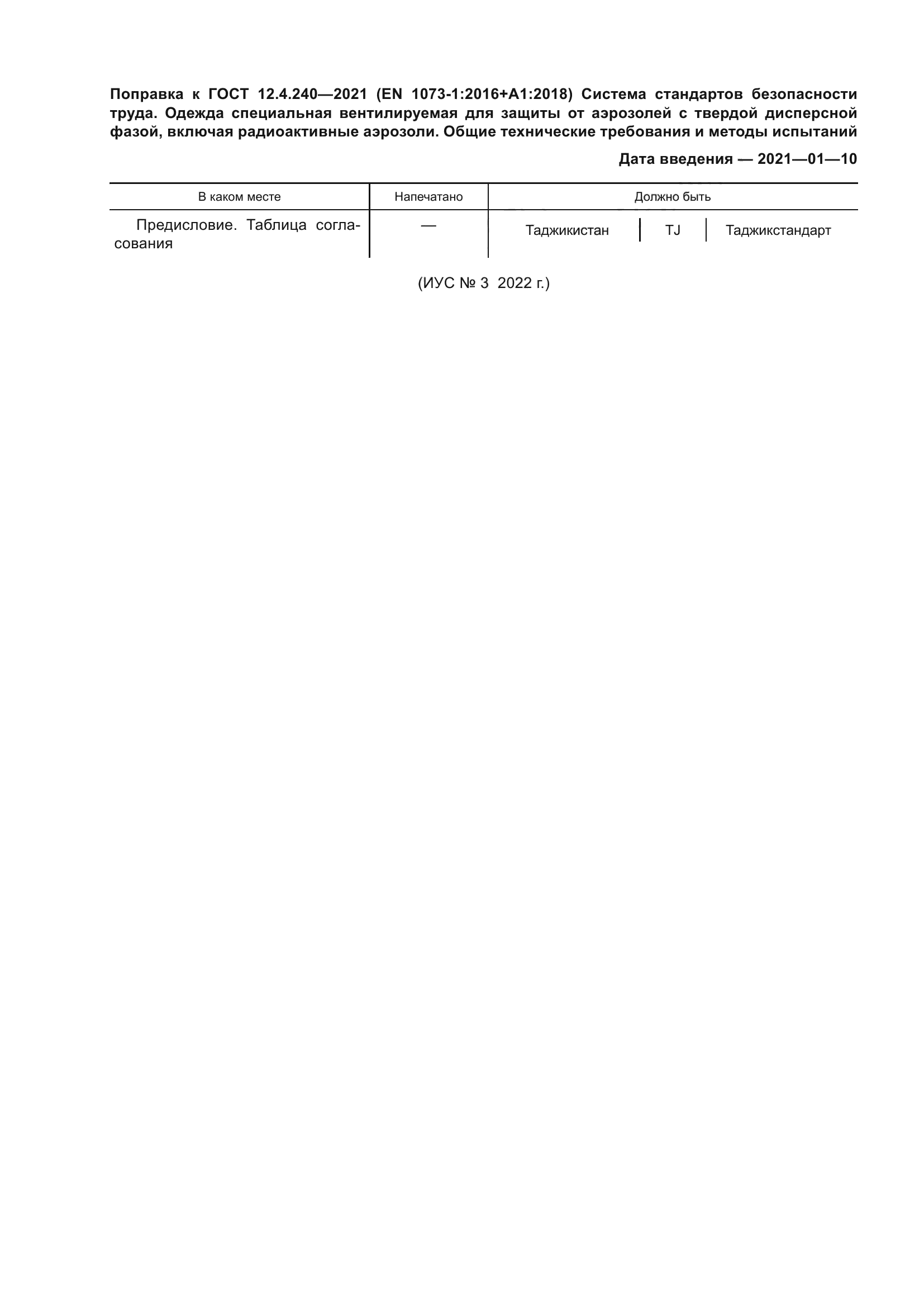 | Приложение №1: | Поправка к ГОСТ 12.4.240-2021 |