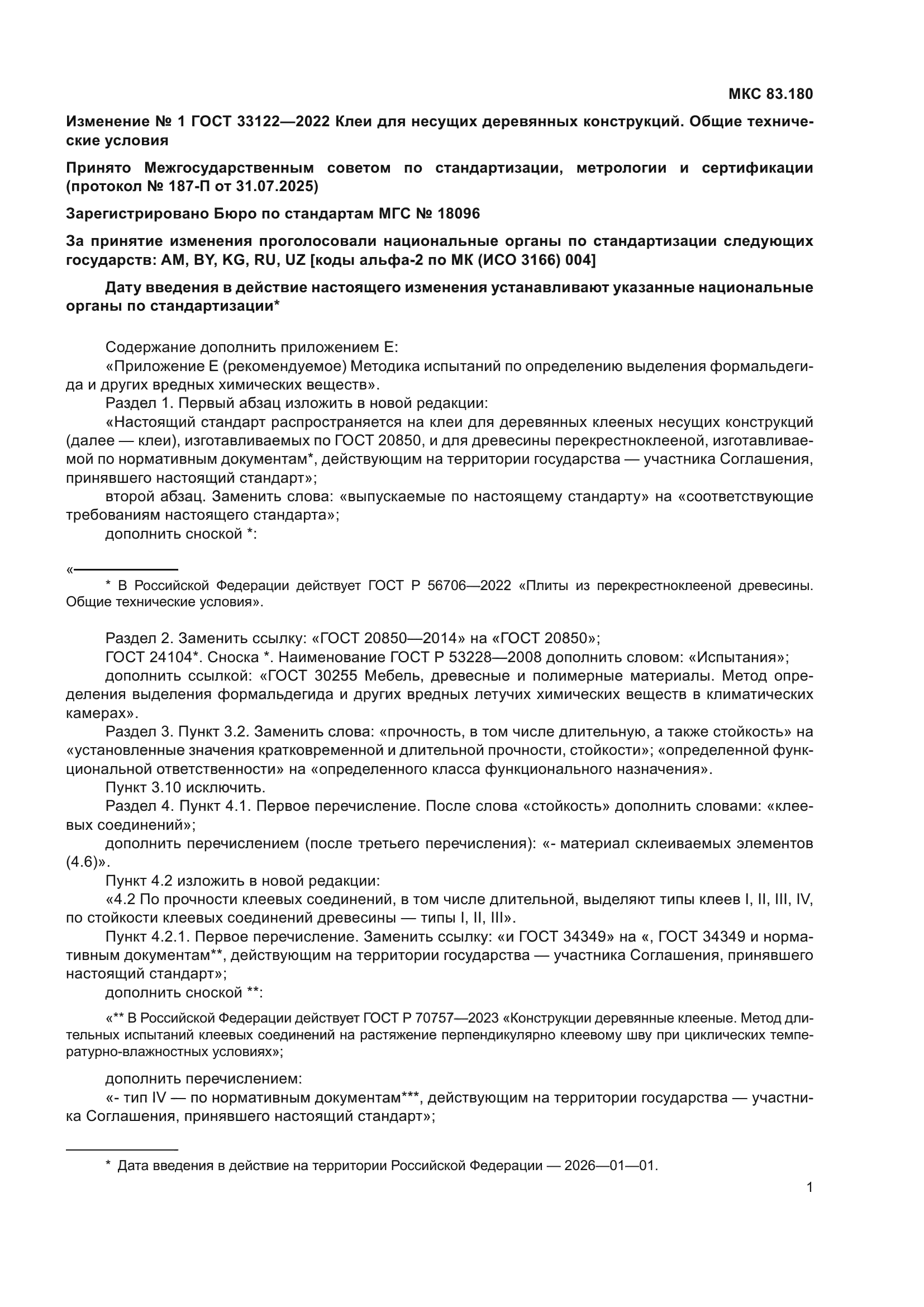 | Приложение №1: | Изменение №1 к ГОСТ 33122-2022 |