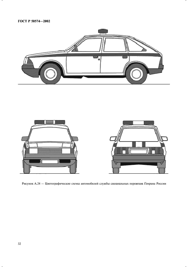 Скачать ГОСТ Р 50574-2002 Автомобили, автобусы и мотоциклы оперативных служб. Цветографические схемы, опознавательные знаки, надписи, специальные световые и звуковые сигналы. Общие требованияДата актуализации: 01.06.2025 ГОСТ Р 50574-2002