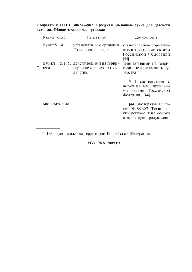| Приложение №1: | Поправка к ГОСТ 30626-98 |