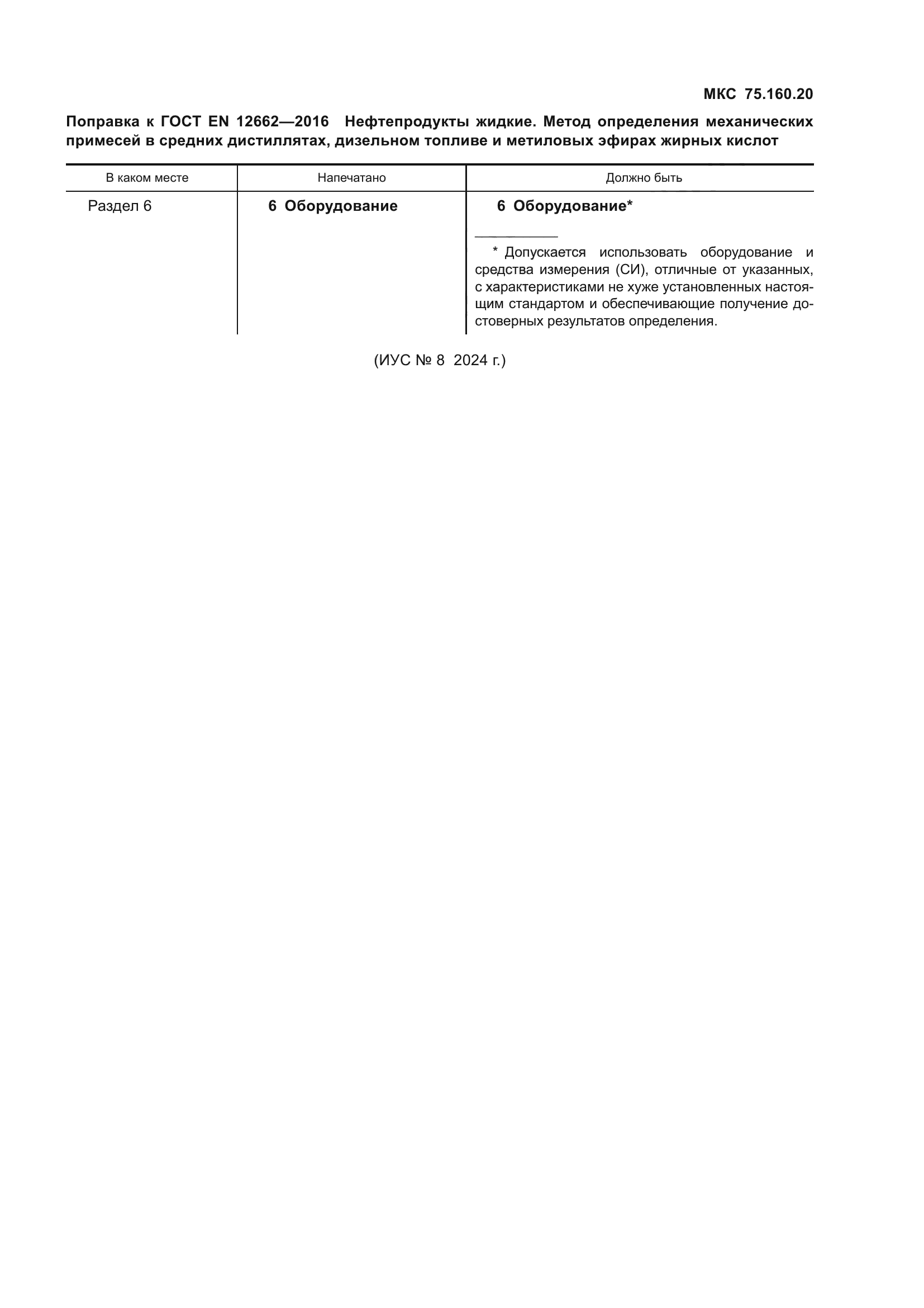 | Обозначение: | Поправка к ГОСТ EN 12662-2016 |