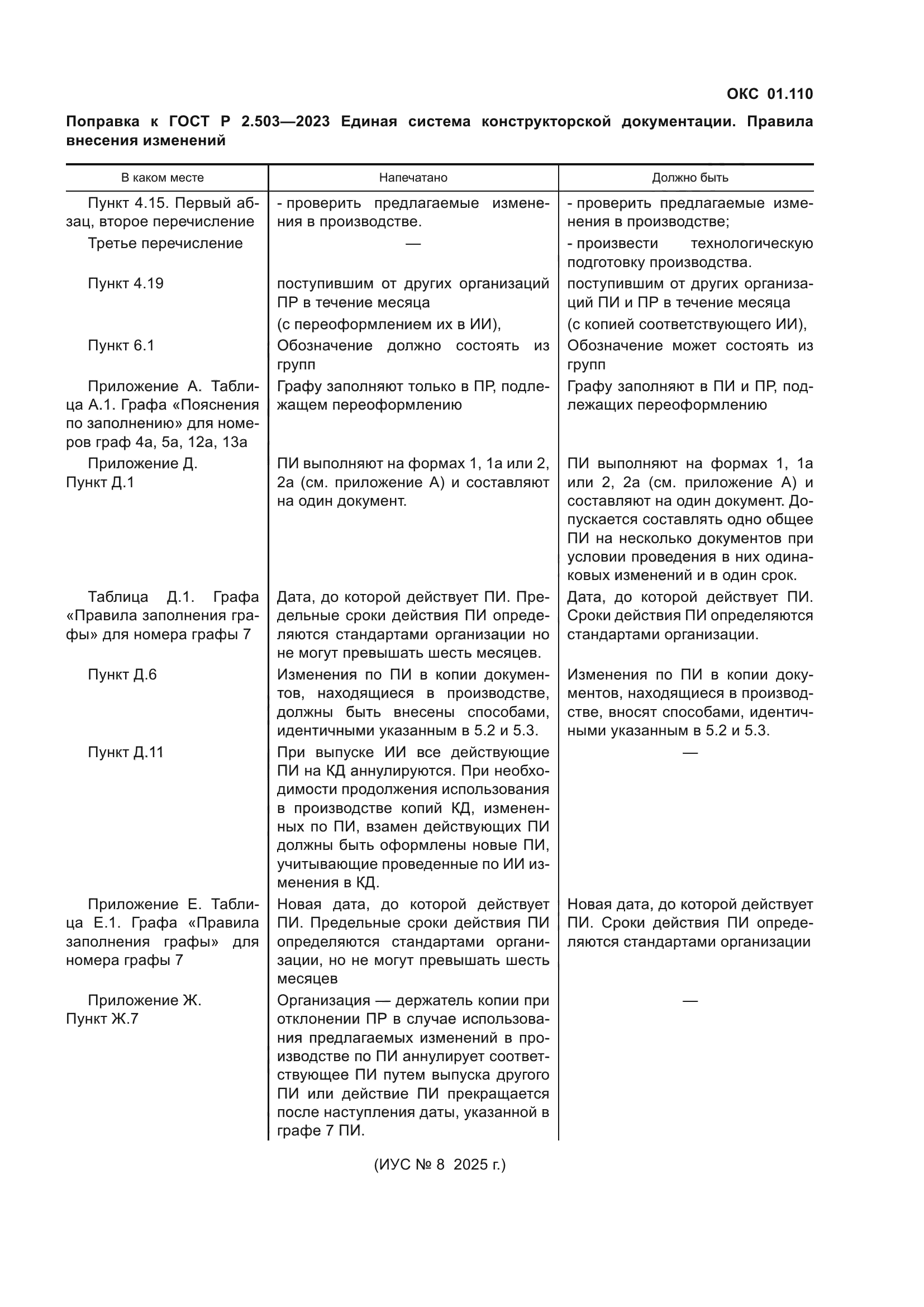 | Приложение №1: | Поправка к ГОСТ Р 2.503-2023 |
