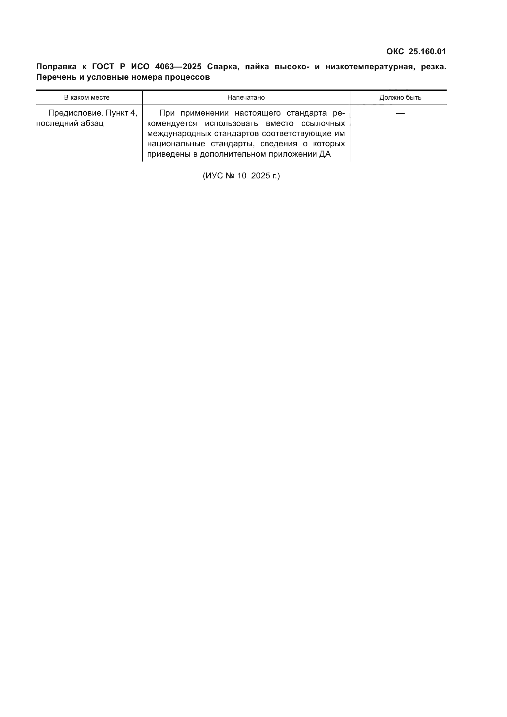 Поправка к ГОСТ Р ИСО 4063-2025