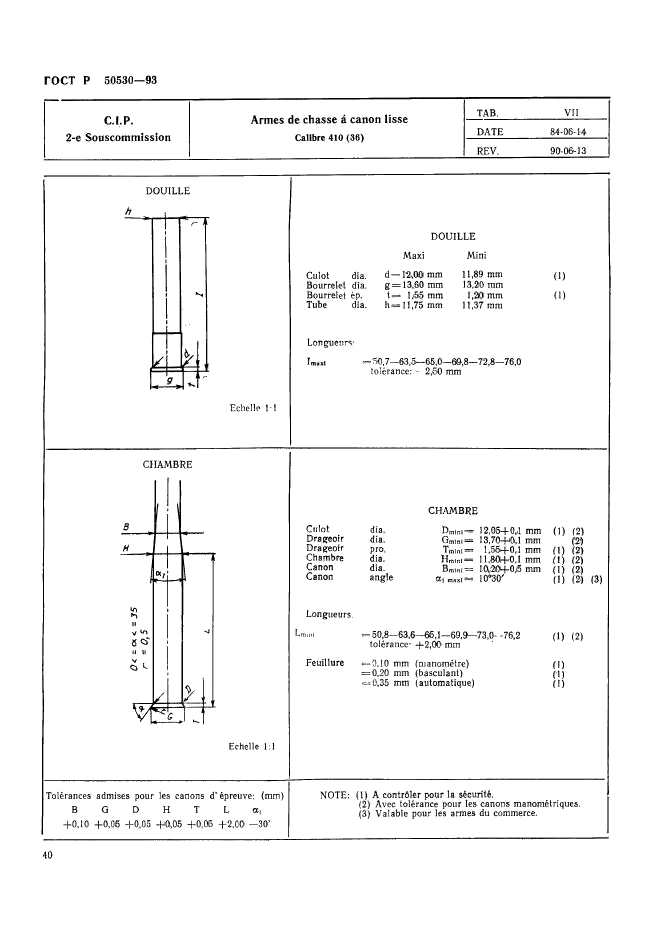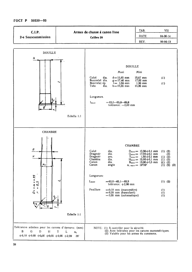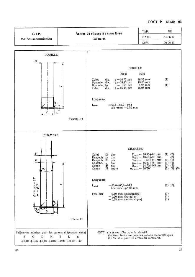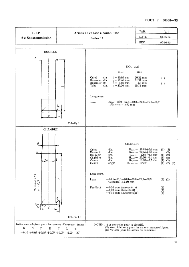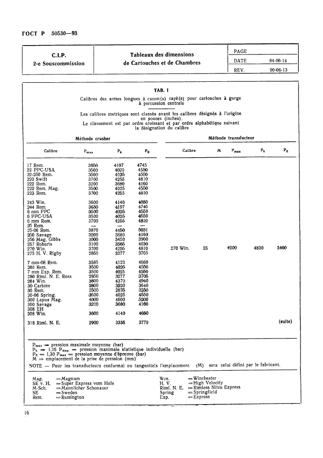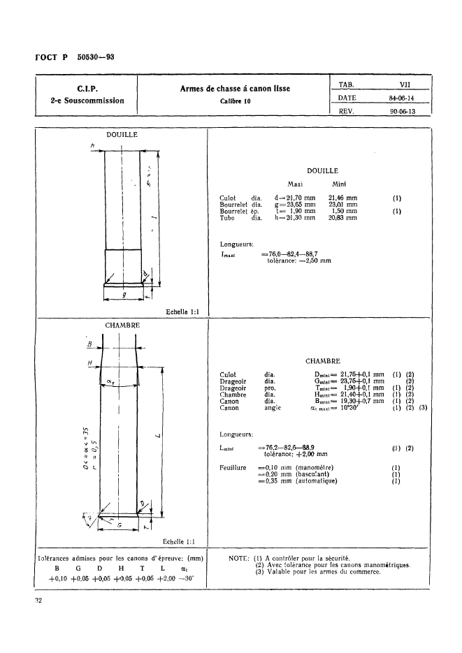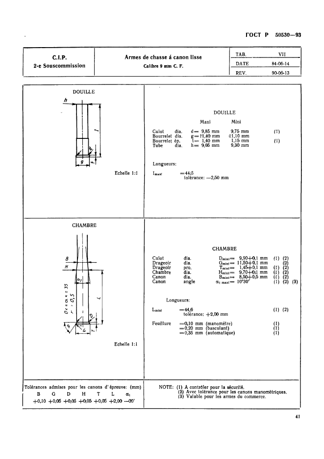 | Название рус.: | Патроны к ручному огнестрельному оружию, устройствам промышленного и специального назначения. Виды и методы контроля при сертификационных испытаниях на безопасность | | Название англ.: | Cartridges for portable fire-arms, firing devices of industrial and trade special purposes. Types and methods of control during safety certificating tests | | Дата актуализации текста: | 06.04.2015 | | Дата актуализации описания: | 01.07.2023 | | Дата издания: | 05.06.1995 | | Дата введения: | 01.07.1993 | | Дата окончания срока действия: | 01.01.2010 | | Код ОКП: | 727200 | | Заменяющий: | ГОСТ Р 50530-2007 | | Область применения: | Настоящий стандарт устанавливает виды и методы контроля патронов к ручному огнестрельному оружию, устройствам промышленного и специального назначения (далее патронов) при сертификационных испытаниях на безопасность в соответствии с нормативными документами Постоянной международной комиссии (ПМК) Брюссельской конвенции по взаимному признанию испытательных клейм ручного огнестрельного оружия. Стандарт не распространяется на патроны к оружию, используемому в наземных, морских и воздушных вооруженных силах: - испытательные патроны, снаряженные и непосредственно используемые Государственной испытательной станцией ГИС); - испытательные патроны, проданные изготовителем ГИС, минуя посредников; - экспериментальные патроны новых типов, которые находятся в стадии разработки и которые могут быть поставлены в небольших количествах для апробации различными пользователями, не входящими в персонал изготовителя; - патроны, изготовленные или повторно снаряженные в небольших количествах для личного пользования; - патроны, на которые Заявитель имеет сертификат соответствия, выданный испытательной станцией страны-члена Брюссельской конвенции | |