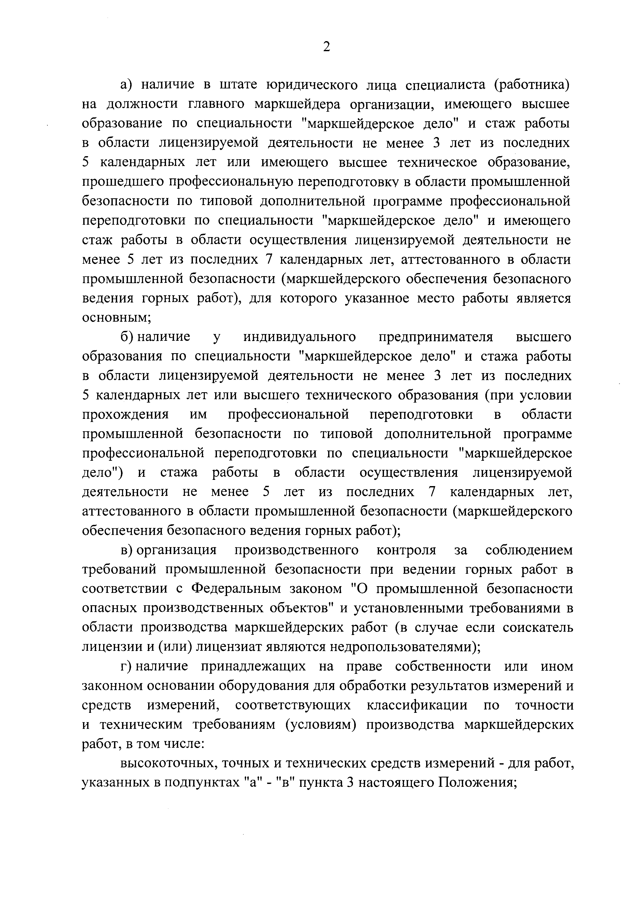 | Область применения: | Положение определяет порядок лицензирования производства маркшейдерских работ |