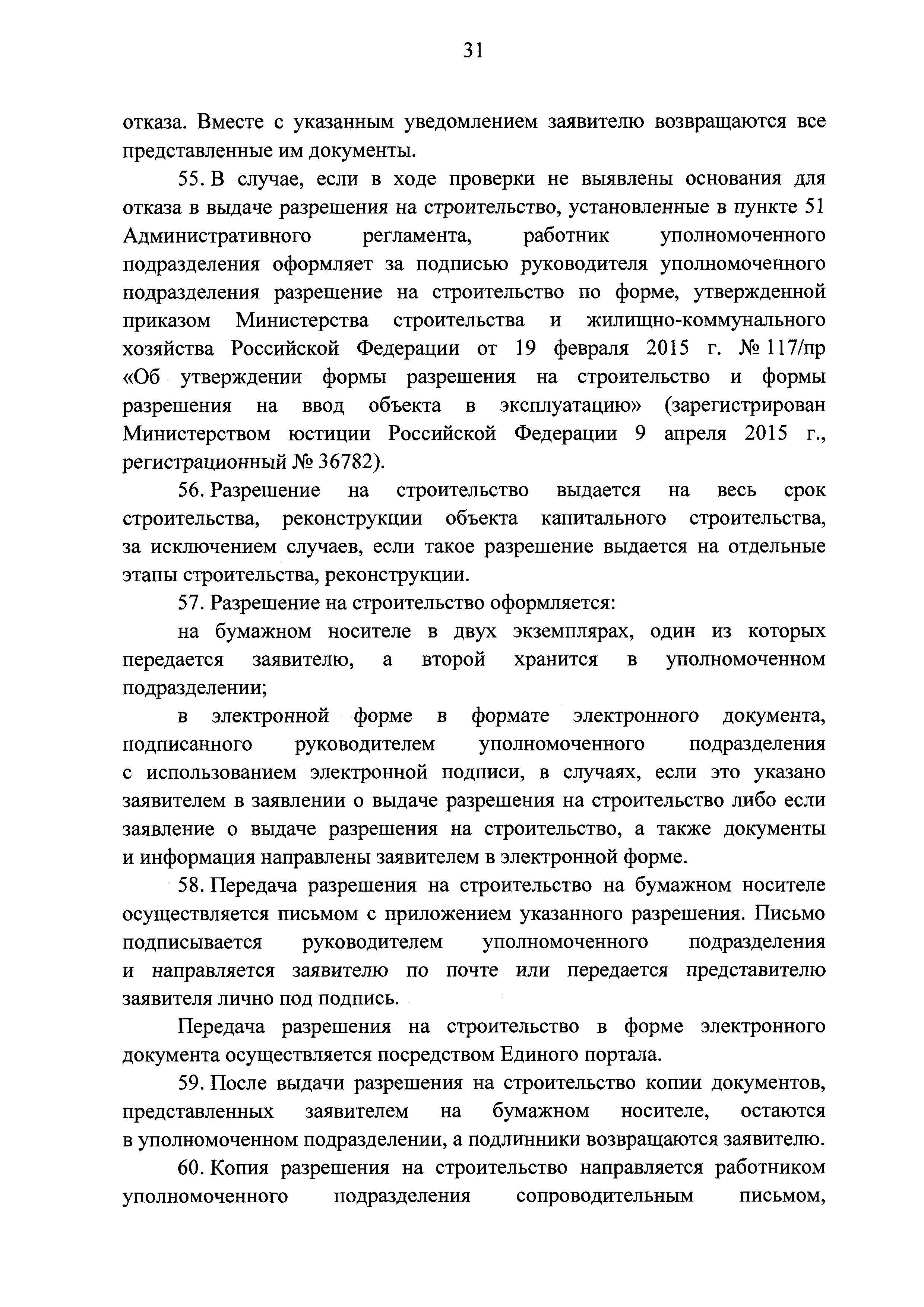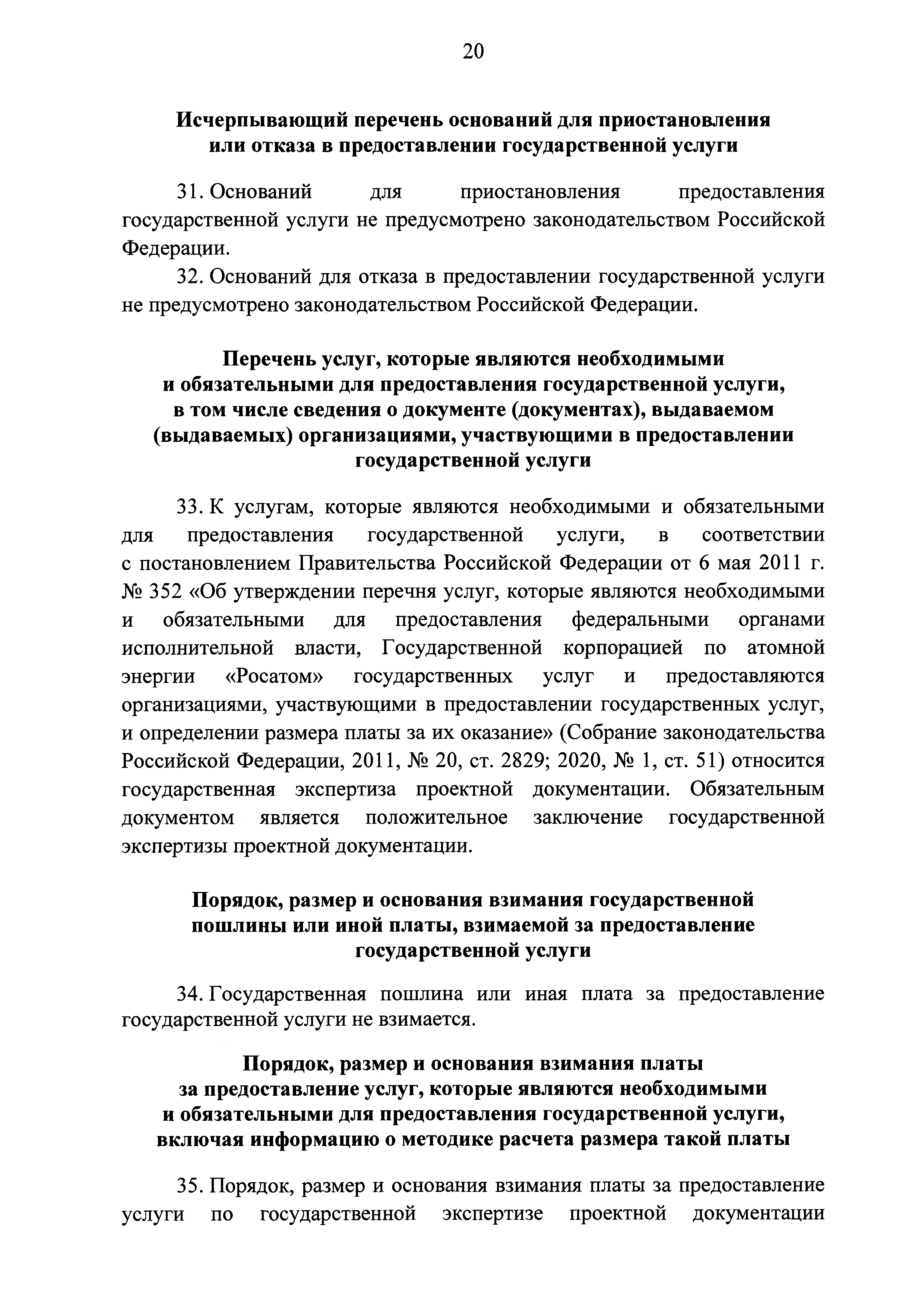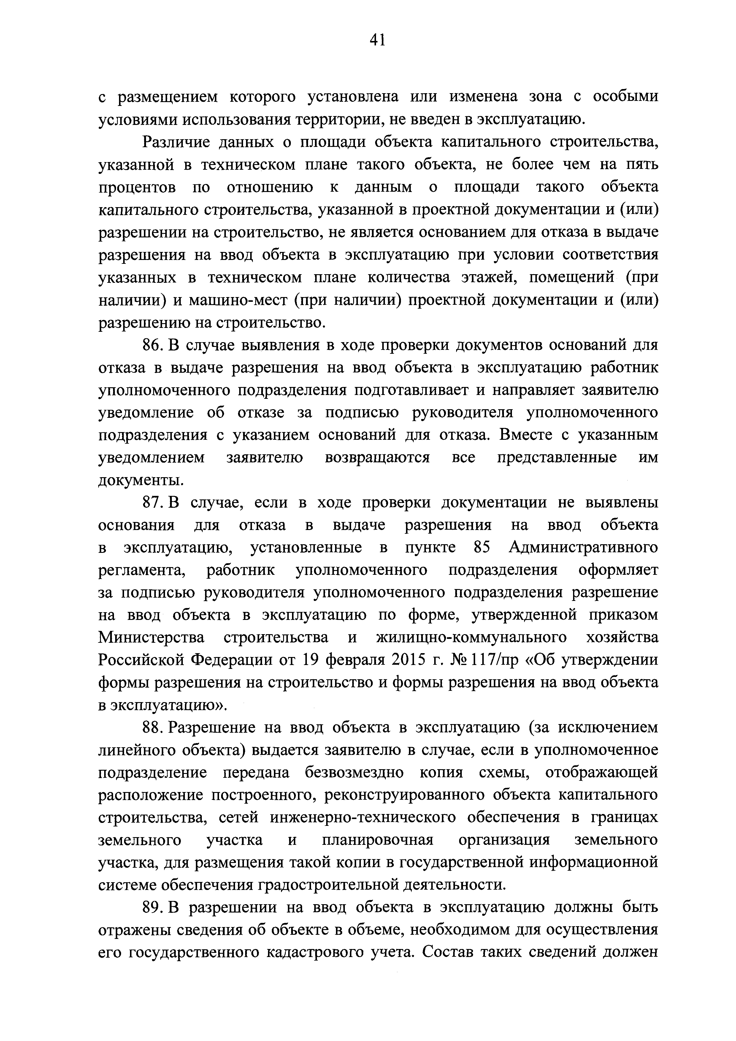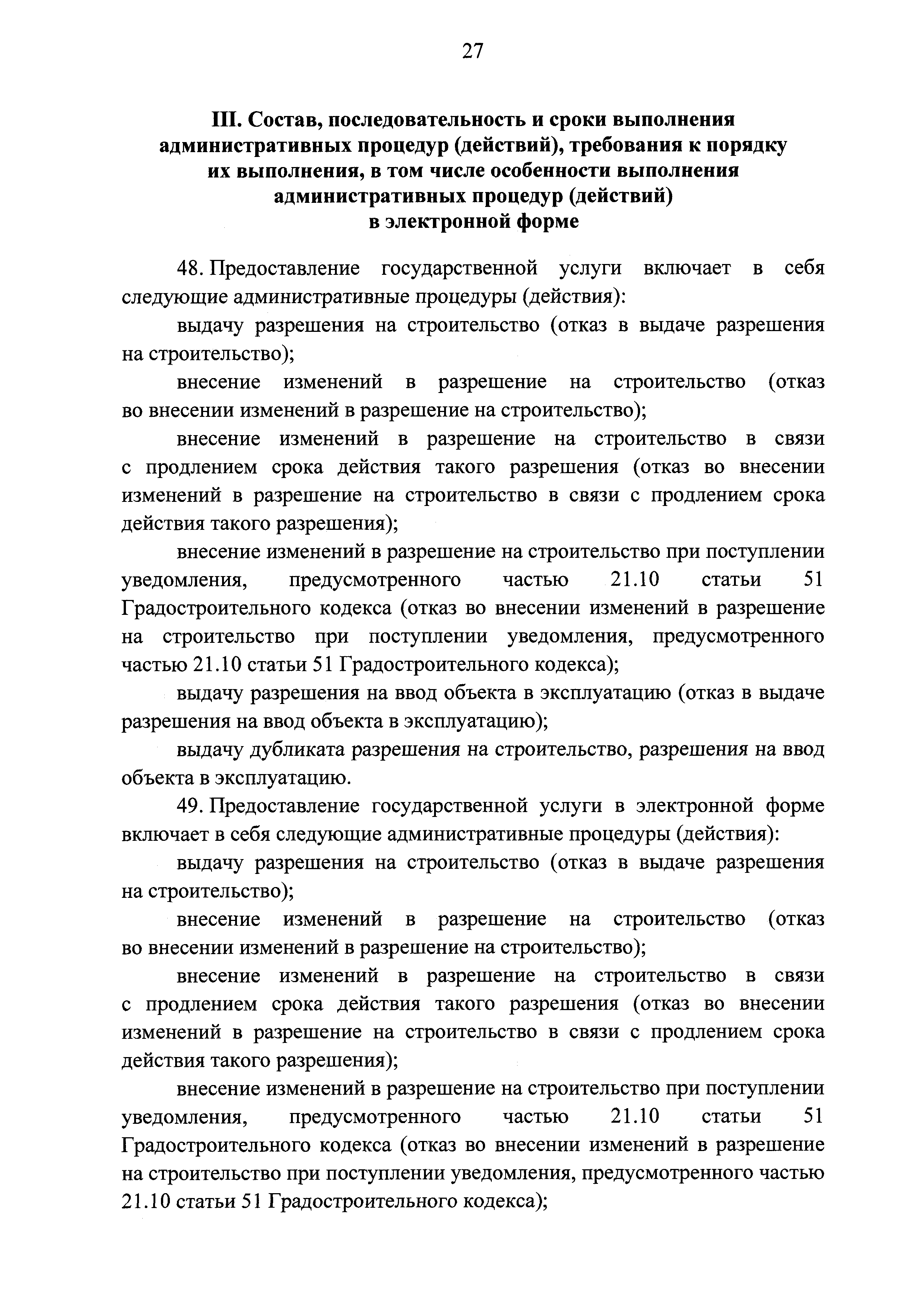 | | Заменяет собой: | | | Нормативные ссылки: |   Кодекс «Градостроительный кодекс Российской Федерации»  «Положение об организации и проведении государственной экспертизы проектной документации и результатов инженерных изысканий»  Федеральный закон 225-ФЗ «Об обязательном страховании гражданской ответственности владельца опасного объекта за причинение вреда в результате аварии на опасном объекте»  Федеральный закон 73-ФЗ «Об объектах культурного наследия (памятниках истории и культуры) народов Российской Федерации»  Федеральный закон 63-ФЗ «Об электронной подписи» Постановление 373 «О разработке и утверждении административных регламентов осуществления государственного контроля (надзора) и административных регламентов предоставления государственных услуг»  Федеральный закон 210-ФЗ «Об организации предоставления государственных и муниципальных услуг»  Федеральный закон 215-ФЗ «О Государственной корпорации по космической деятельности "Роскосмос"»  Федеральный закон 218-ФЗ «О государственной регистрации недвижимости» Постановление 352 «Об утверждении перечня услуг, которые являются необходимыми и обязательными для предоставления федеральными органами исполнительной власти, Государственной корпорацией по атомной энергии "Росатом" государственных услуг и предоставляются организациями, участвующими в предоставлении государственных услуг, и определении размера платы за их оказание» «Правила подачи и рассмотрения жалоб на решения и действия (бездействие) федеральных органов исполнительной власти и их должностных лиц, федеральных государственных служащих, должностных лиц государственных внебюджетных фондов Российской Федерации, государственных корпораций, наделенных в соответствии с федеральными законами полномочиями по предоставлению государственных услуг в установленной сфере деятельности, и их должностных лиц, организаций, предусмотренных частью 1.1 статьи 16 Федерального закона "Об организации предоставления государственных и муниципальных услуг", и их работников, а также многофункциональных центров предоставления государственных и муниципальных услуг и их работников»  «Правила направления документов в уполномоченные на выдачу разрешений на строительство и (или) разрешений на ввод объекта в эксплуатацию федеральные органы исполнительной власти, органы исполнительной власти субъектов Российской Федерации, органы местного самоуправления, Государственную корпорацию по атомной энергии "Росатом", Государственную корпорацию по космической деятельности "Роскосмос" в электронной форме» «Правила определения видов электронной подписи, использование которых допускается при обращении за получением государственных и муниципальных услуг» «Административный регламент предоставления Государственной корпорацией по космической деятельности "Роскосмос" государственной услуги по выдаче разрешений на строительство и ввод в эксплуатацию объектов космической инфраструктуры, находящихся в ведении Государственной корпорации по космической деятельности "Роскосмос" и ее организаций»