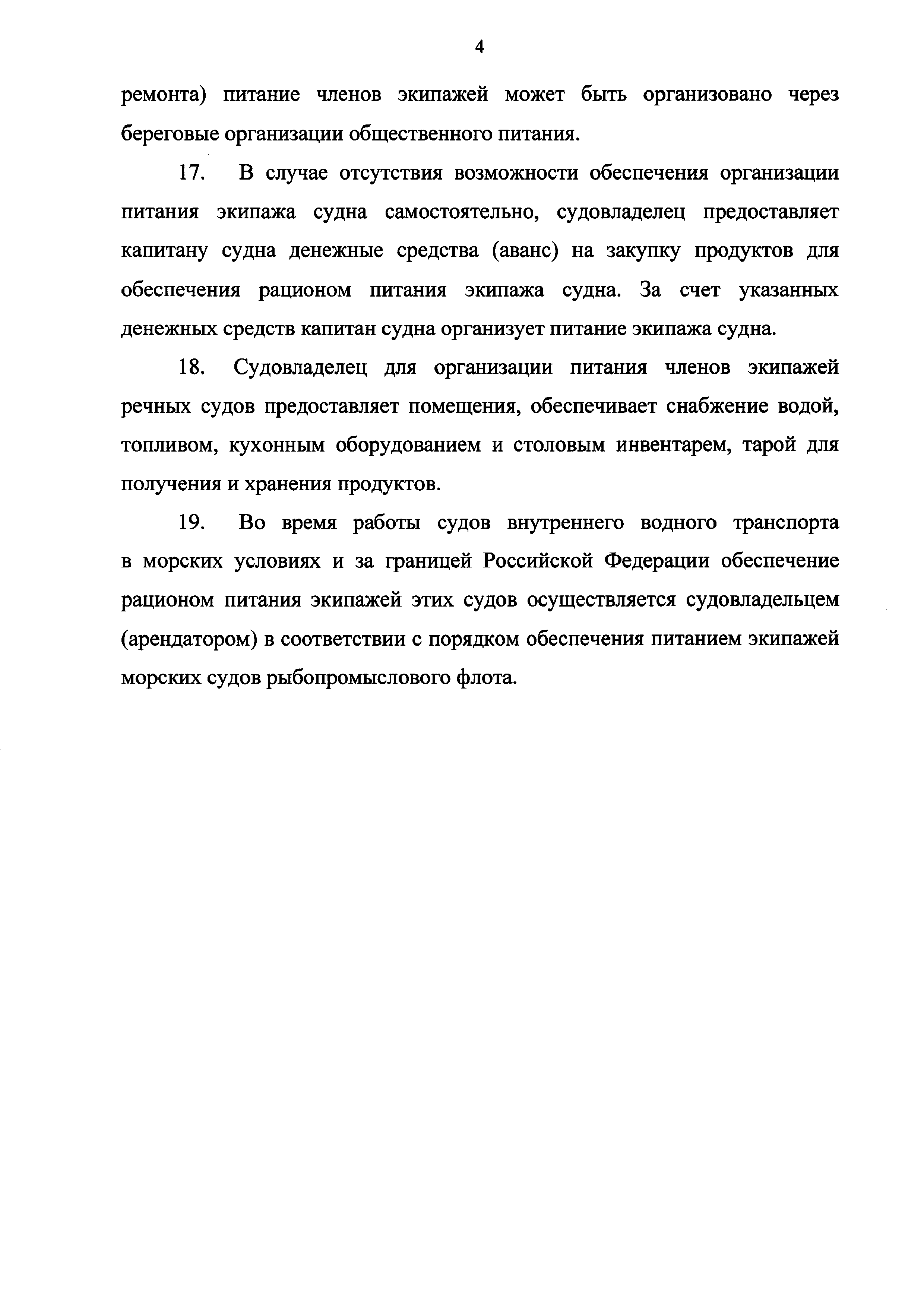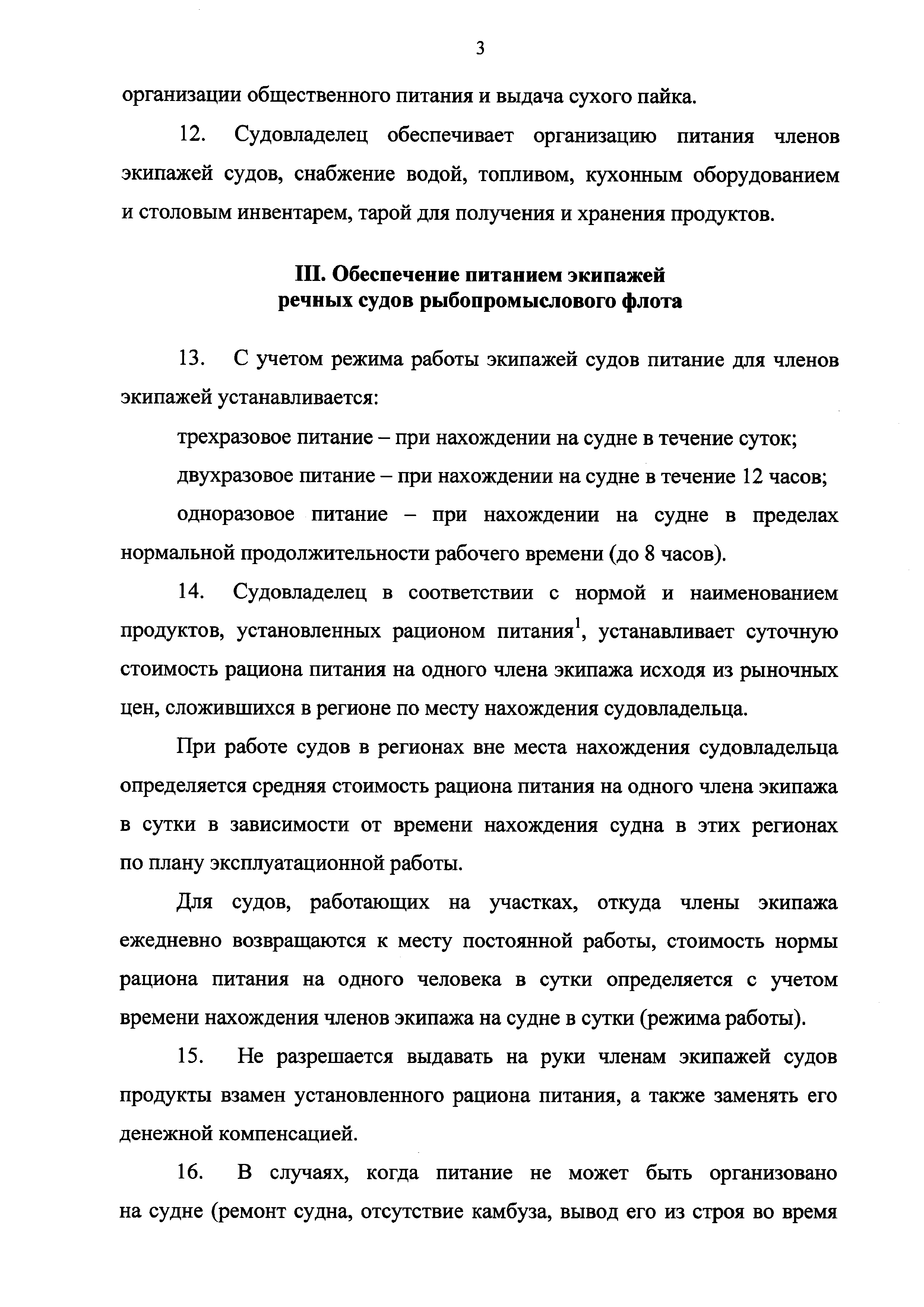 | Оглавление: | I. Общие положения II. Обеспечение питанием экипажей морских судов рыбопромыслового флота III. Обеспечение питанием экипажей речных судов рыбопромыслового флота |
