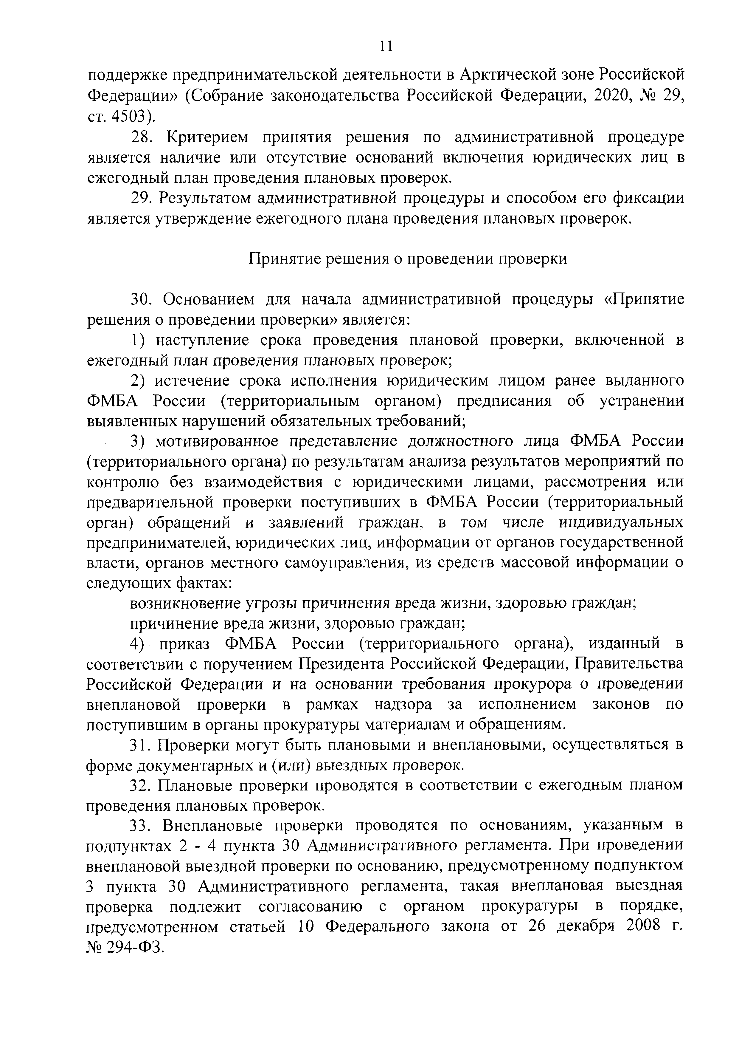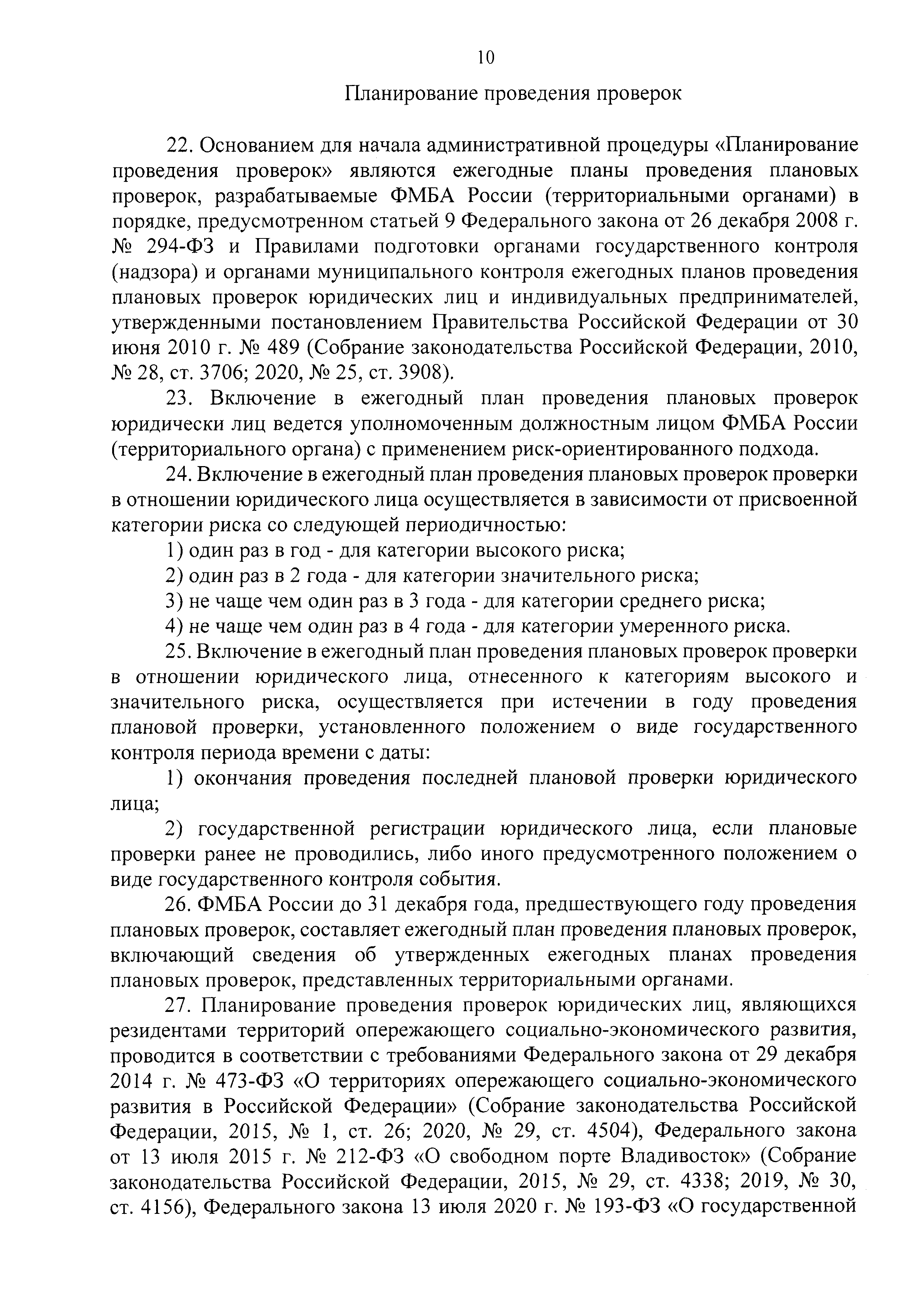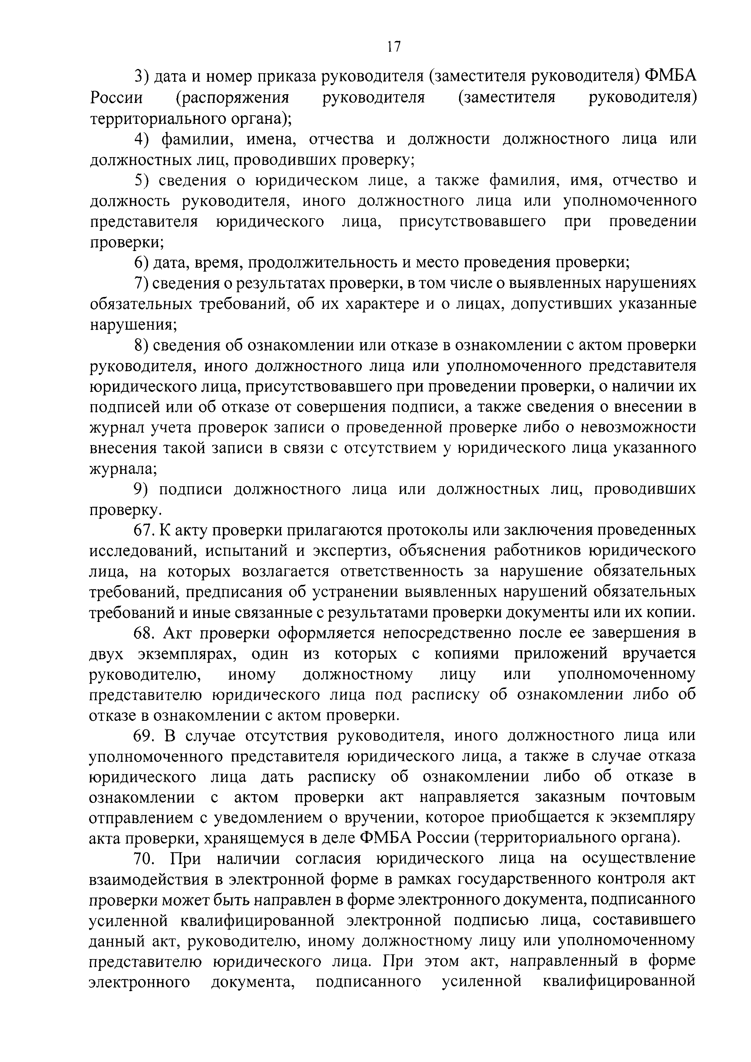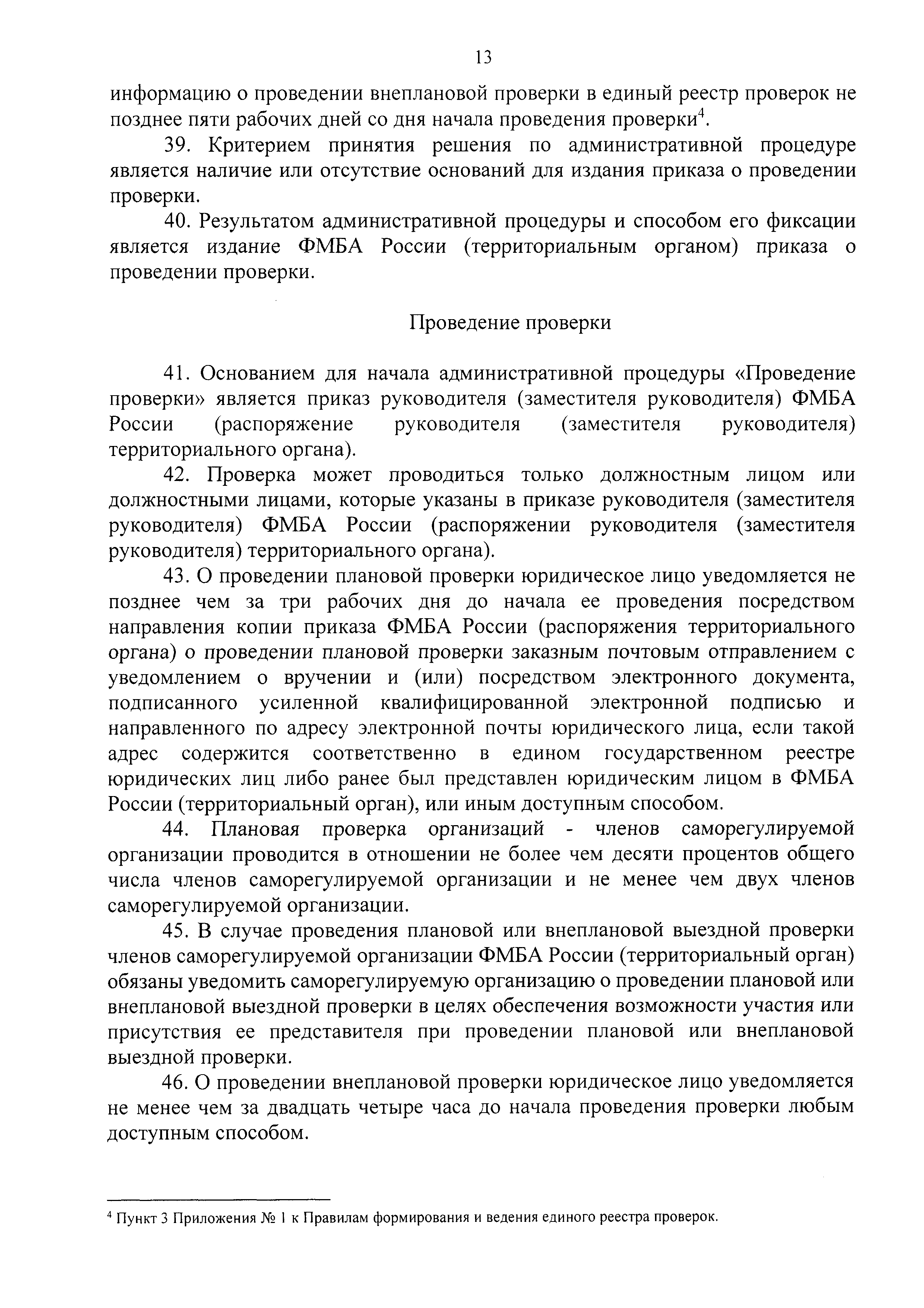 | Оглавление: | I. Общие положения II. Требования к порядку осуществления государственного контроля III. Состав, последовательность и сроки выполнения административных процедур (действий), требования к порядку их выполнения, в том числе особенности выполнения административных процедур (действий) в электронной форме IV. Порядок и формы контроля за осуществлением государственного контроля V. Досудебный (внесудебный) порядок обжалования решений и действий (бездействия) ФМБА России (территориального органа), осуществляющего государственный контроль, а также их должностных лиц |
