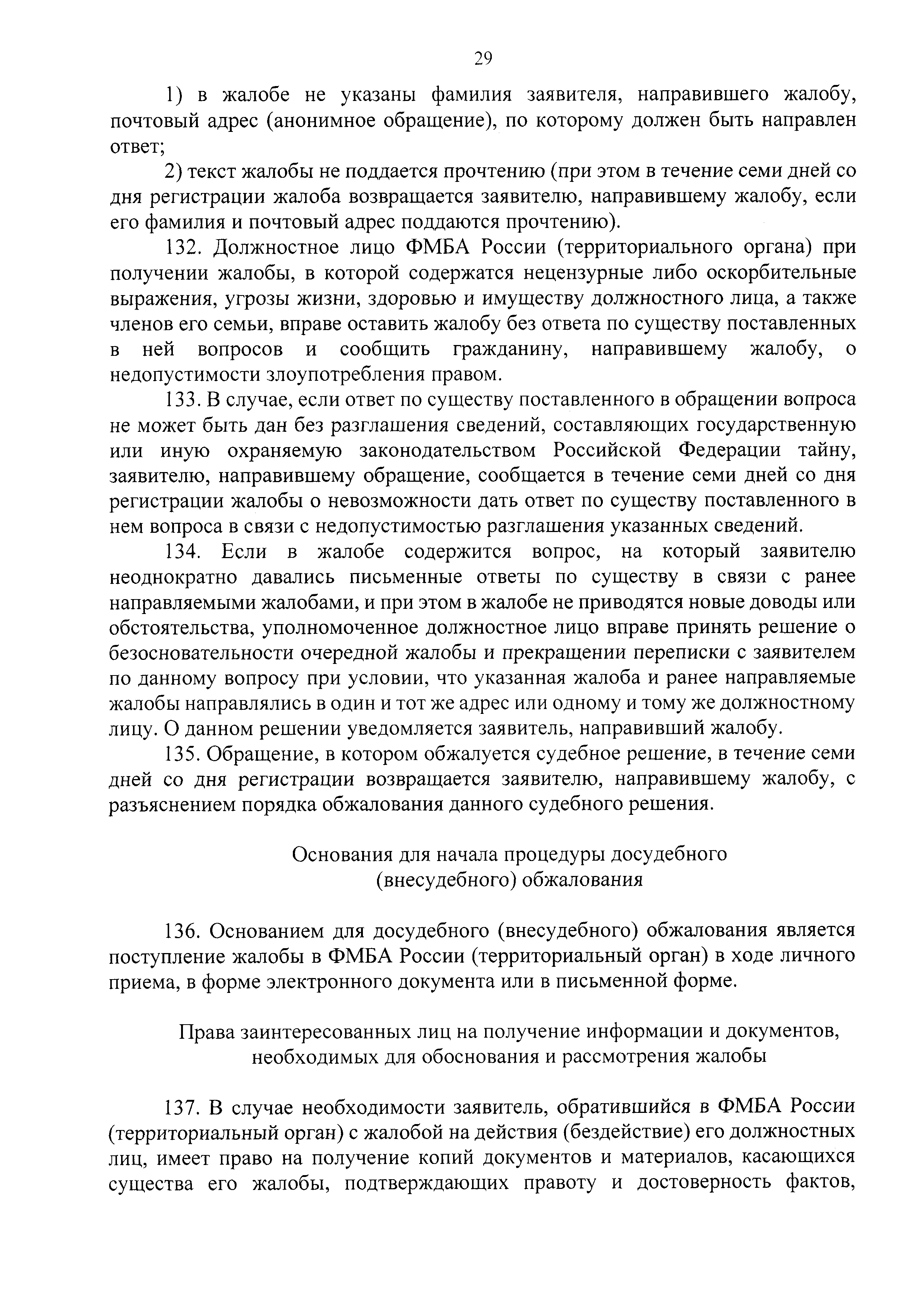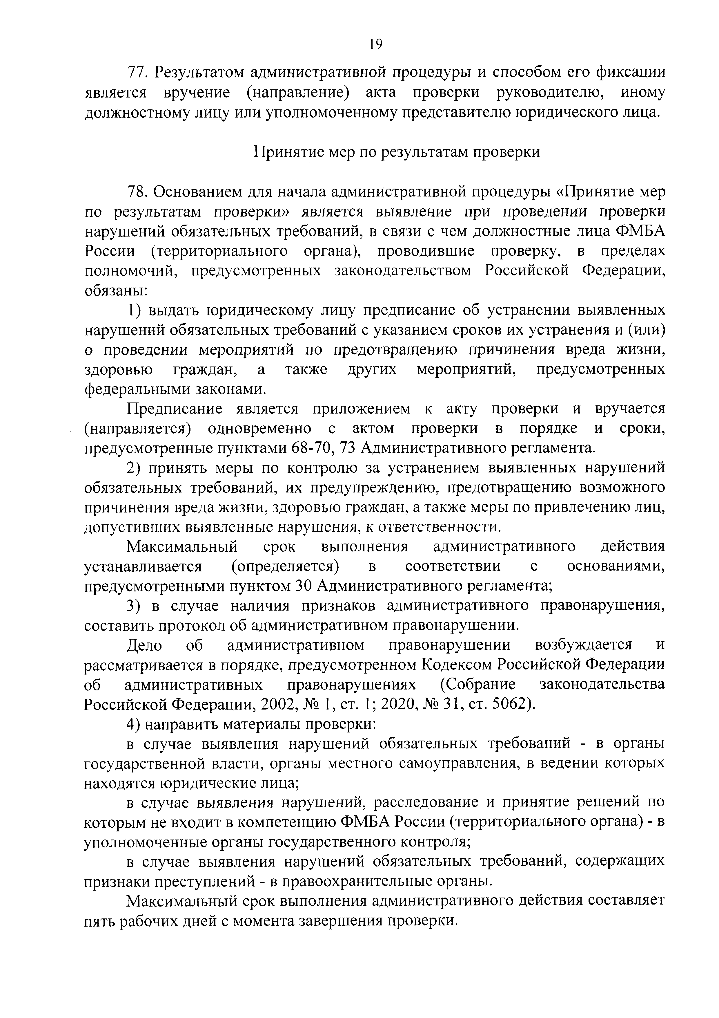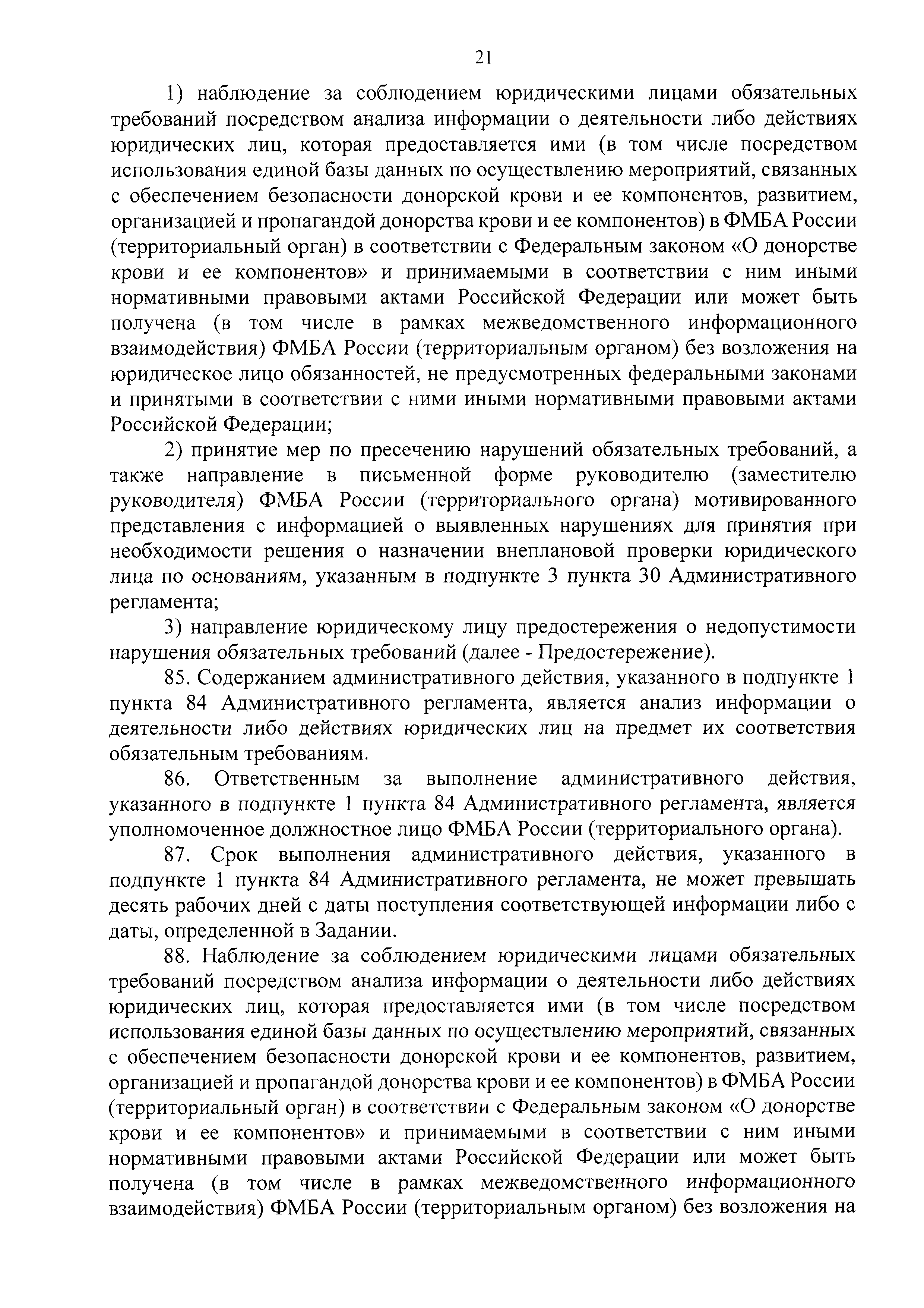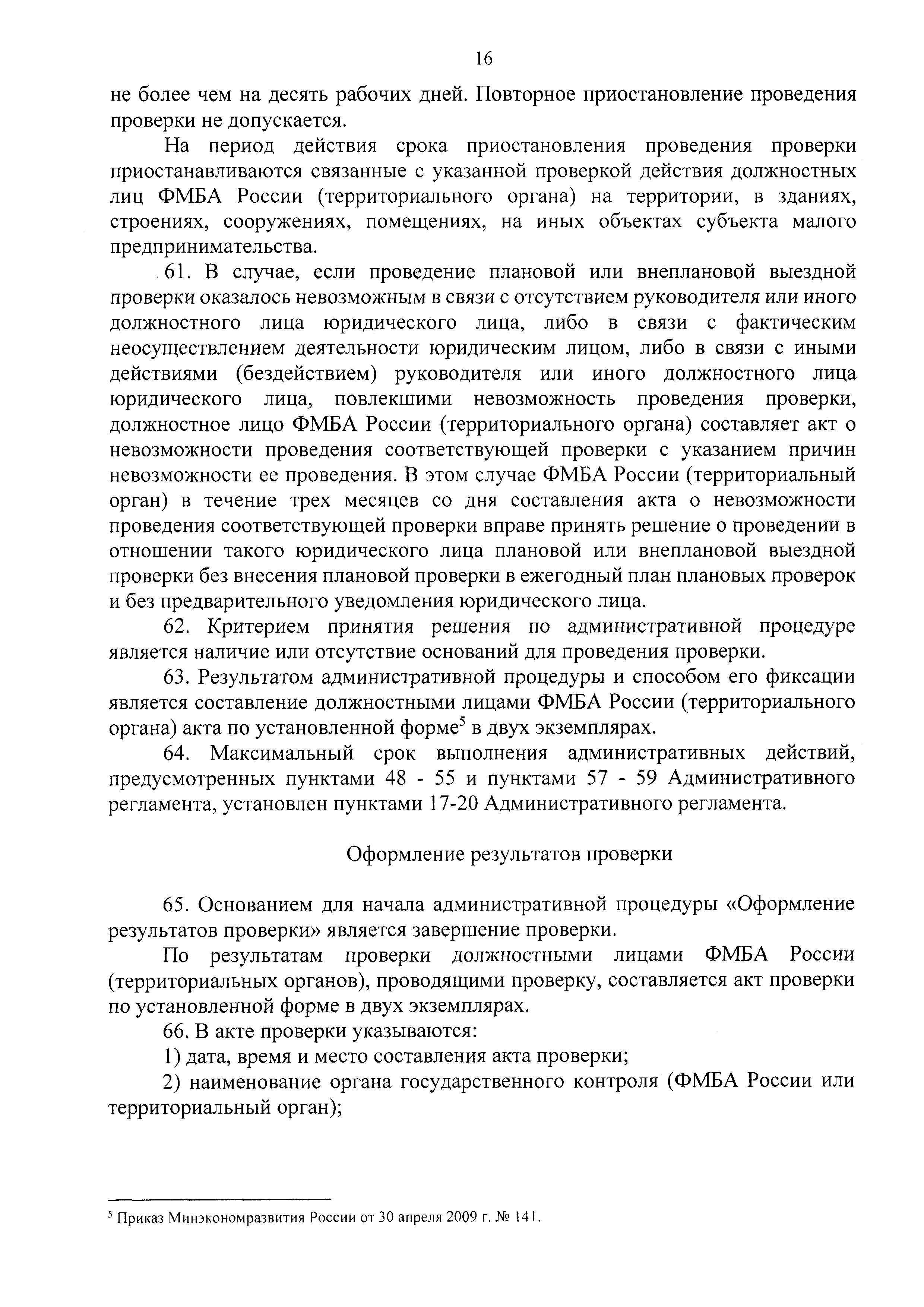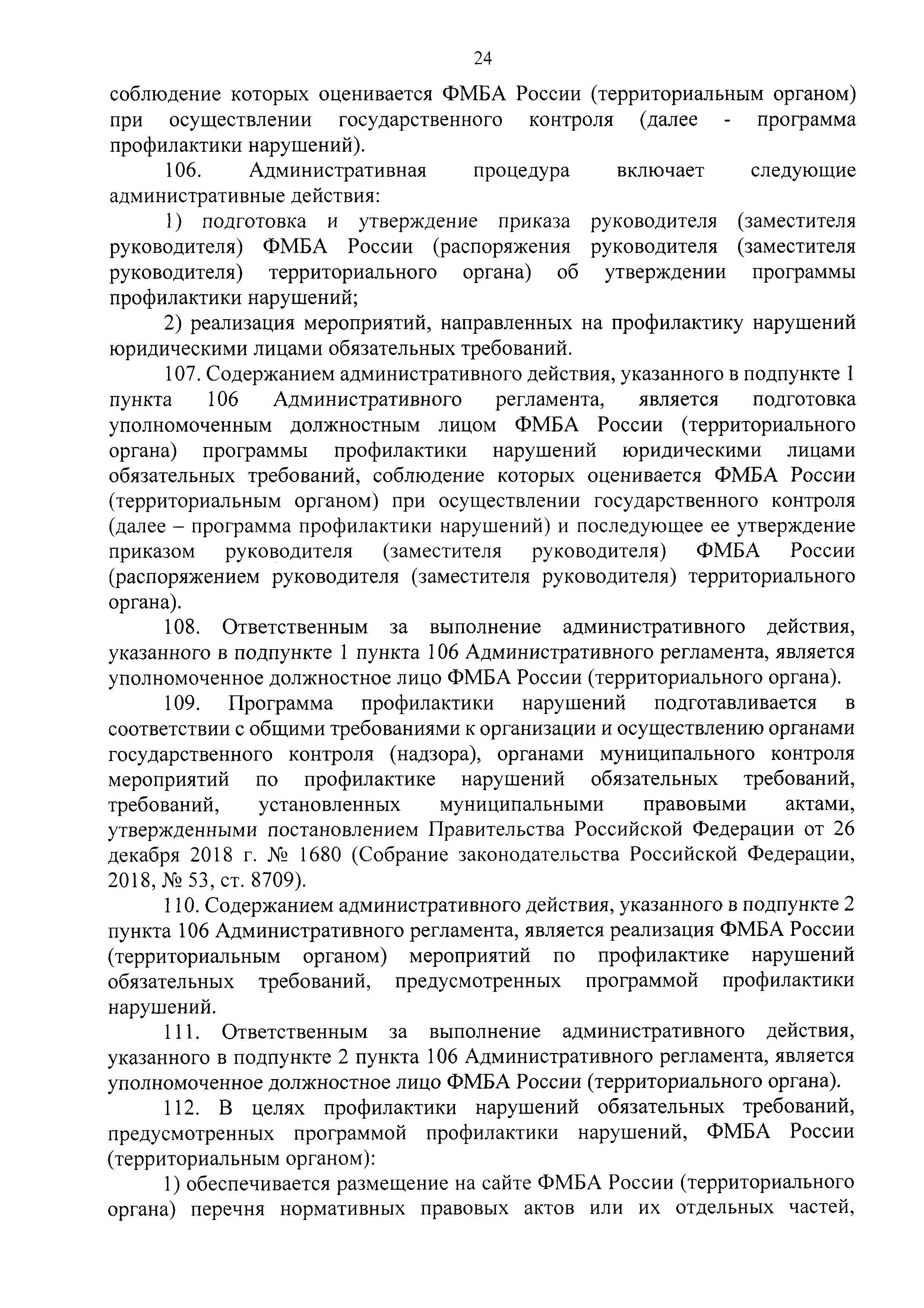 | Оглавление: | I. Общие положения II. Требования к порядку осуществления государственного контроля III. Состав, последовательность и сроки выполнения административных процедур (действий), требования к порядку их выполнения, в том числе особенности выполнения административных процедур (действий) в электронной форме IV. Порядок и формы контроля за осуществлением государственного контроля V. Досудебный (внесудебный) порядок обжалования решений и действий (бездействия) ФМБА России (территориального органа), осуществляющего государственный контроль, а также их должностных лиц |