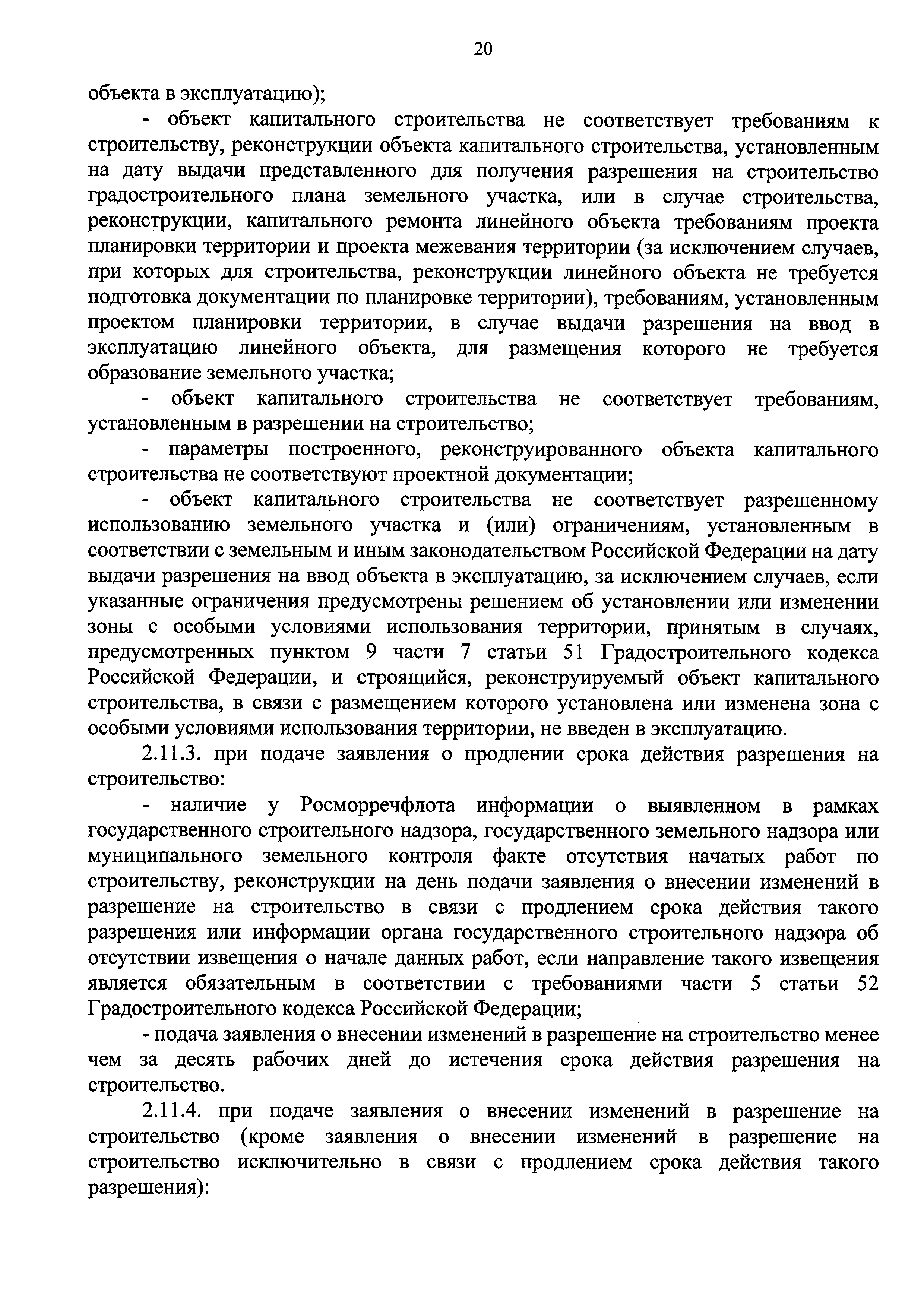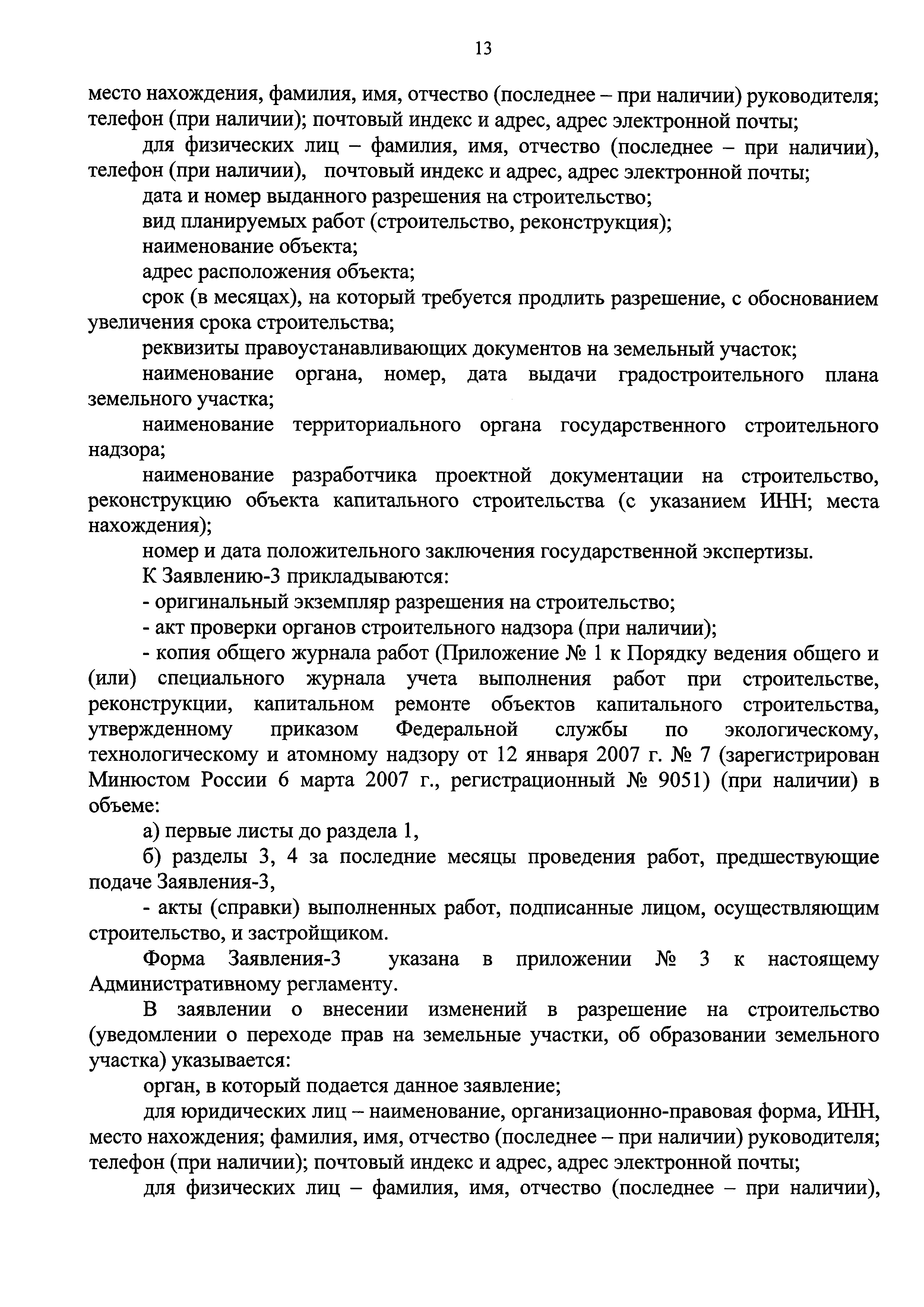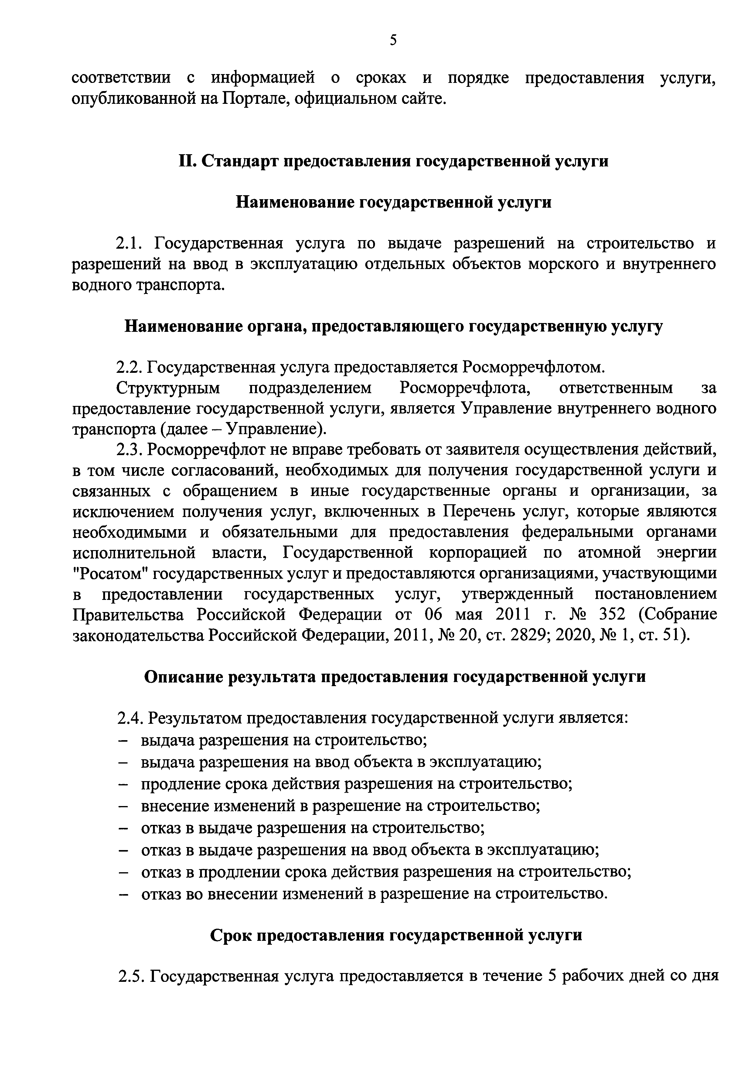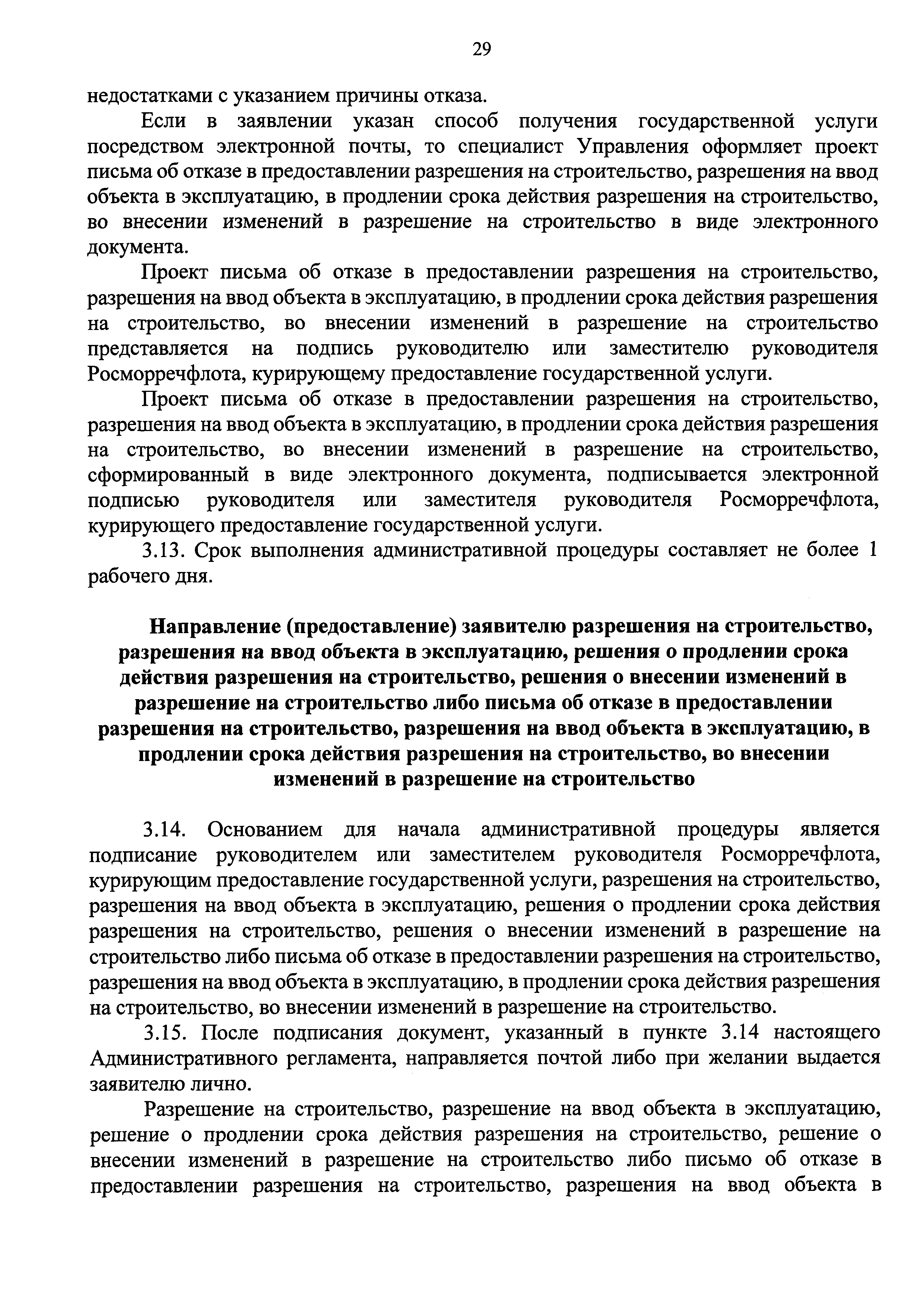 | Оглавление: | I. Общие положения II. Стандарт предоставления государственной услуги III. Состав, последовательность и сроки выполнения административных процедур, требования к порядку их выполнения, в том числе особенности выполнения административных процедур (действий) в электронной форме IV. Формы контроля за предоставлением государственной услуги V. Досудебное (внесудебное) обжалование заявителем решений и действий (бездействия) Росморречфлота, а так же их должностных лиц Приложение № 1. Форма заявления о выдаче разрешения на строительство Приложение № 2. Форма заявления о выдаче разрешения на ввод объекта в эксплуатацию Приложение № 3. Форма заявления о продлении срока действия разрешения на строительство |