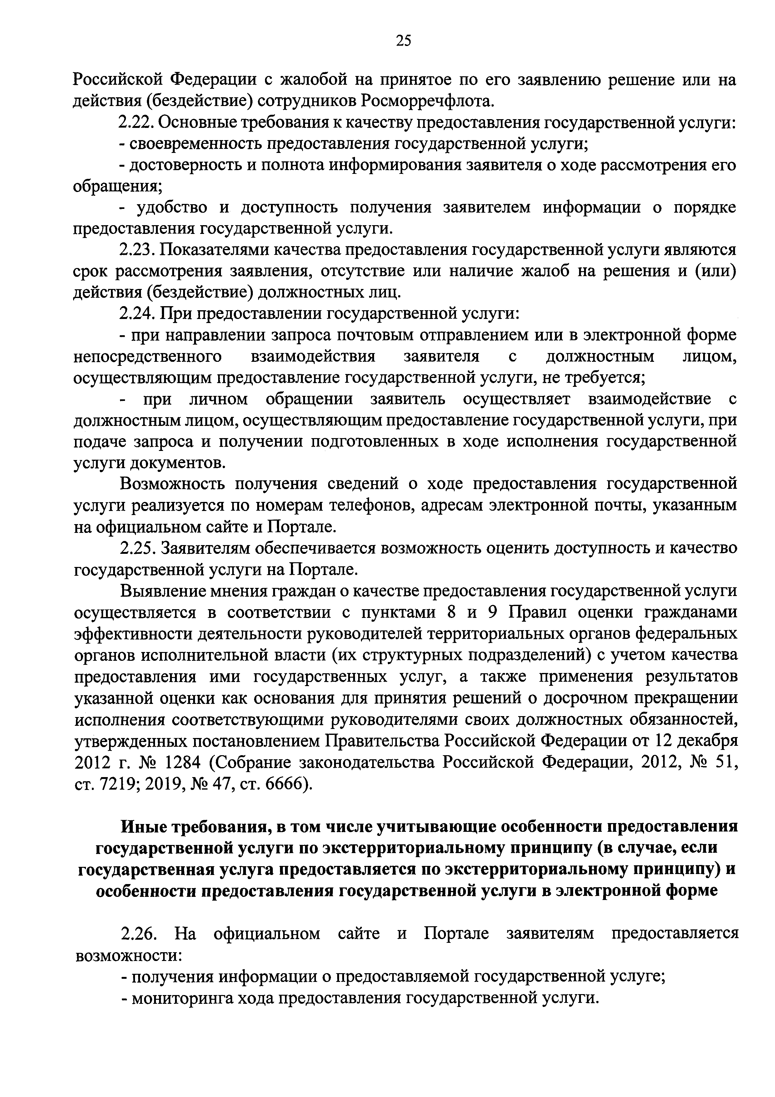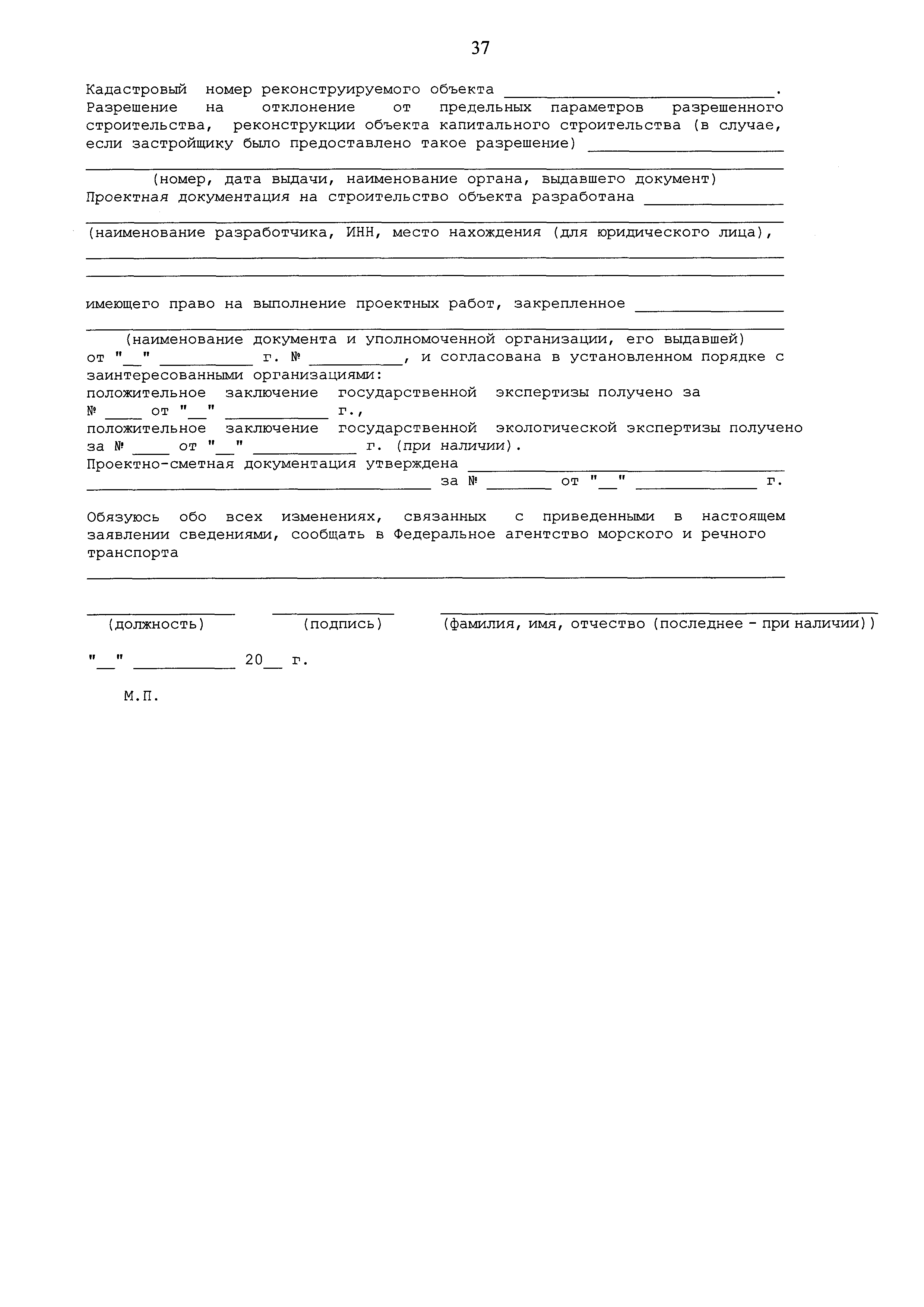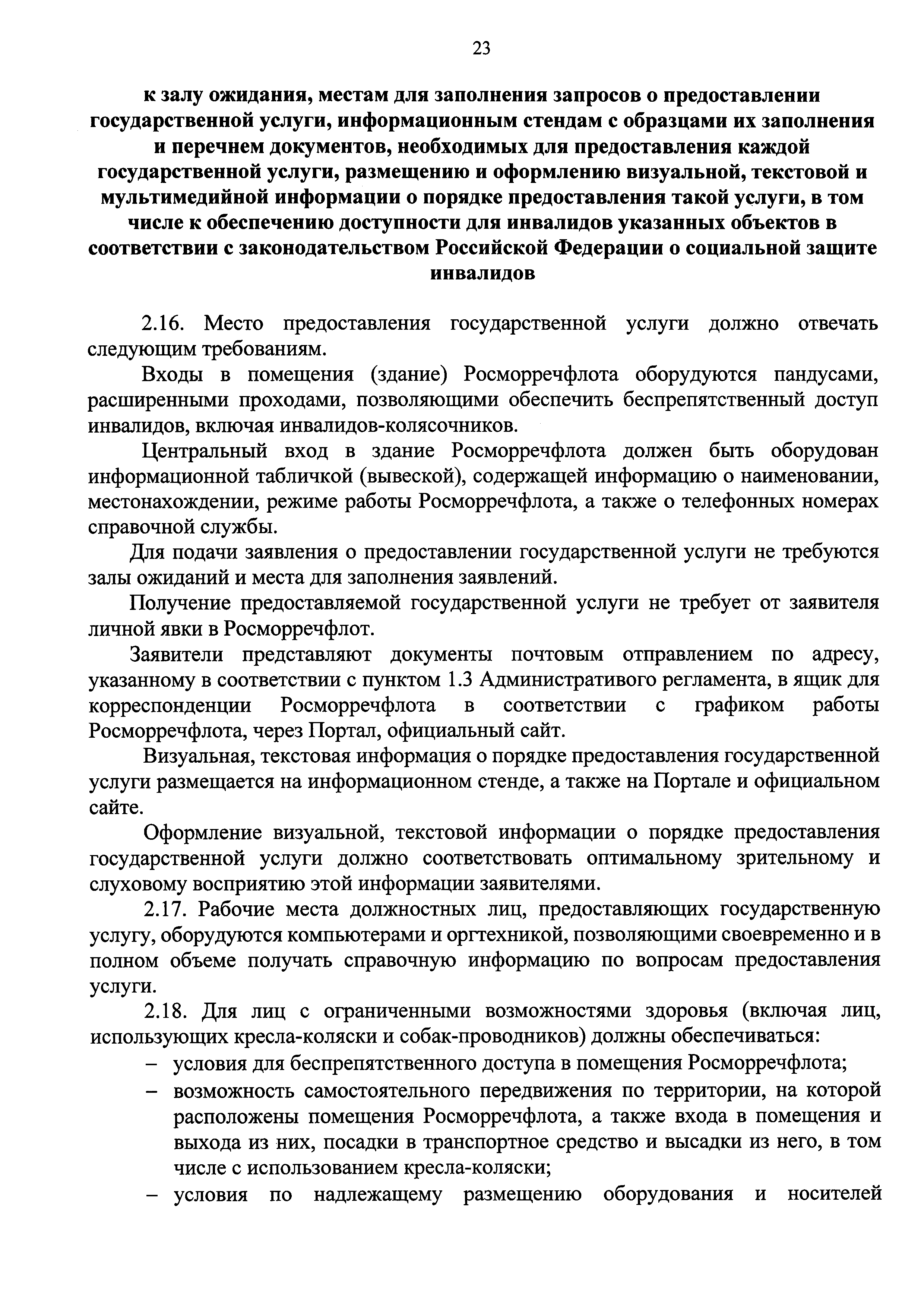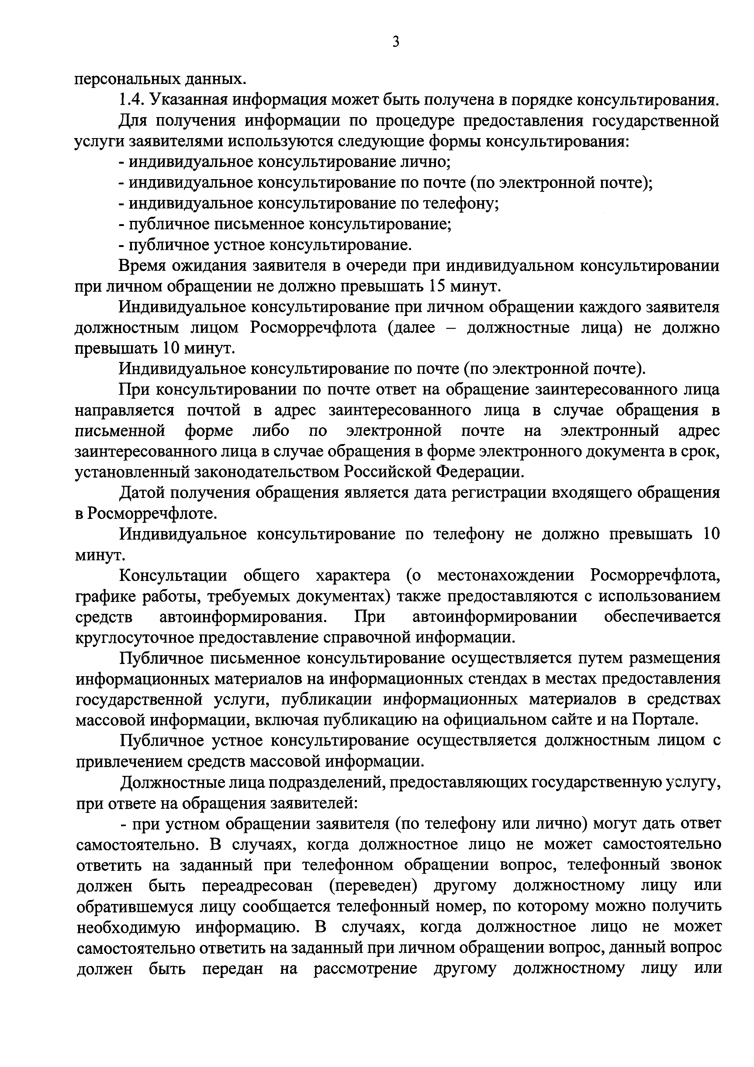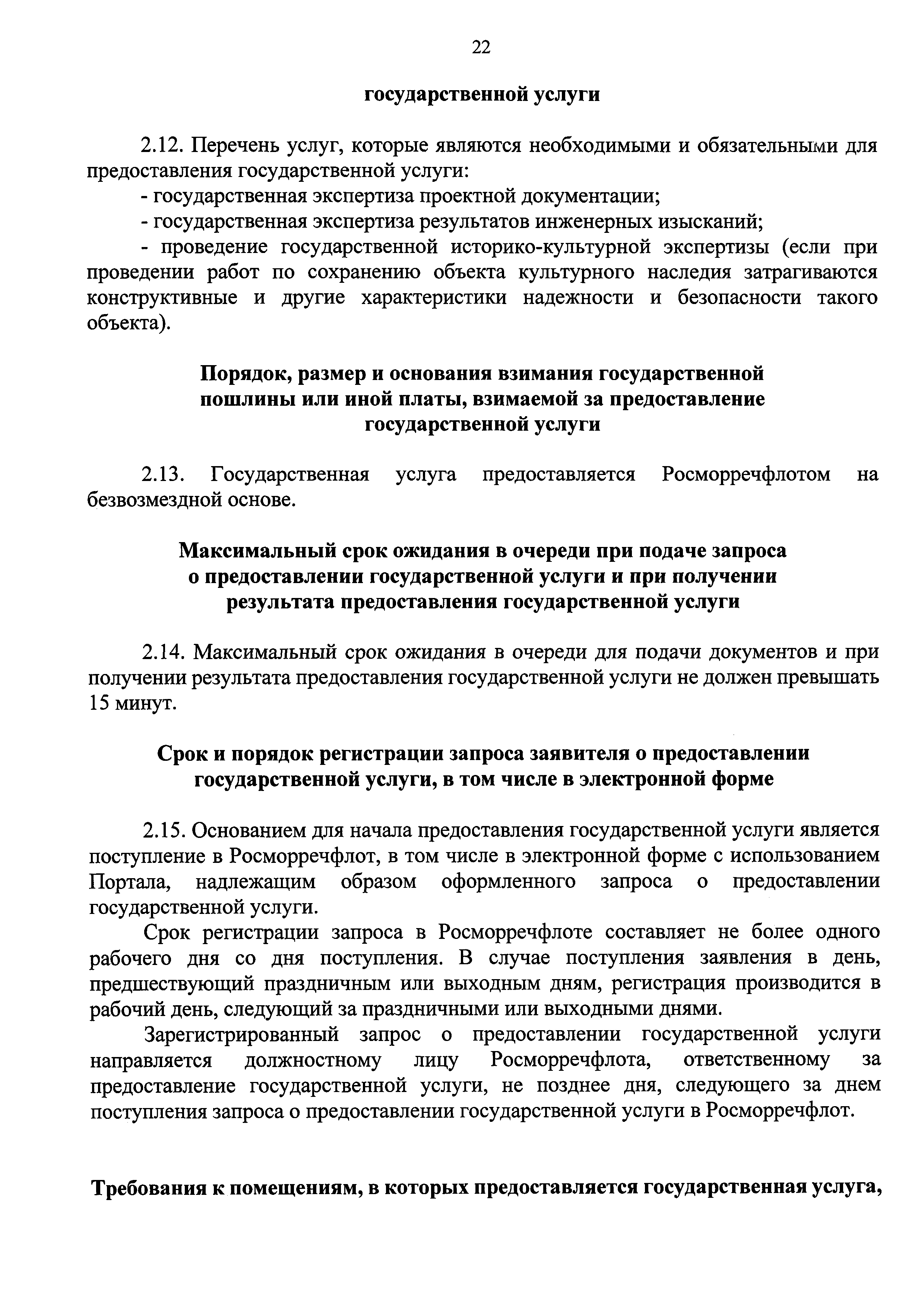| Оглавление: | I. Общие положения II. Стандарт предоставления государственной услуги III. Состав, последовательность и сроки выполнения административных процедур, требования к порядку их выполнения, в том числе особенности выполнения административных процедур (действий) в электронной форме IV. Формы контроля за предоставлением государственной услуги V. Досудебное (внесудебное) обжалование заявителем решений и действий (бездействия) Росморречфлота, а так же их должностных лиц Приложение № 1. Форма заявления о выдаче разрешения на строительство Приложение № 2. Форма заявления о выдаче разрешения на ввод объекта в эксплуатацию Приложение № 3. Форма заявления о продлении срока действия разрешения на строительство |
