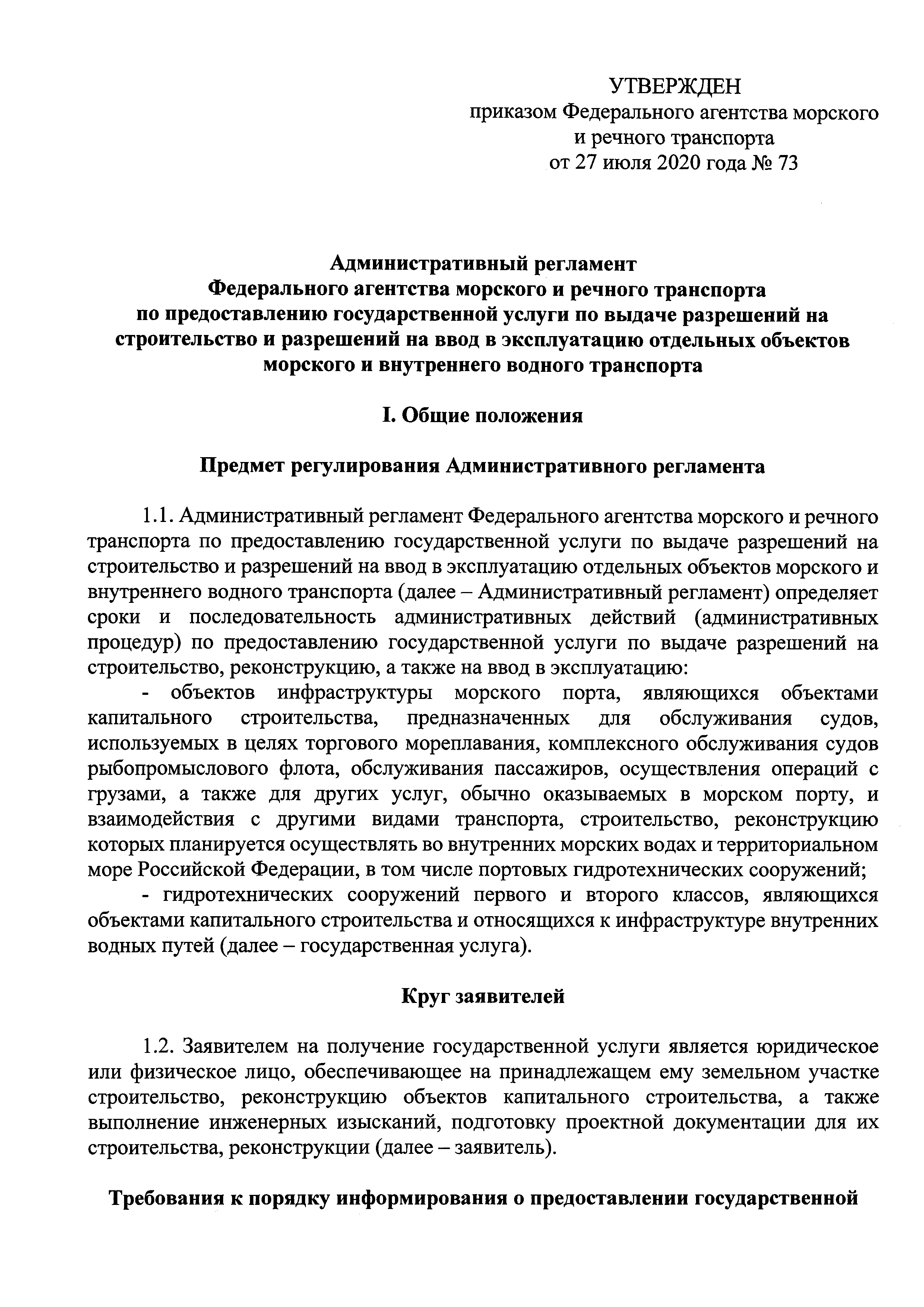 | Утверждён: | 27.07.2020 Федеральное агентство морского и речного транспорта (73) |