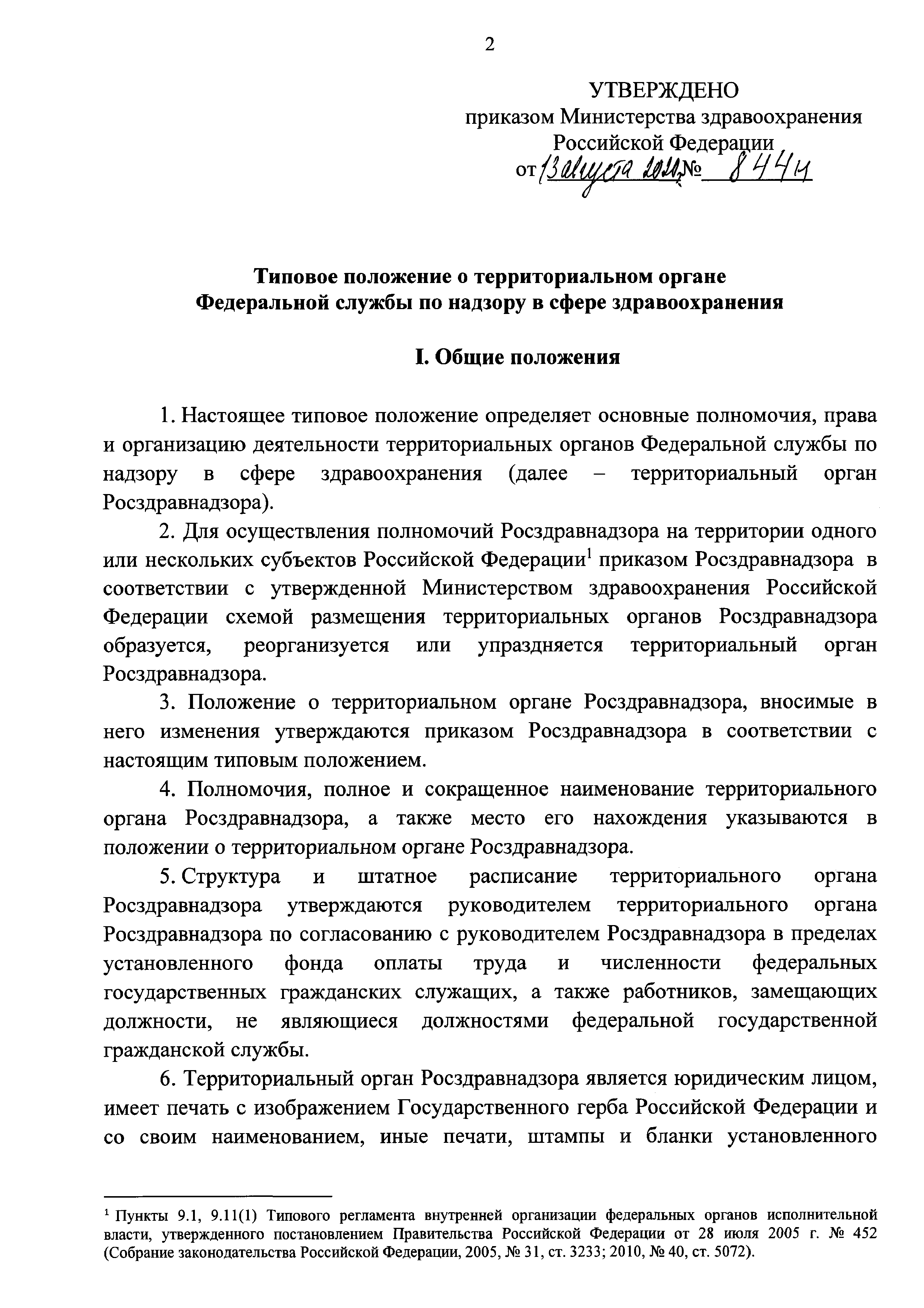 | Название рус.: | Типовое положение о территориальном органе Федеральной службы по надзору в сфере здравоохранения |