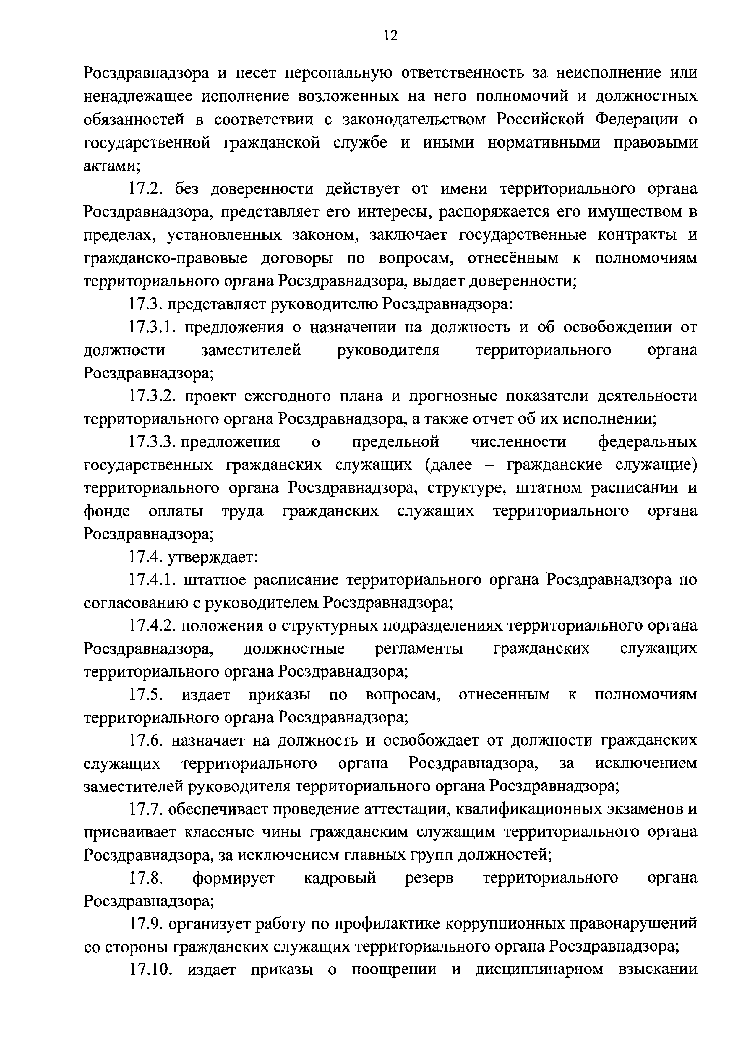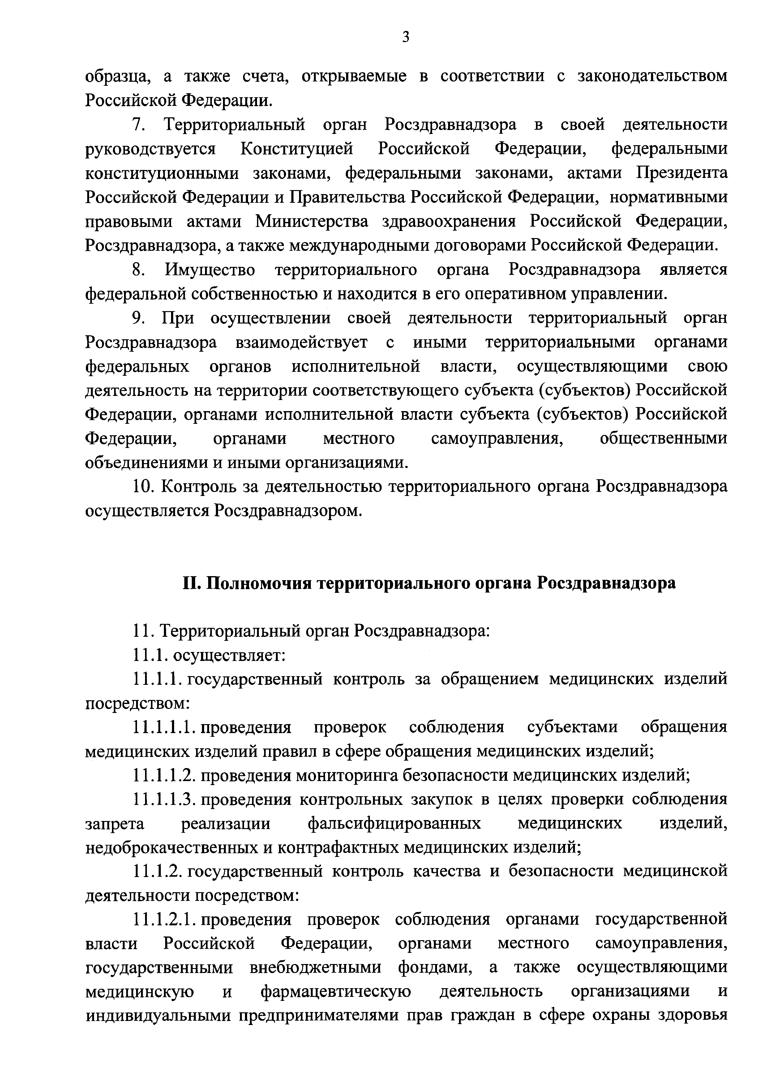 | Оглавление: | I. Общие положения II. Полномочия территориального органа Росздравнадзора III. Организация деятельности территориального органа Росздравнадзора |