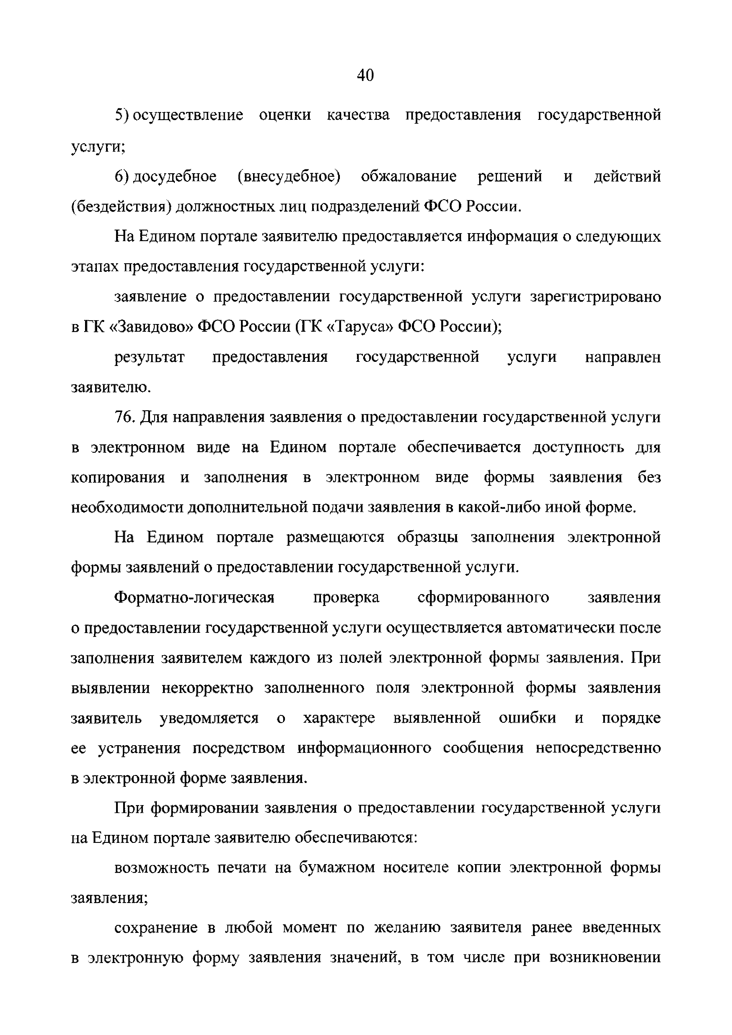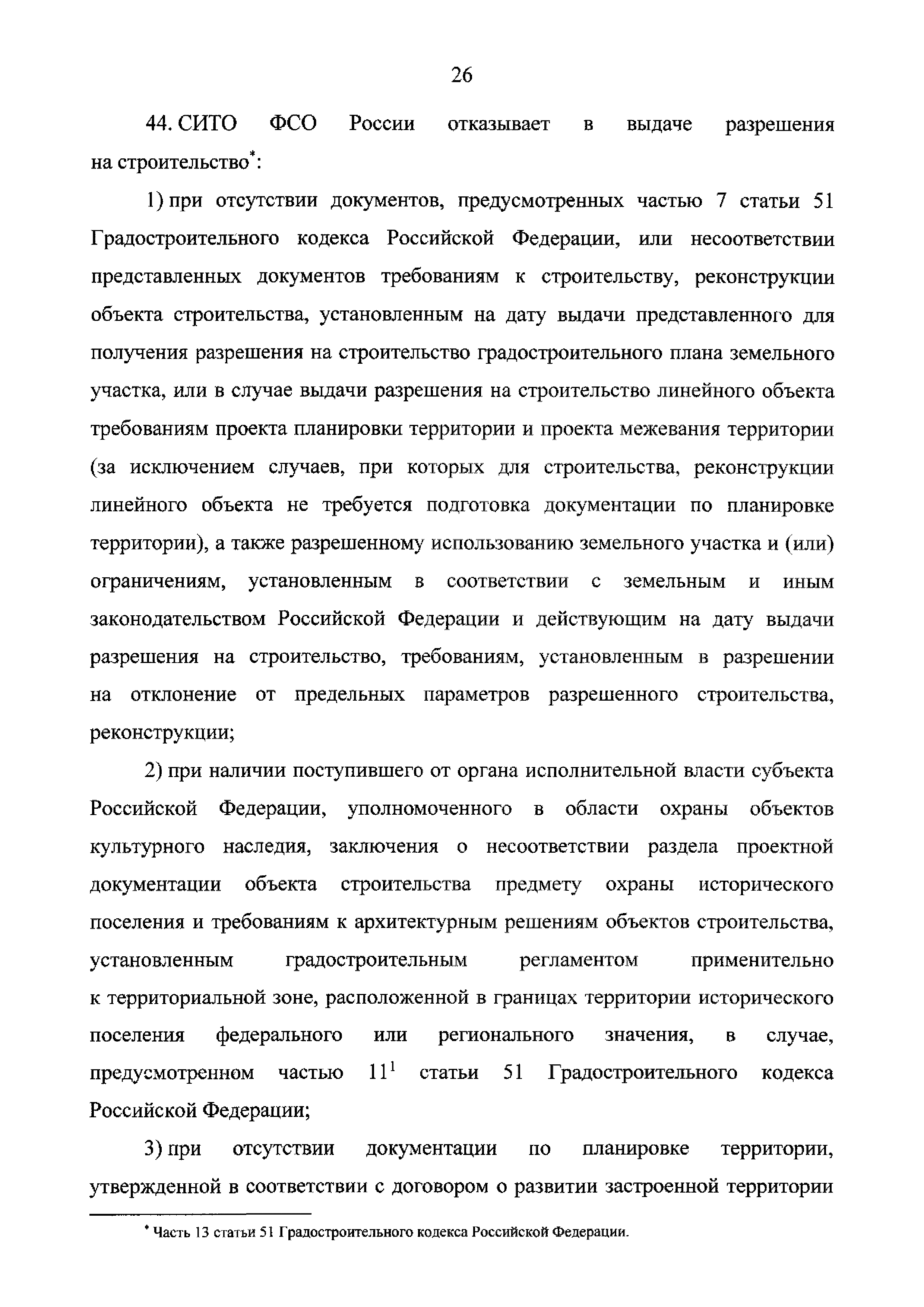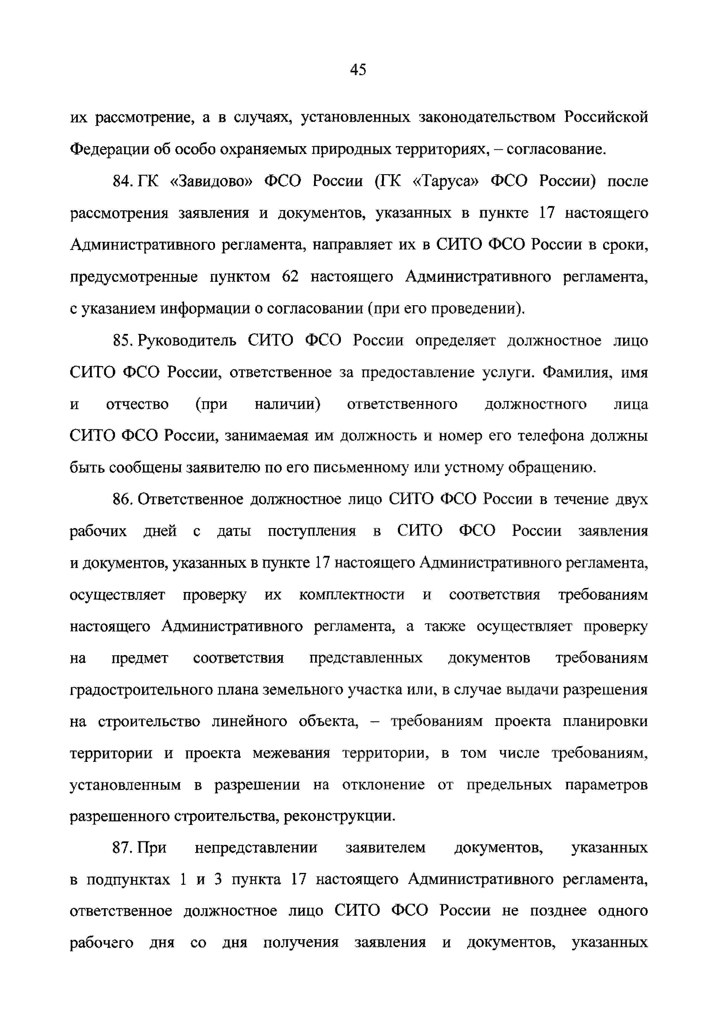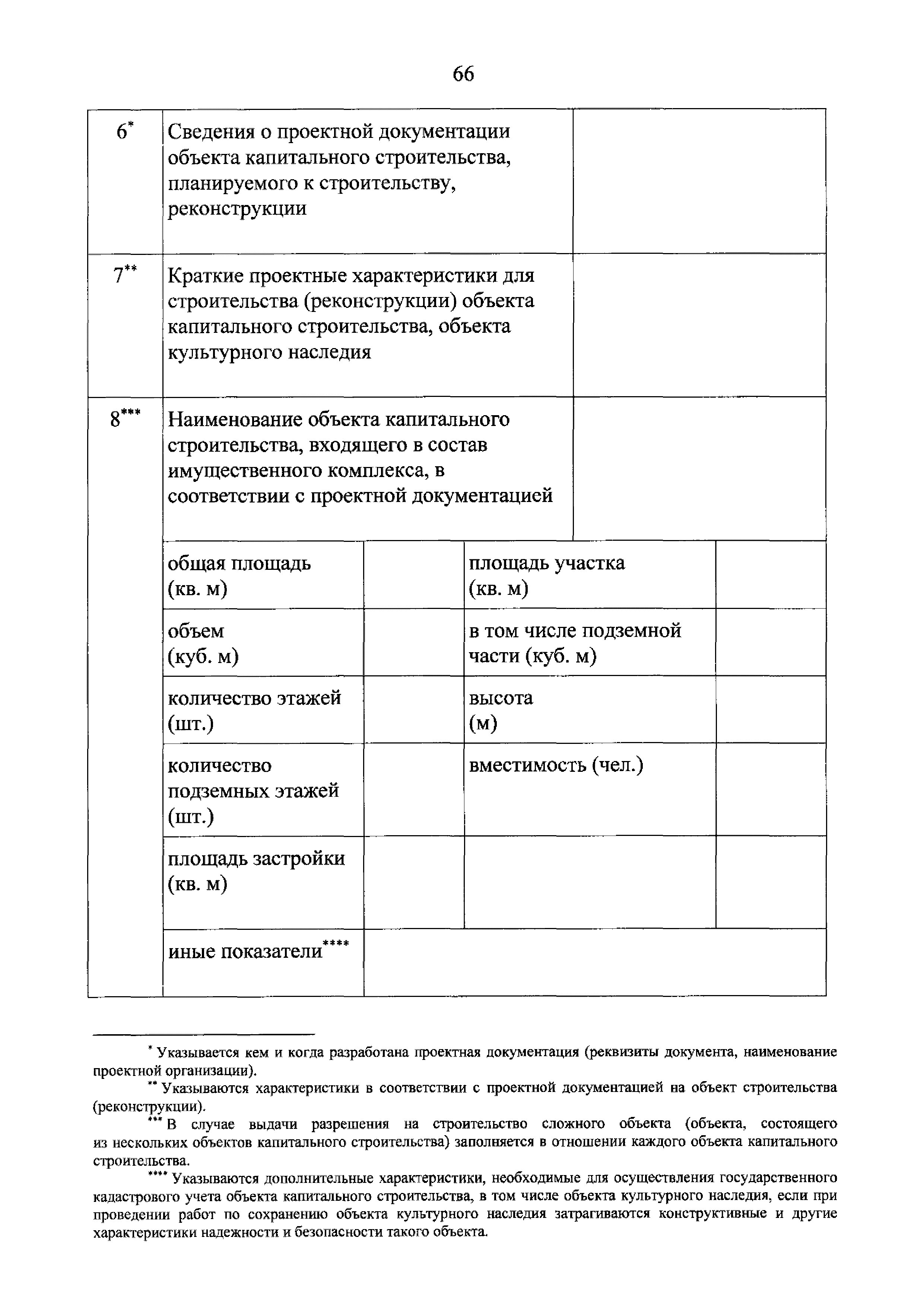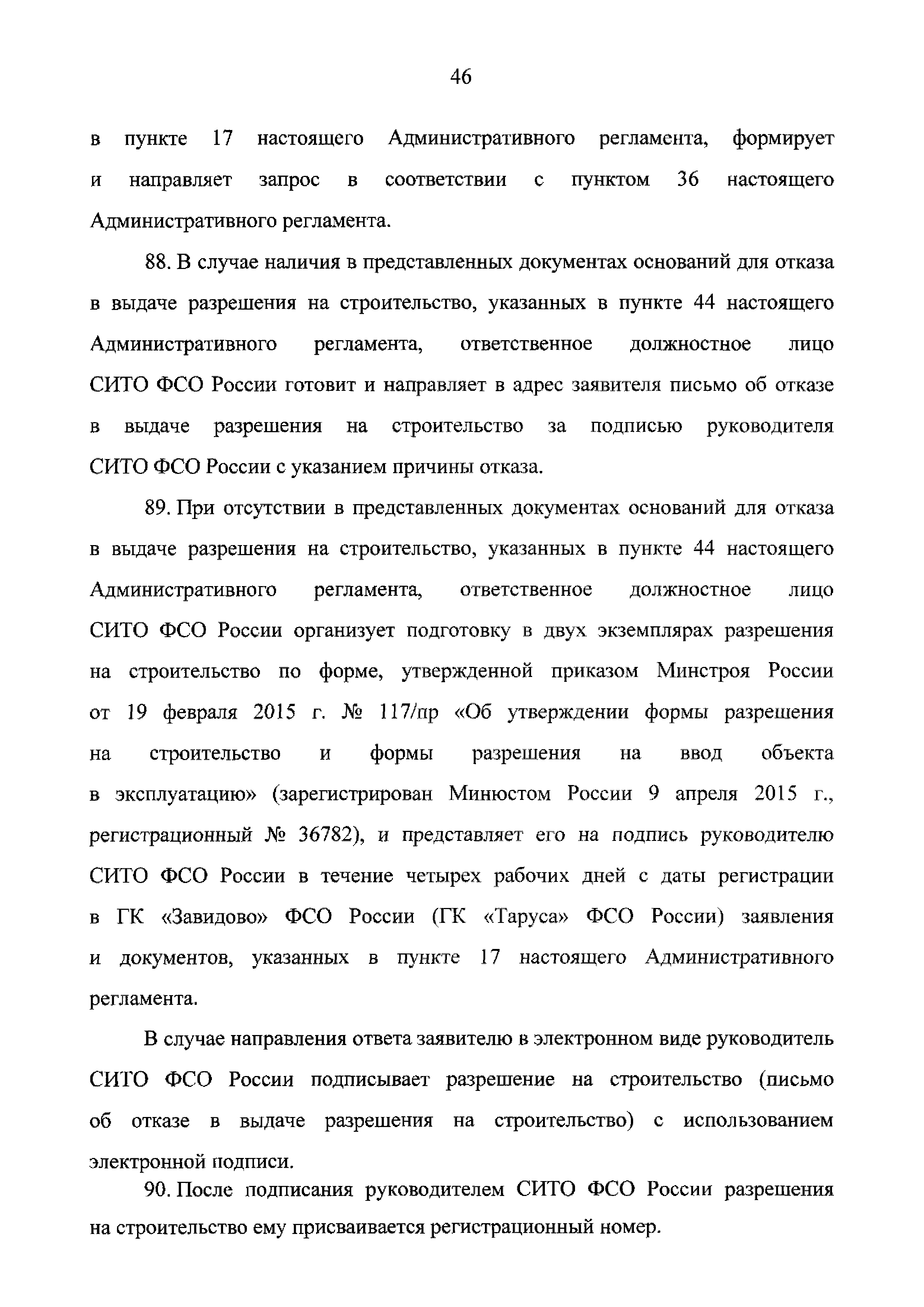 | Оглавление: | I. Общие положения II. Стандарт предоставления государственной услуги Наименование государственной услуги III. Состав, последовательность и сроки выполнения административных процедур (действий), требования к порядку их выполнения, в том числе особенности выполнения административных процедур (действий) IV. Формы контроля за предоставлением государственной услуги V. Досудебный (внесудебный) порядок обжалования решений и действий (бездействия) подразделений ФСО России, а также должностных лиц подразделений ФСО России, участвующих в предоставлении государственной услуги Приложение № 1. Форма заявления о выдаче разрешения на строительство объекта капитального строительства Приложение № 2. Форма заявления о выдаче разрешения на ввод в эксплуатацию объекта капитального строительства Приложение № 3. Форма заявления о внесении изменений в разрешение на строительство объекта капитального строительства Приложение № 4. Форма заявления о внесении изменений в разрешение на строительство объекта капитального строительства в связи с продлением срока действия разрешения Приложение № 5. Форма заявления о выдаче дубликата разрешения на строительство объекта капитального строительства или разрешения на ввод в эксплуатацию объекта капитального строительства Приложение № 6. Форма заявления об исправлении технических ошибок в разрешении на строительство объекта капитального строительства или в разрешении на ввод в эксплуатацию объекта капитального строительства |