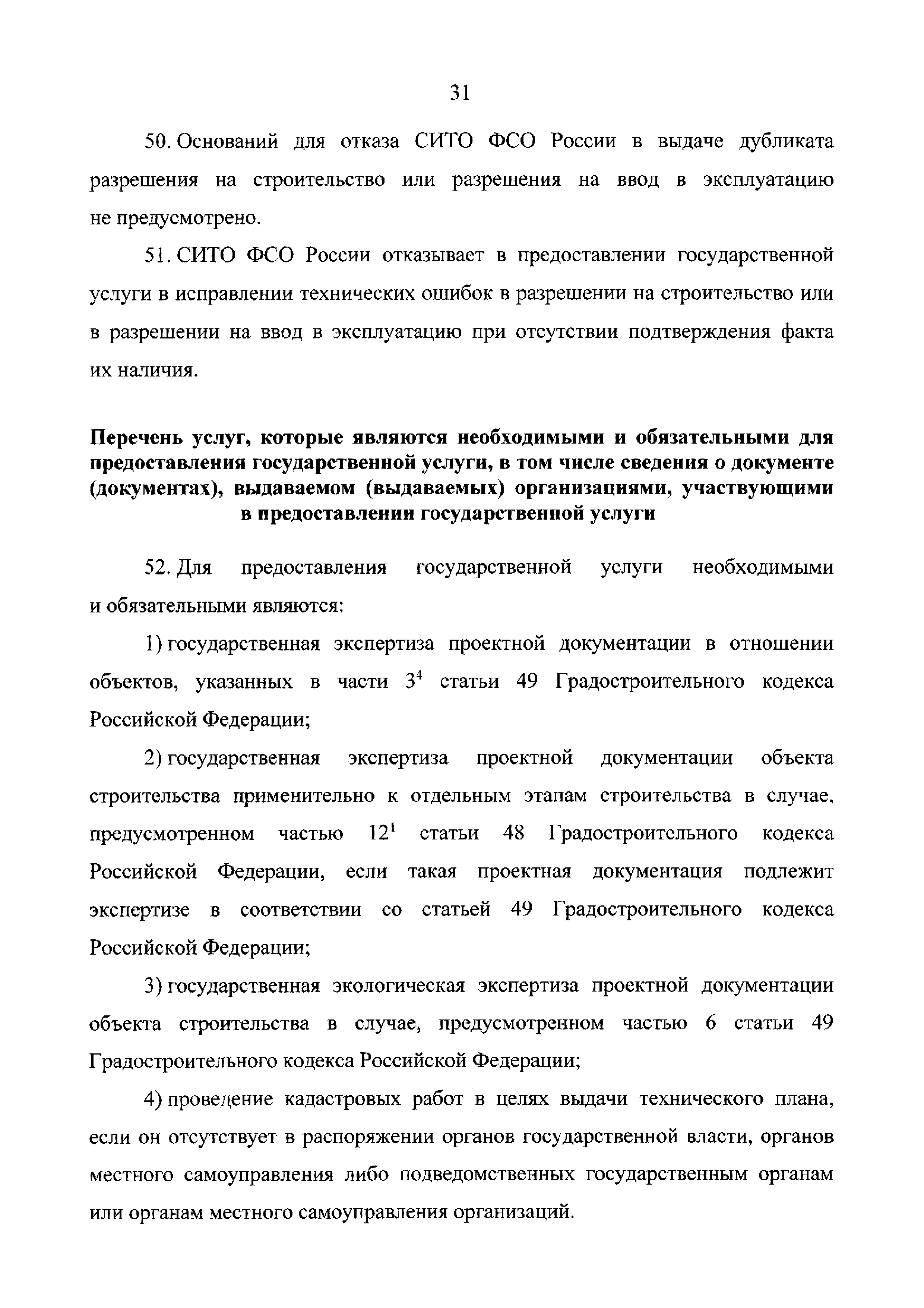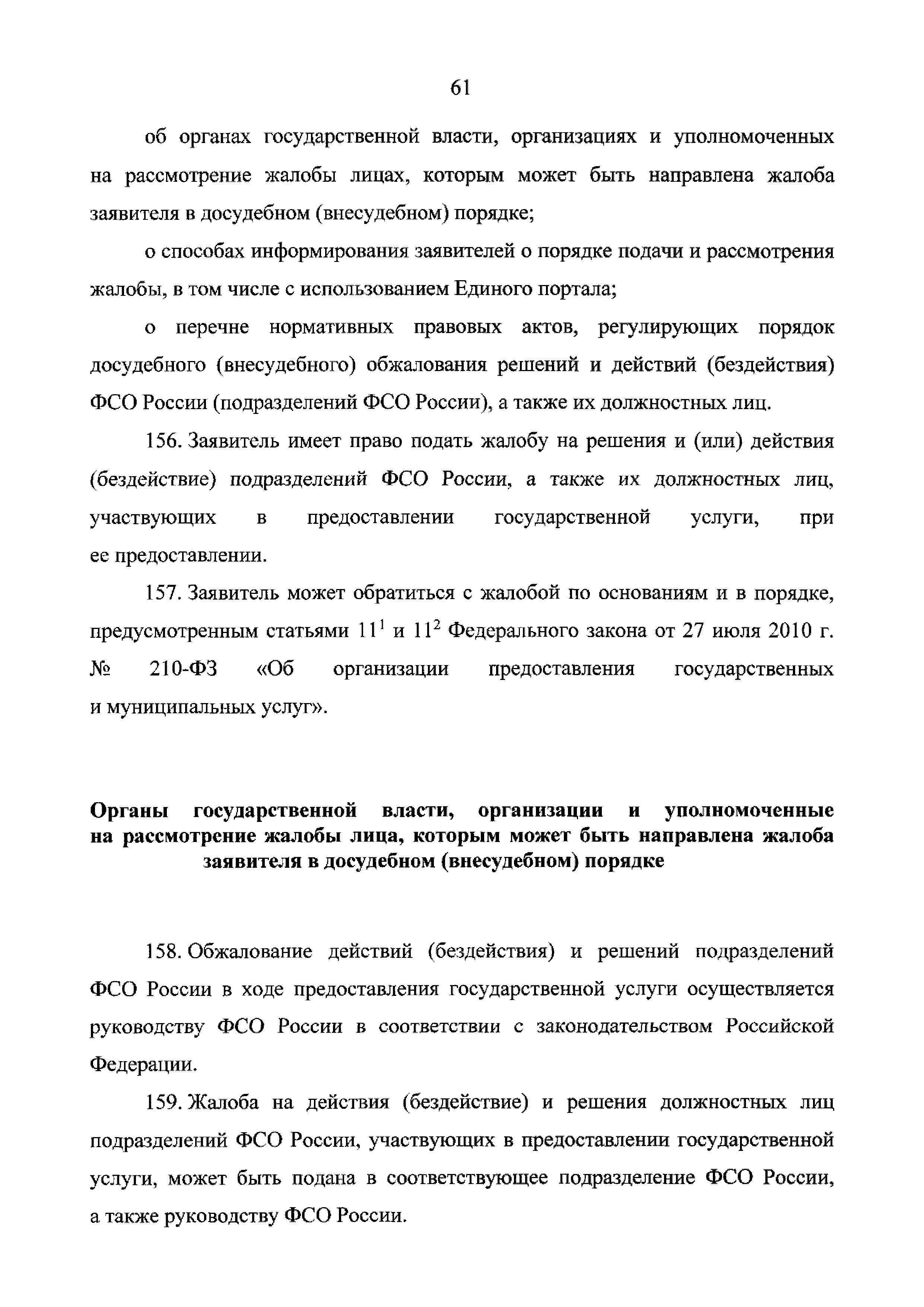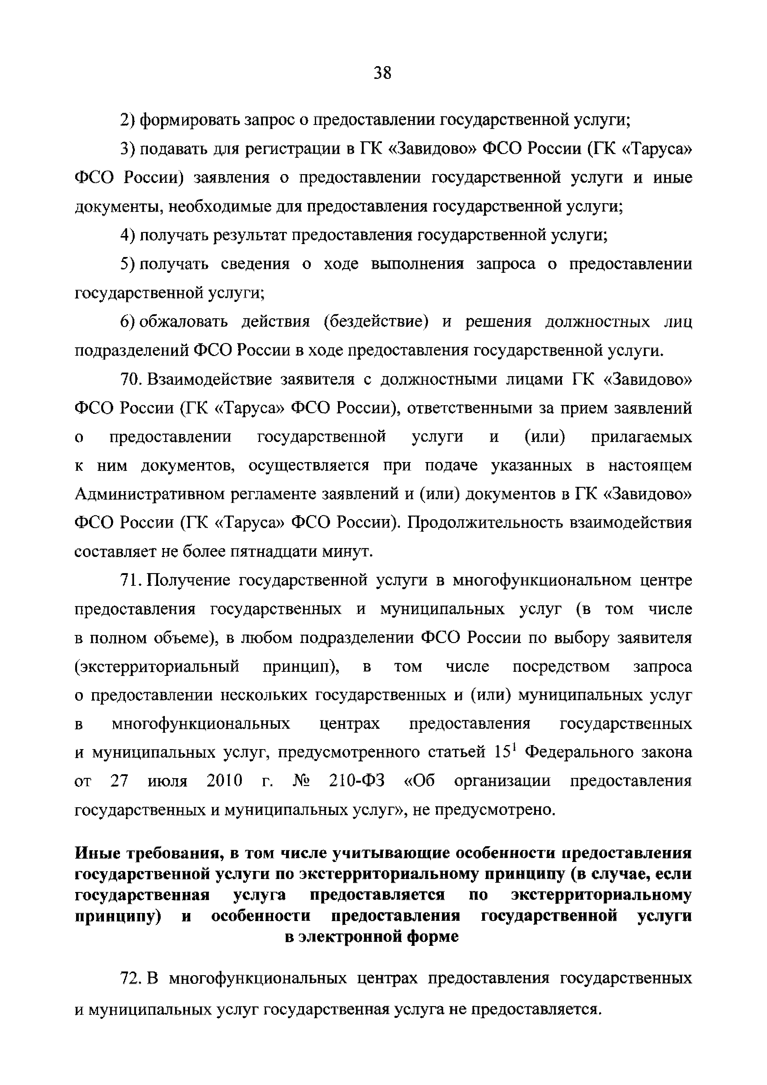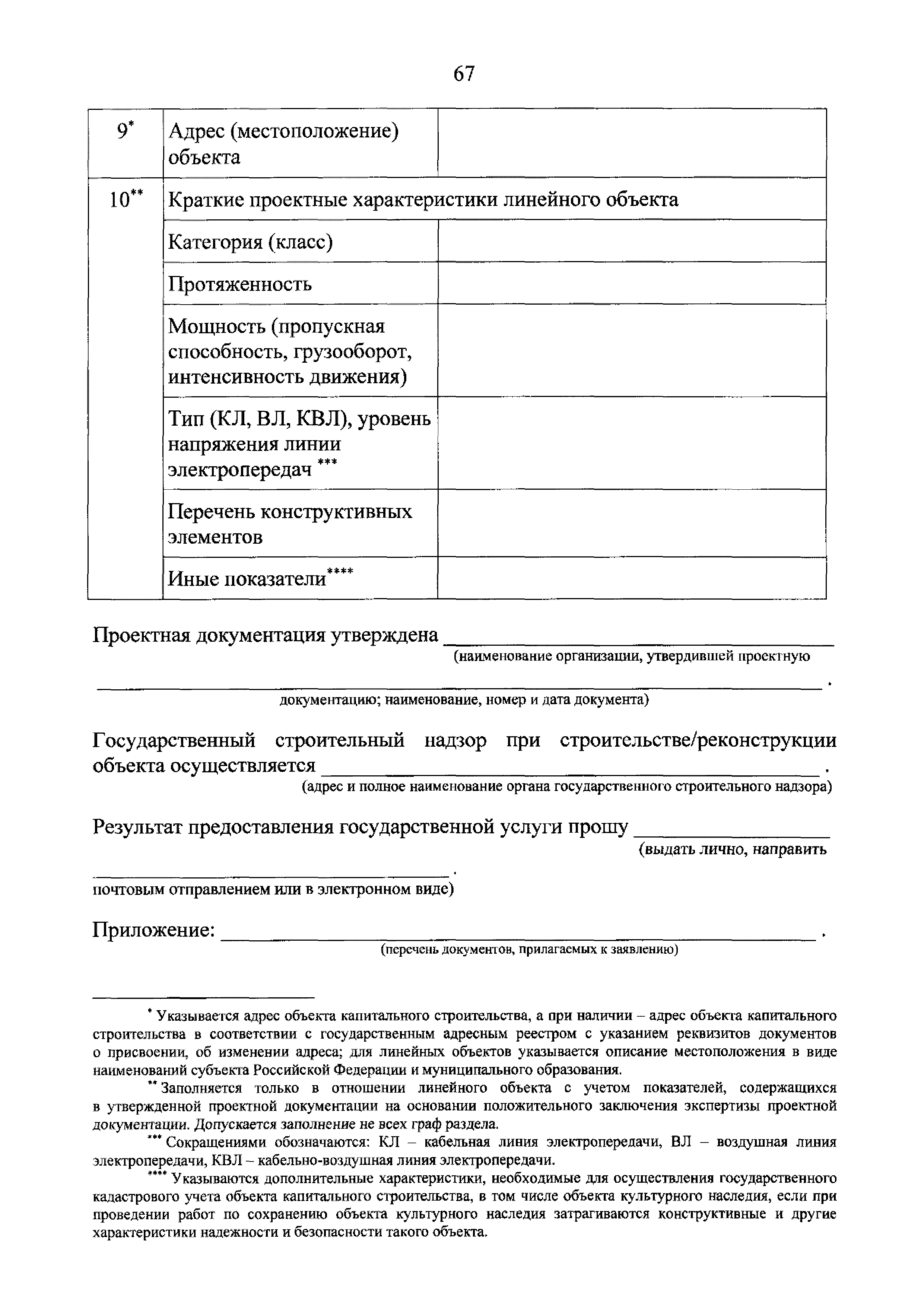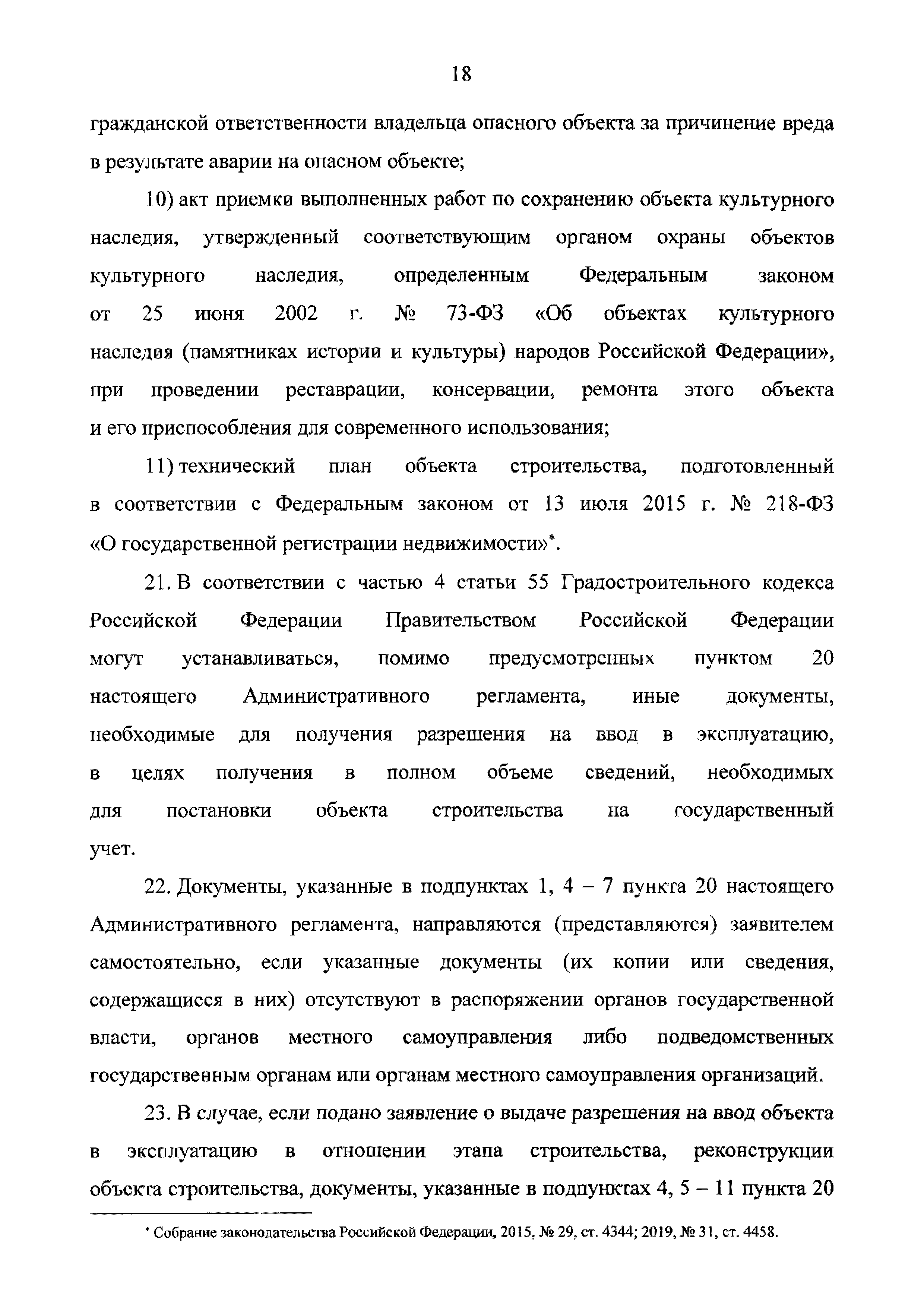 | Оглавление: | I. Общие положения II. Стандарт предоставления государственной услуги Наименование государственной услуги III. Состав, последовательность и сроки выполнения административных процедур (действий), требования к порядку их выполнения, в том числе особенности выполнения административных процедур (действий) IV. Формы контроля за предоставлением государственной услуги V. Досудебный (внесудебный) порядок обжалования решений и действий (бездействия) подразделений ФСО России, а также должностных лиц подразделений ФСО России, участвующих в предоставлении государственной услуги Приложение № 1. Форма заявления о выдаче разрешения на строительство объекта капитального строительства Приложение № 2. Форма заявления о выдаче разрешения на ввод в эксплуатацию объекта капитального строительства Приложение № 3. Форма заявления о внесении изменений в разрешение на строительство объекта капитального строительства Приложение № 4. Форма заявления о внесении изменений в разрешение на строительство объекта капитального строительства в связи с продлением срока действия разрешения Приложение № 5. Форма заявления о выдаче дубликата разрешения на строительство объекта капитального строительства или разрешения на ввод в эксплуатацию объекта капитального строительства Приложение № 6. Форма заявления об исправлении технических ошибок в разрешении на строительство объекта капитального строительства или в разрешении на ввод в эксплуатацию объекта капитального строительства |