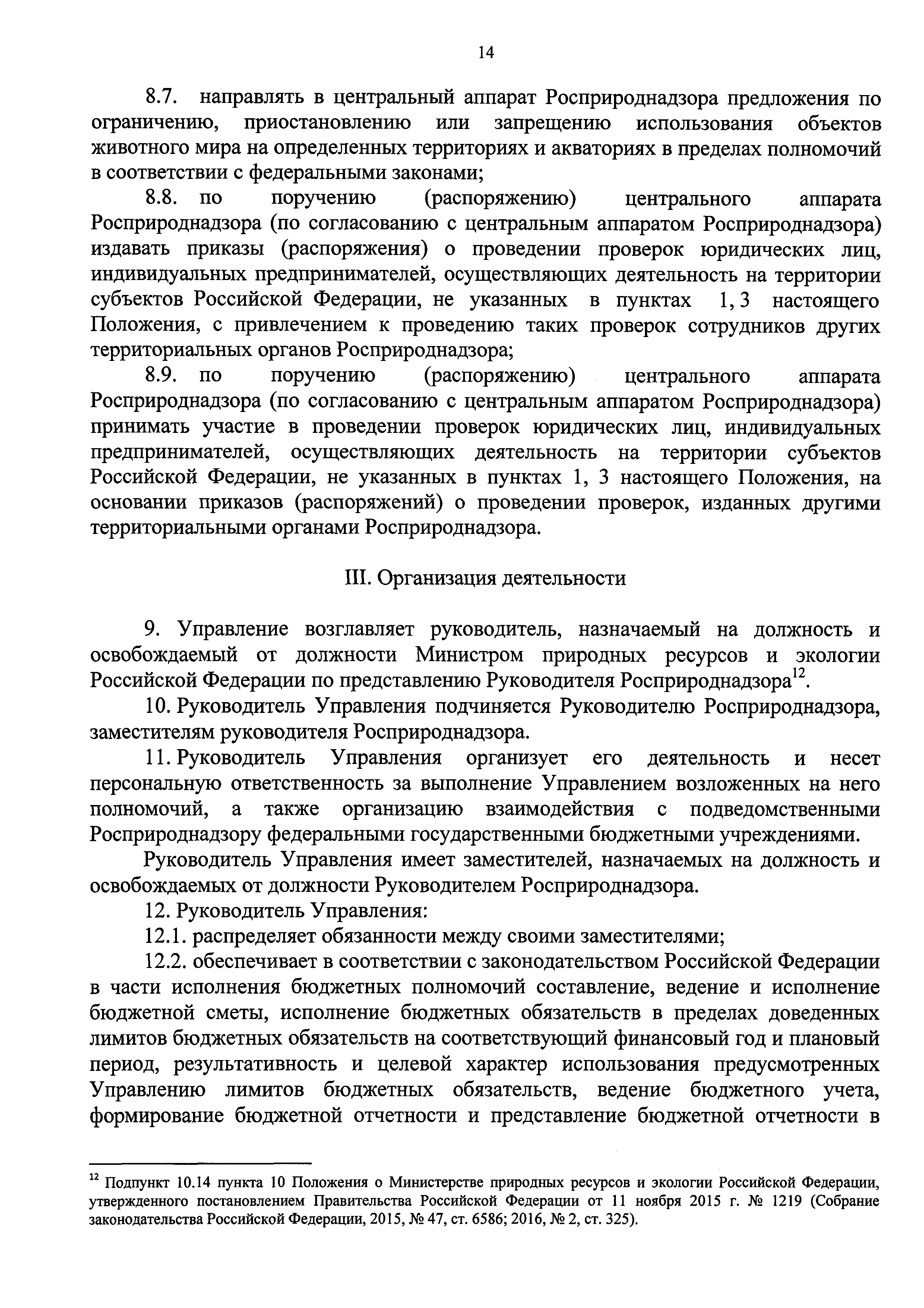 Постановление 1219 «Об утверждении Положения о Министерстве природных ресурсов и экологии Российской Федерации и об изменении и признании утратившими силу некоторых актов Правительства Российской Федерации»