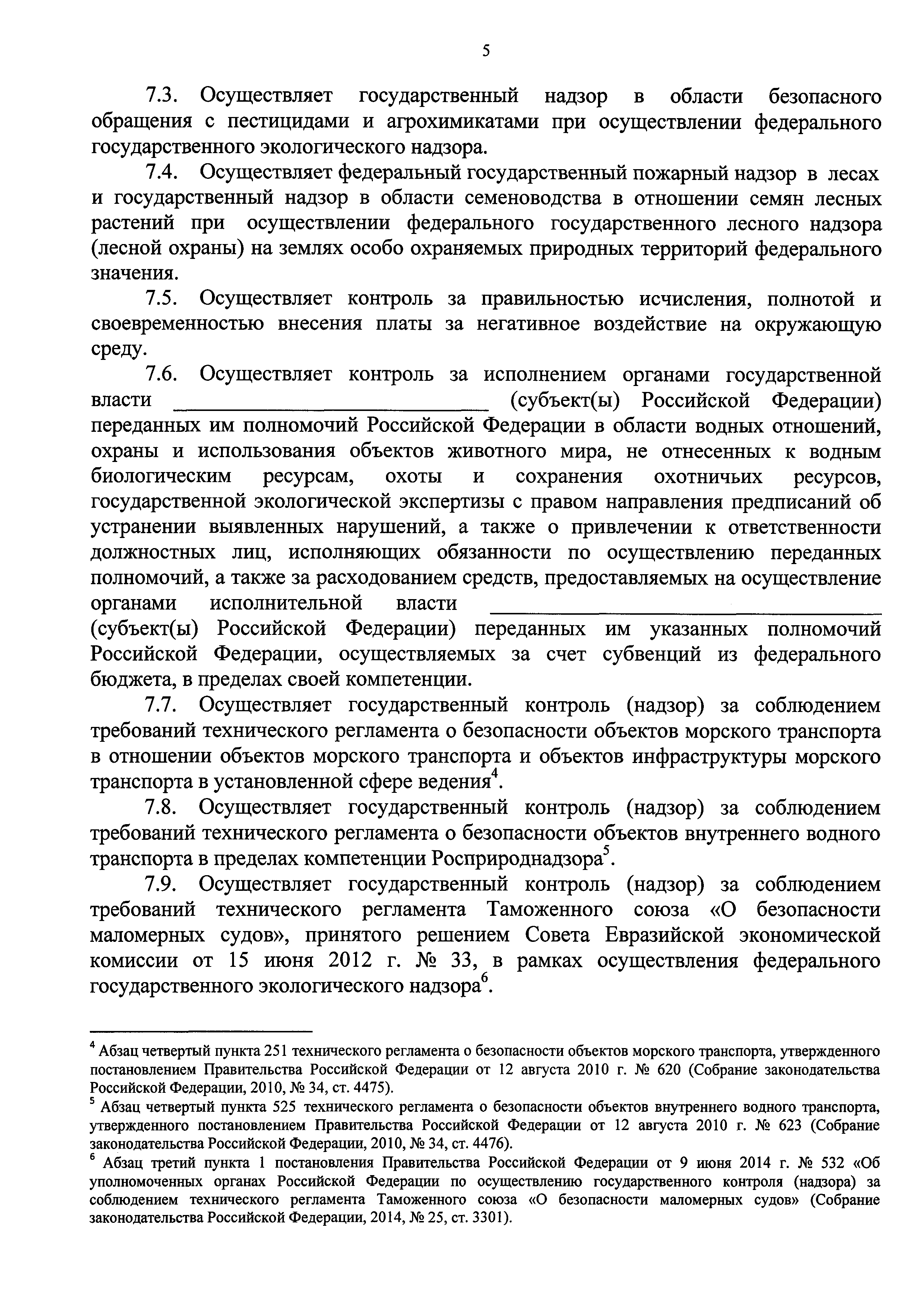 Постановление 532 «Об уполномоченных органах Российской Федерации по осуществлению государственного контроля (надзора) за соблюдением требований технического регламента Таможенного союза "О безопасности маломерных судов"»