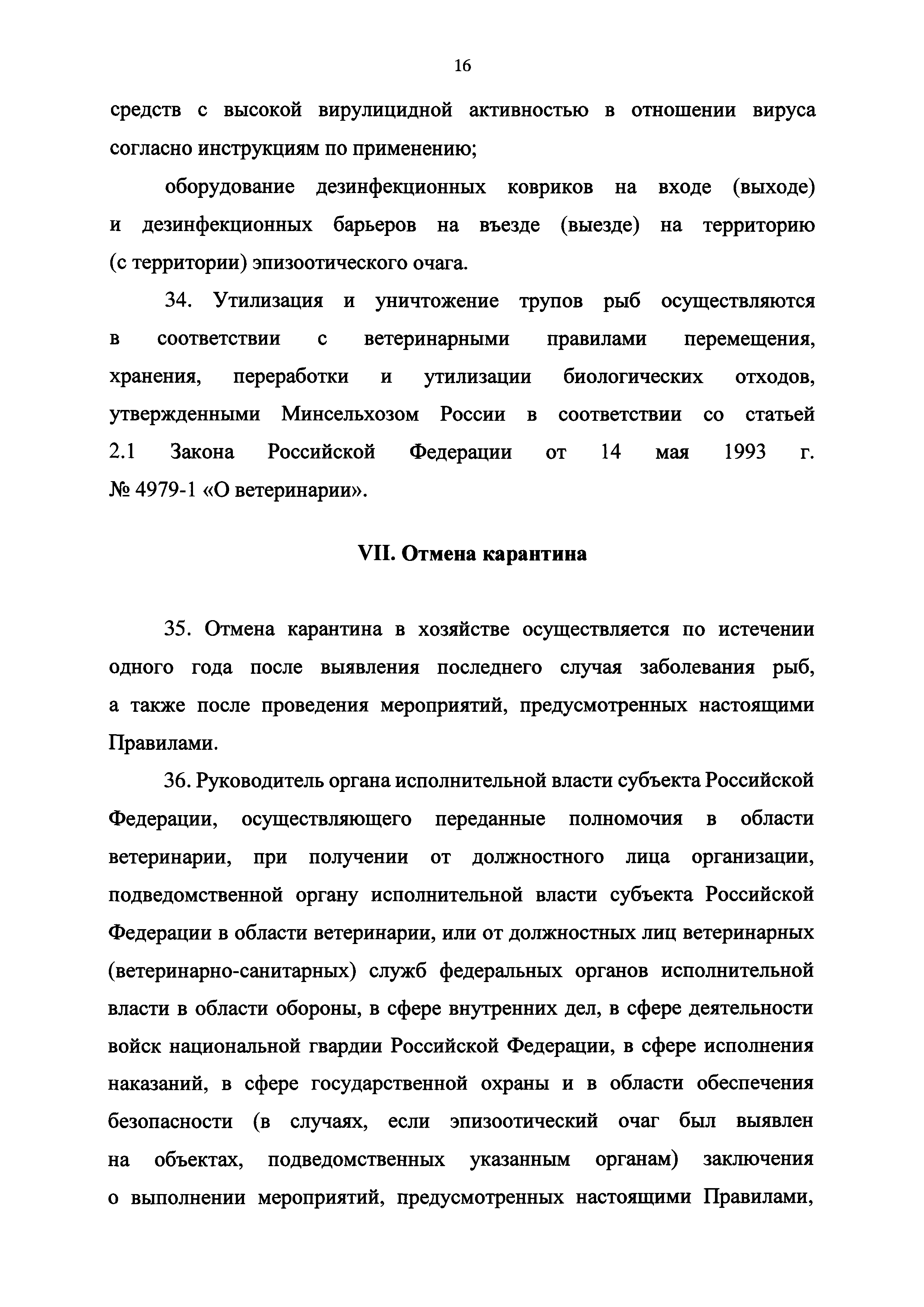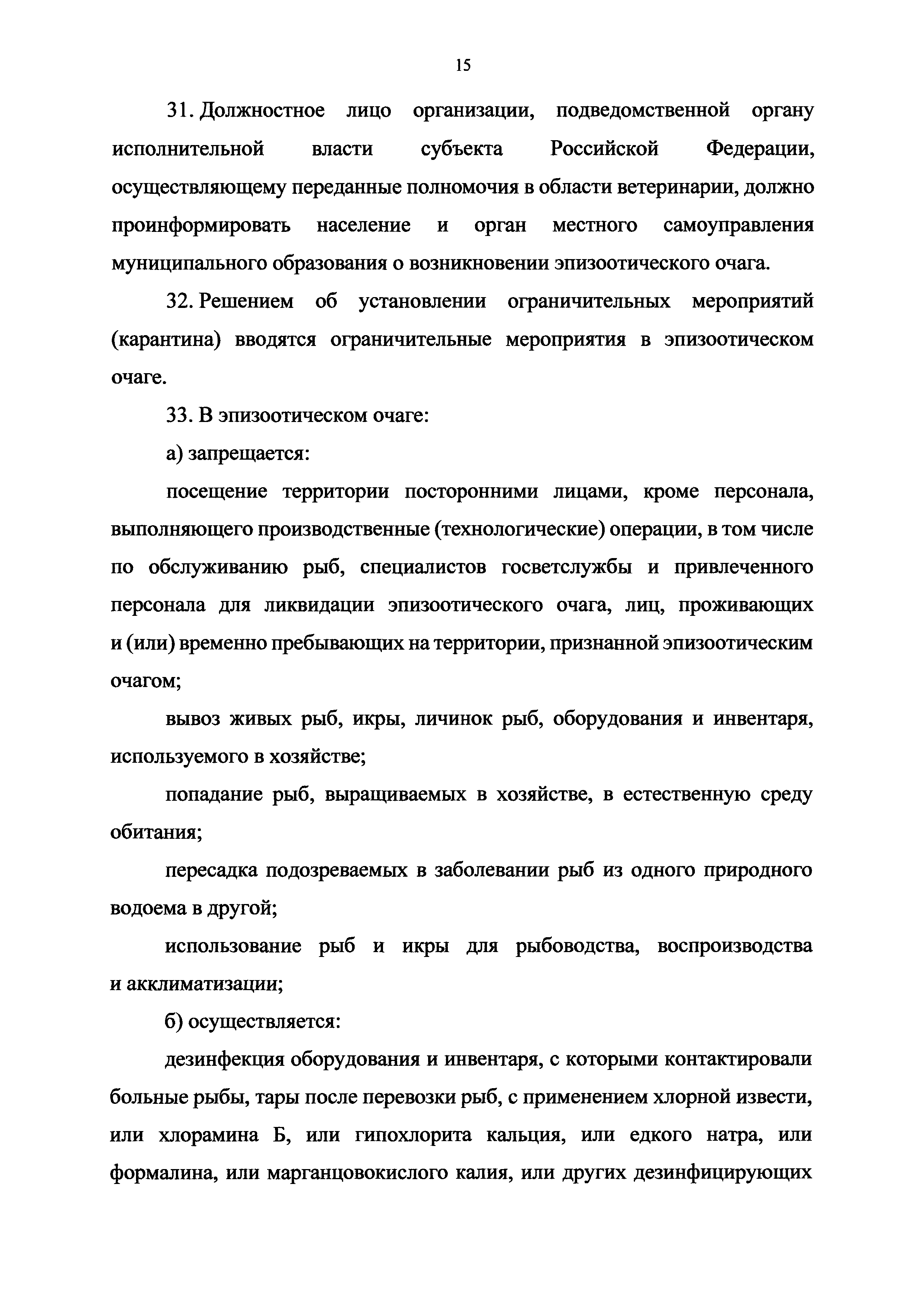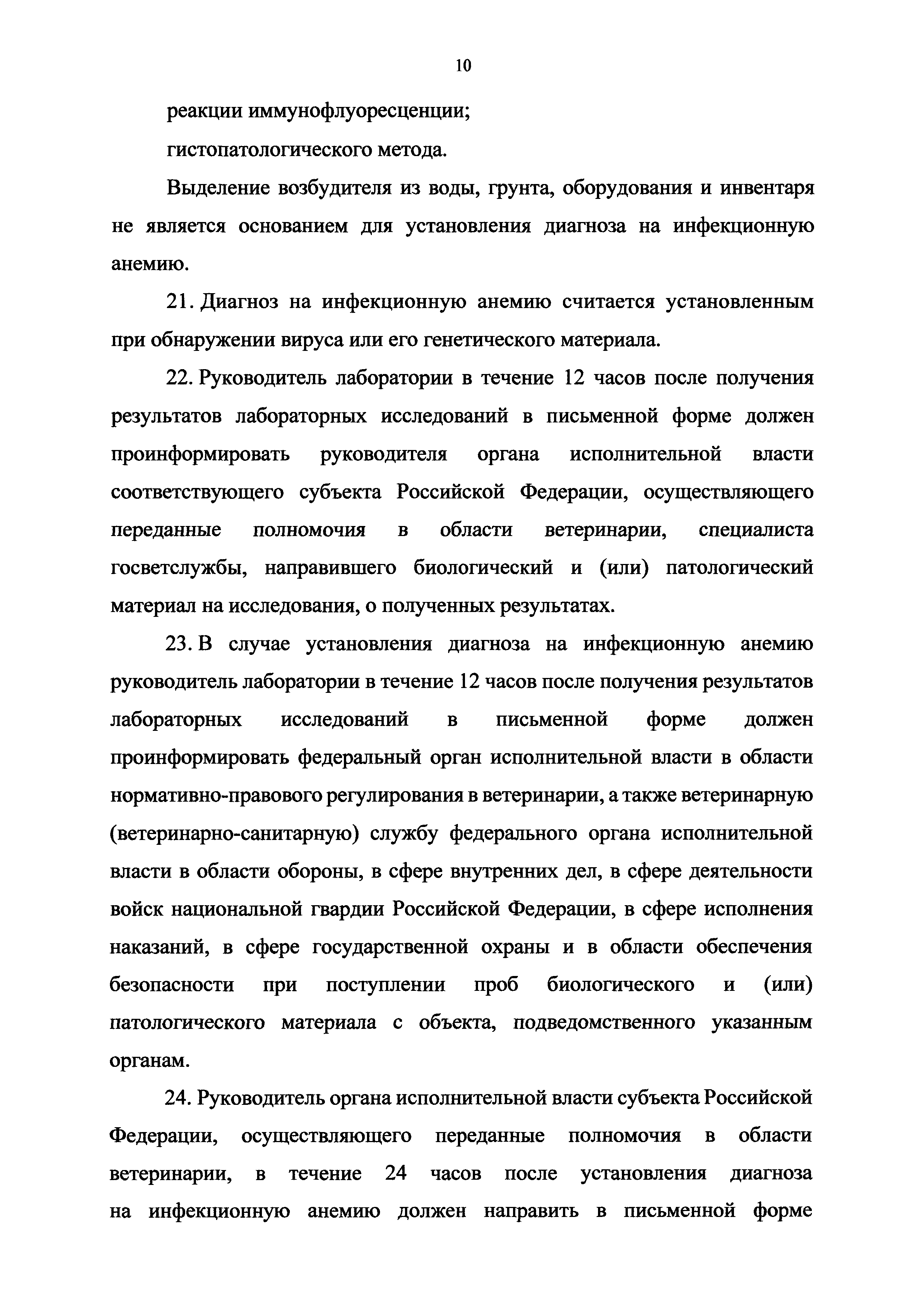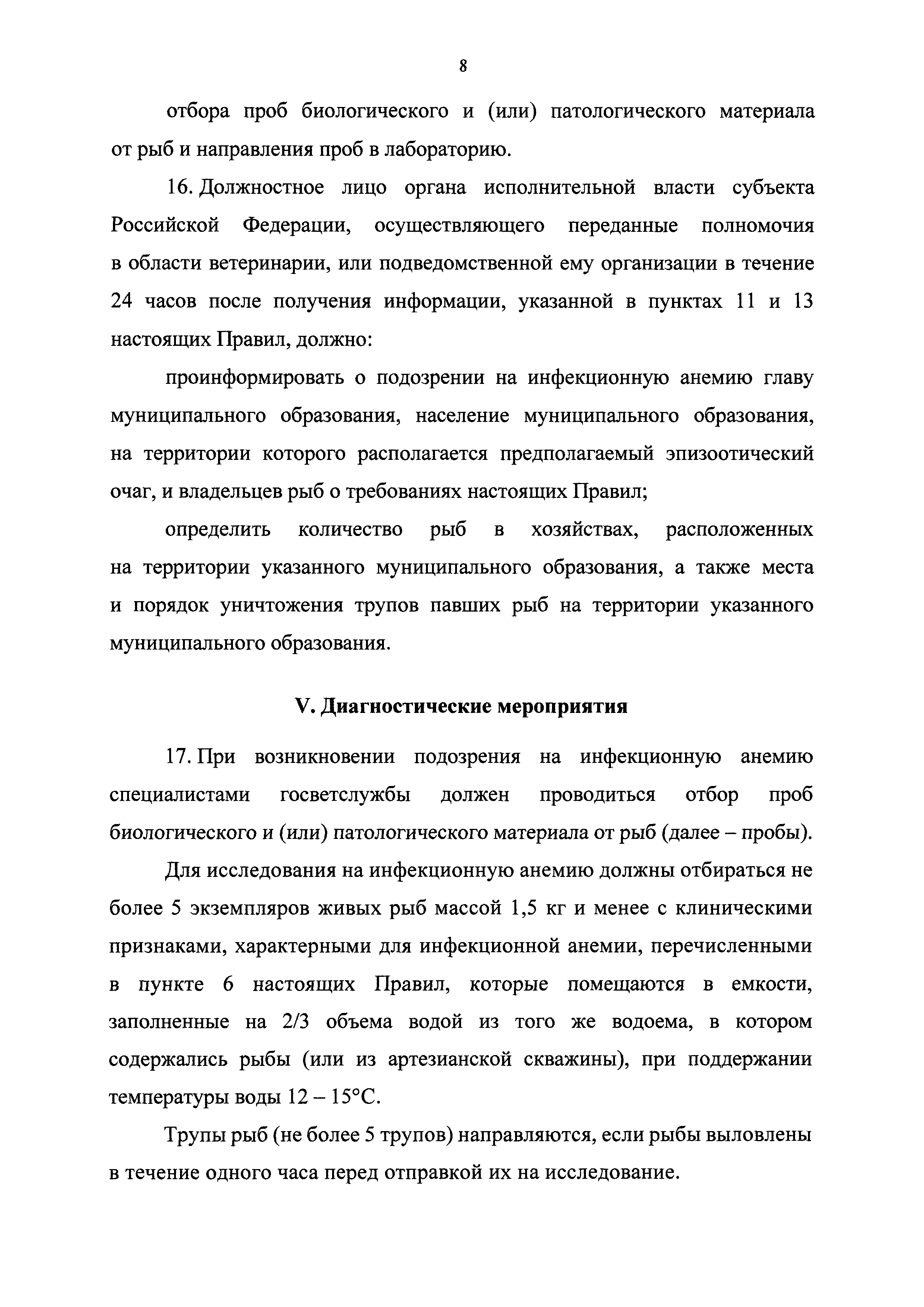 Ветеринарные правила осуществления профилактических, диагностических, ограничительных и иных мероприятий, установления и отмены карантина и иных ограничений, направленных на предотвращение распространения и ликвидацию очагов инфекционной анемии лососевых рыб| Статус: | принят | | Название рус.: | Ветеринарные правила осуществления профилактических, диагностических, ограничительных и иных мероприятий, установления и отмены карантина и иных ограничений, направленных на предотвращение распространения и ликвидацию очагов инфекционной анемии лососевых рыб | | Дата добавления в базу: | 01.01.2021 | | Дата актуализации: | 01.01.2021 | | Дата введения: | 01.01.2021 | | Область применения: | Ветеринарные правила осуществления профилактических, диагностических, ограничительных и иных мероприятий, установления и отмены карантина и иных ограничений, направленных на предотвращение распространения и ликвидацию очагов инфекционной анемии лососевых рыб, устанавливают обязательные для исполнения требования к осуществлению профилактических, диагностических, ограничительных и иных мероприятий, установлению и отмене на территории Российской Федерации карантина и иных ограничений, направленных на предотвращение распространения и ликвидацию очагов инфекционной анемии лососевых рыб | | Оглавление: | I. Область применения II. Общая характеристика инфекционной анемии III. Профилактические мероприятия IV. Мероприятия при подозрении на инфекционную анемию V. Диагностические мероприятия VI. Установление карантина, ограничительные и иные мероприятия, направленные на ликвидацию очагов инфекционной анемии, а также на предотвращение ее распространения VII. Отмена карантина | | Утверждён: | 06.08.2020 Министерство сельского хозяйства Российской Федерации (457)