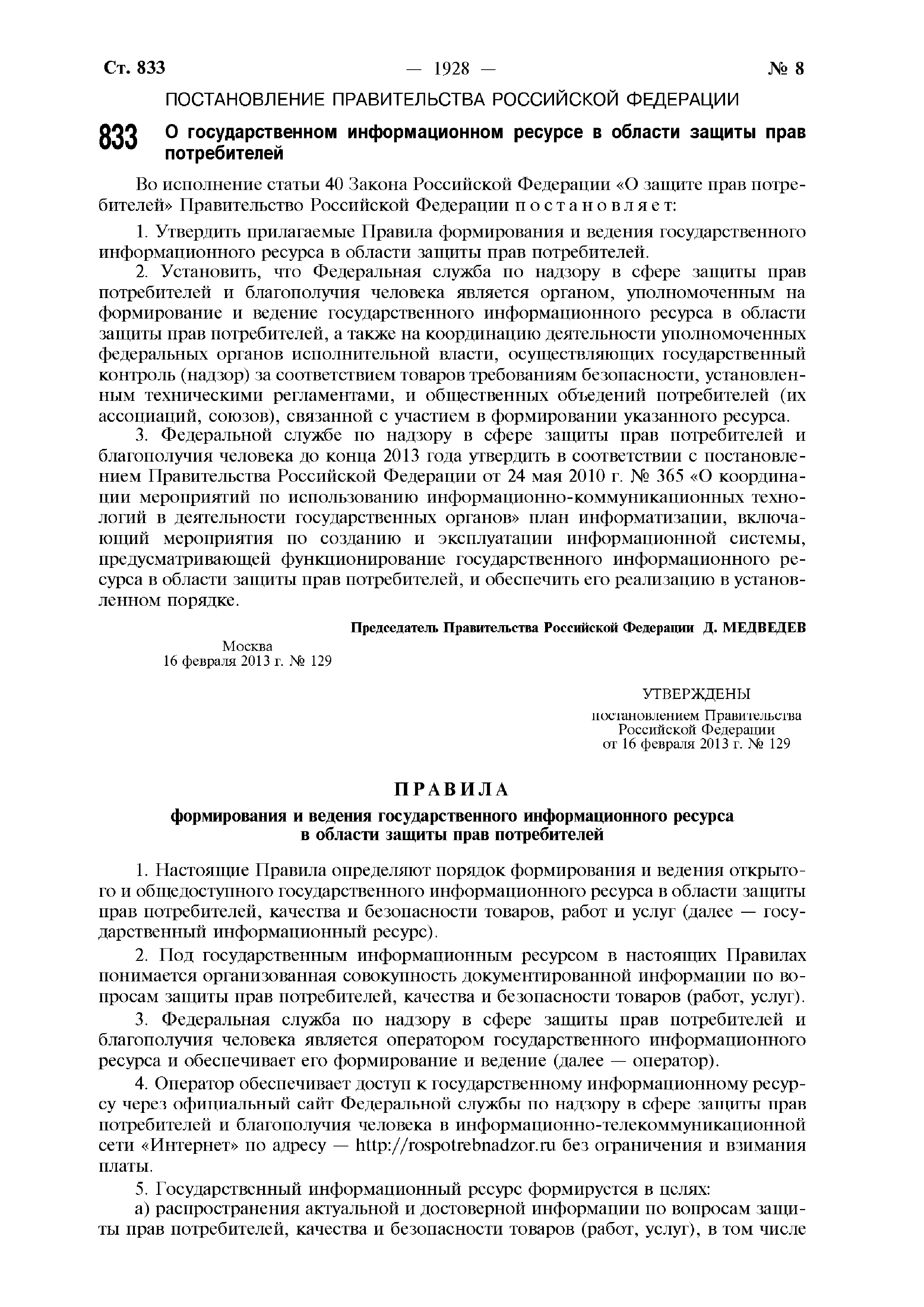 | Утверждён: | 16.02.2013 Правительство Российской Федерации (129)
