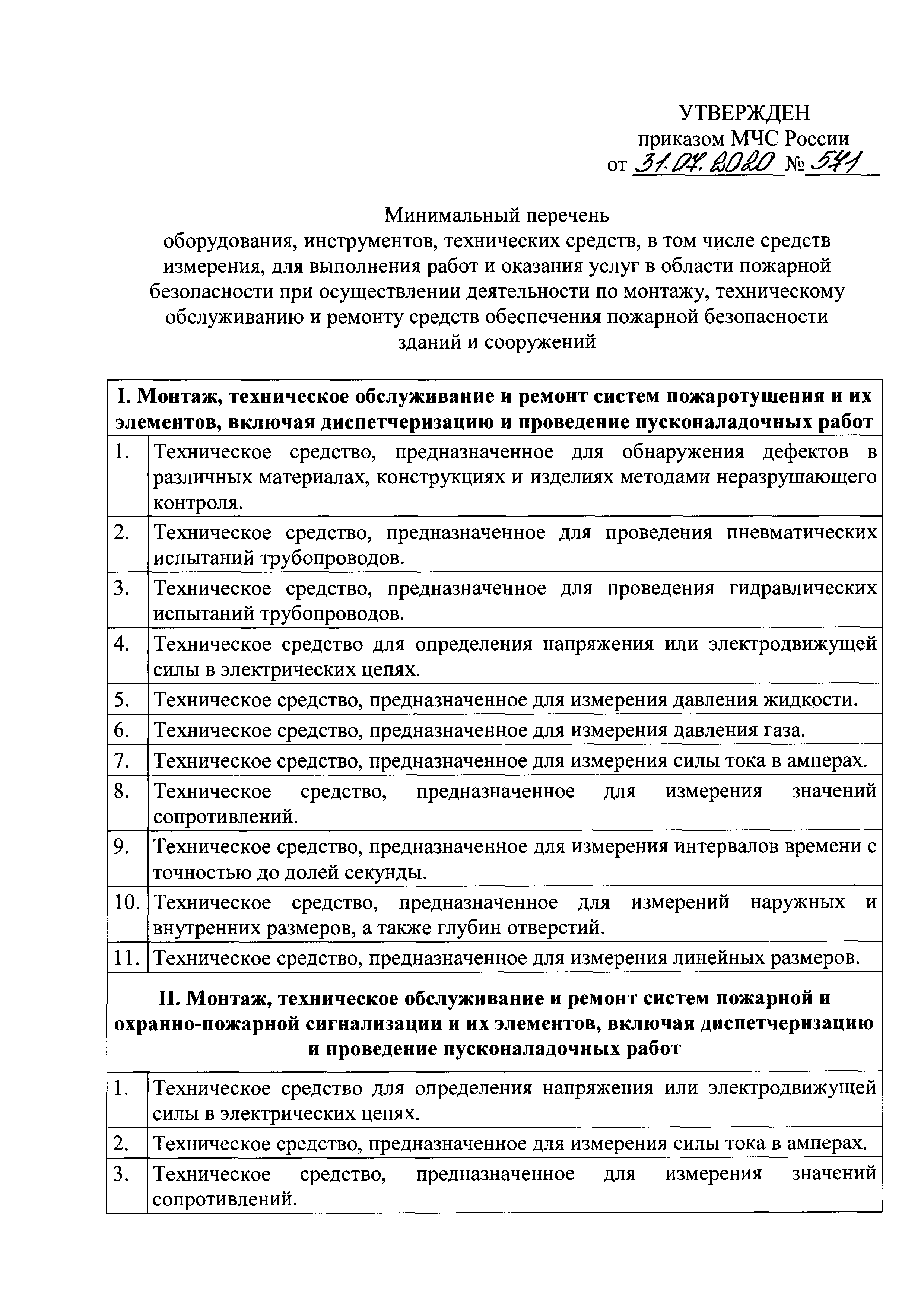 Скачать Минимальный перечень оборудования, инструментов, технических средств, в том числе средств измерения, для выполнения работ и оказания услуг в области пожарной безопасности при осуществлении деятельности по монтажу, техническому обслуживанию и ремонту средств обеспечения пожарной безопасности зданий и сооруженийДата актуализации: 01.01.2021