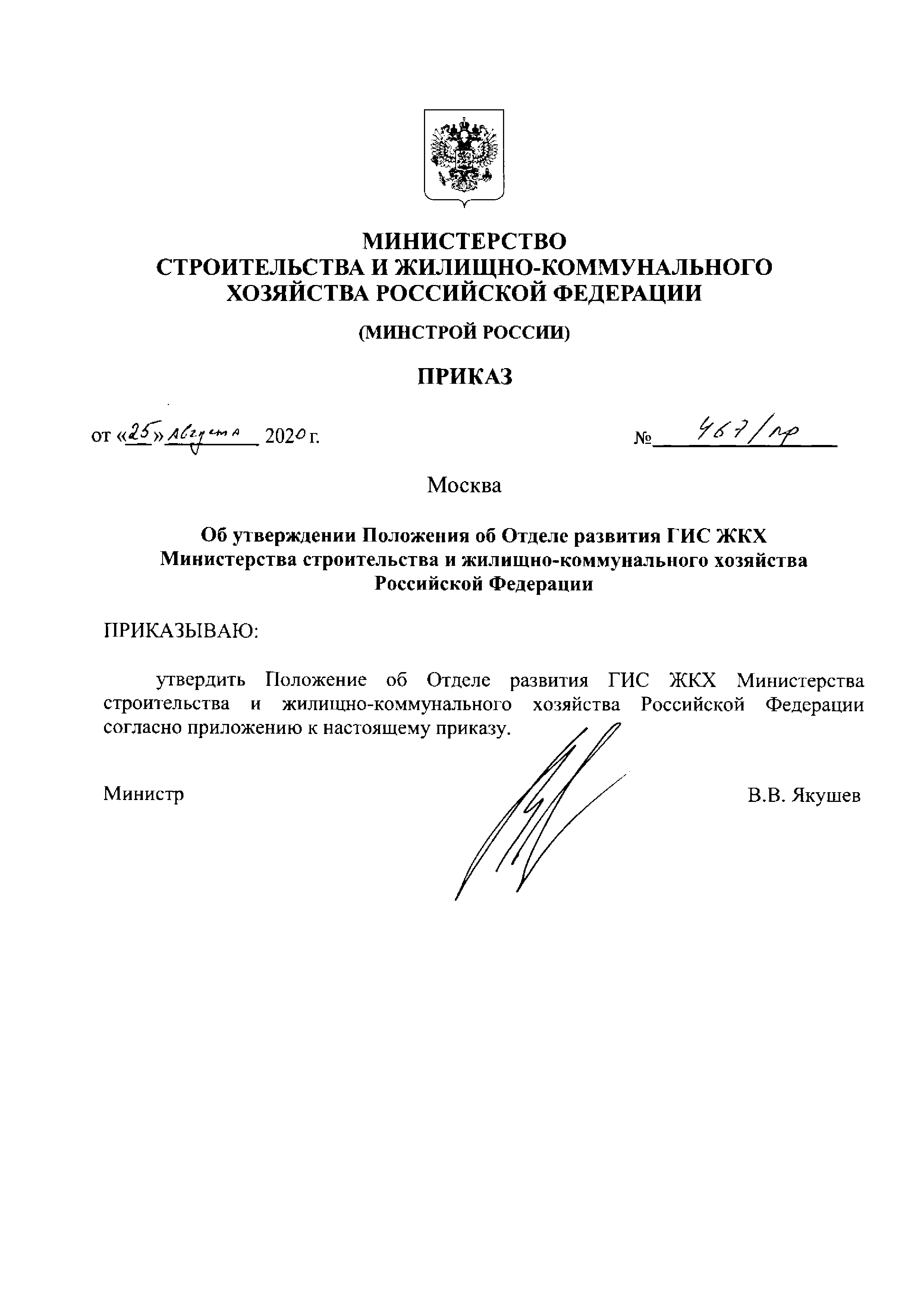 | Утверждён: | 25.08.2020 Министерство строительства и жилищно-коммунального хозяйства Российской Федерации (Минстрой России) (467/пр)
