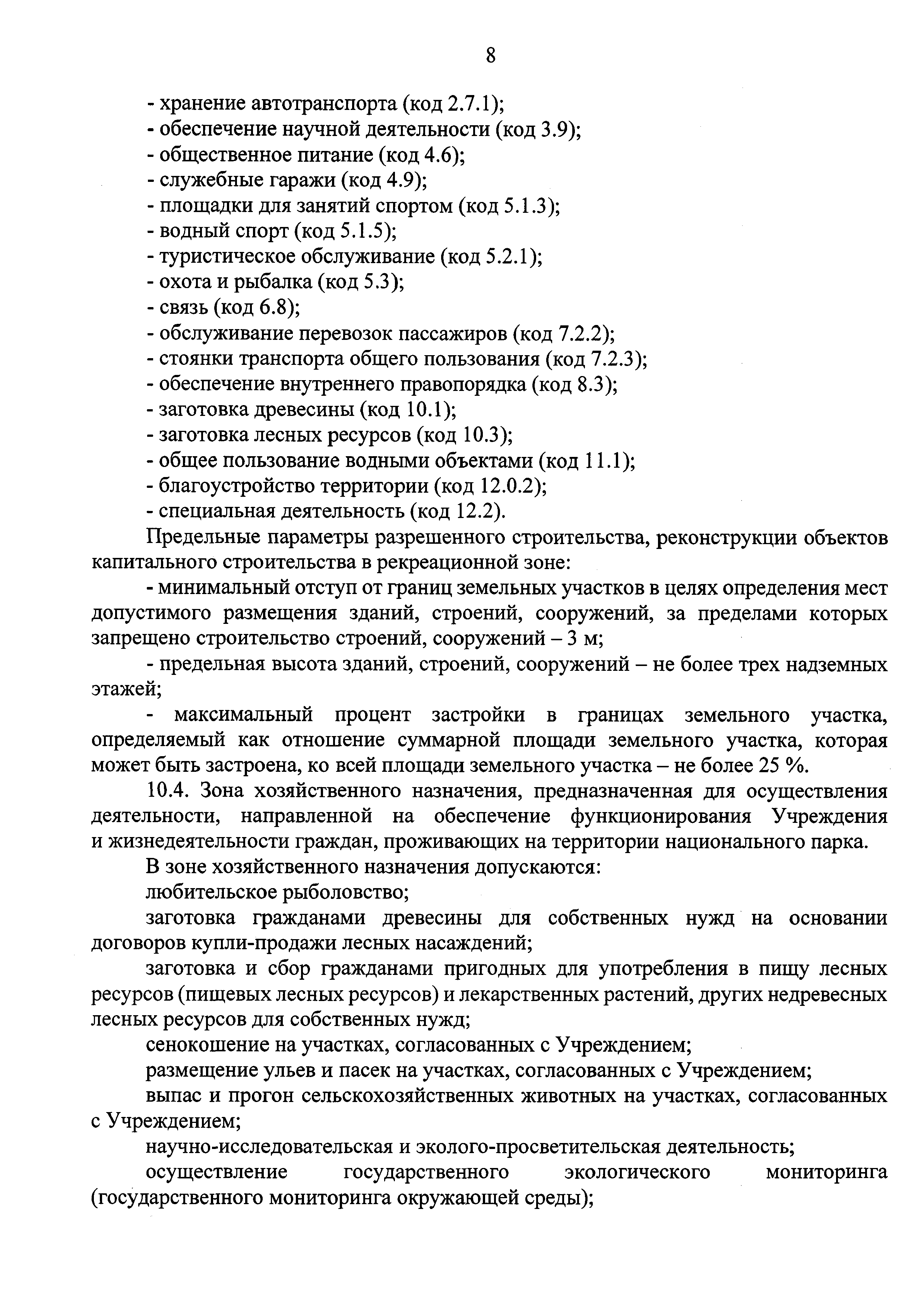 | Оглавление: | I. Общие положения II. Задачи национального парка III. Режим особой охраны территории национального парка IV. Государственный надзор в области охраны и использования территории национального парка Приложение 1. Сведения о границах национального парка "Зигальга" Приложение 2. Состав и описание границ функциональных зон национального парка "Зигальга" Приложение 3. Карта-схема функционального зонирования национального парка "Зигальга" |