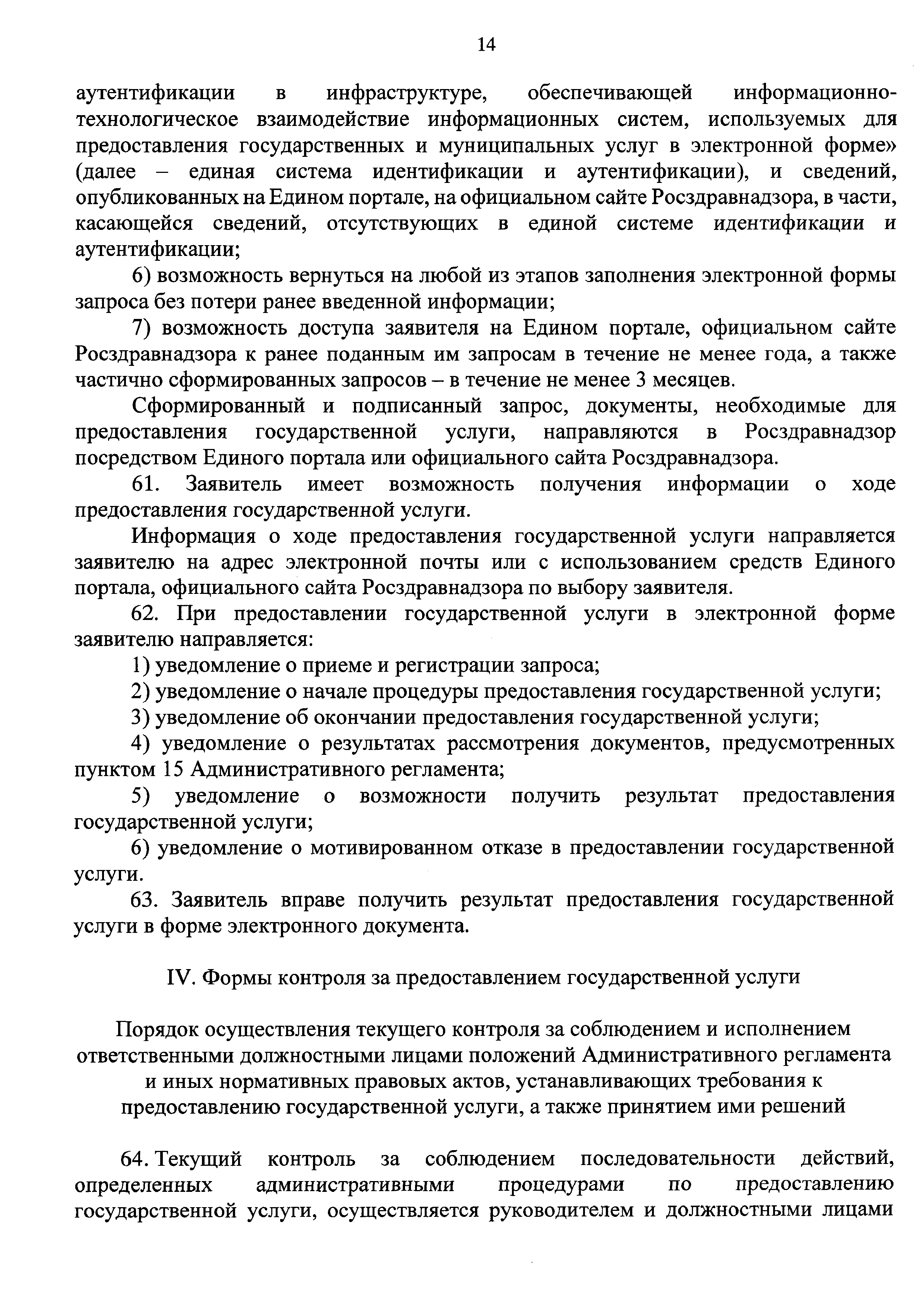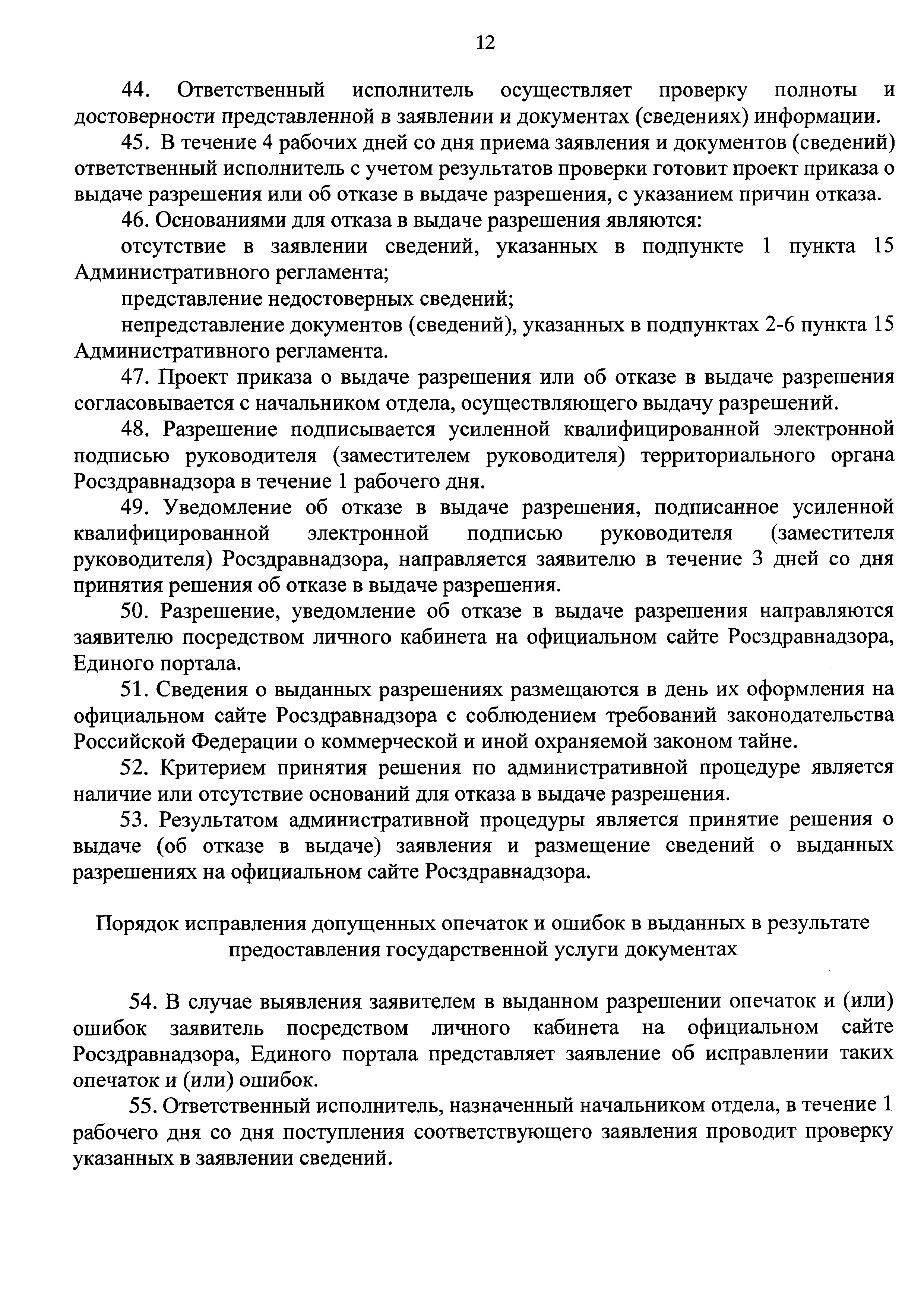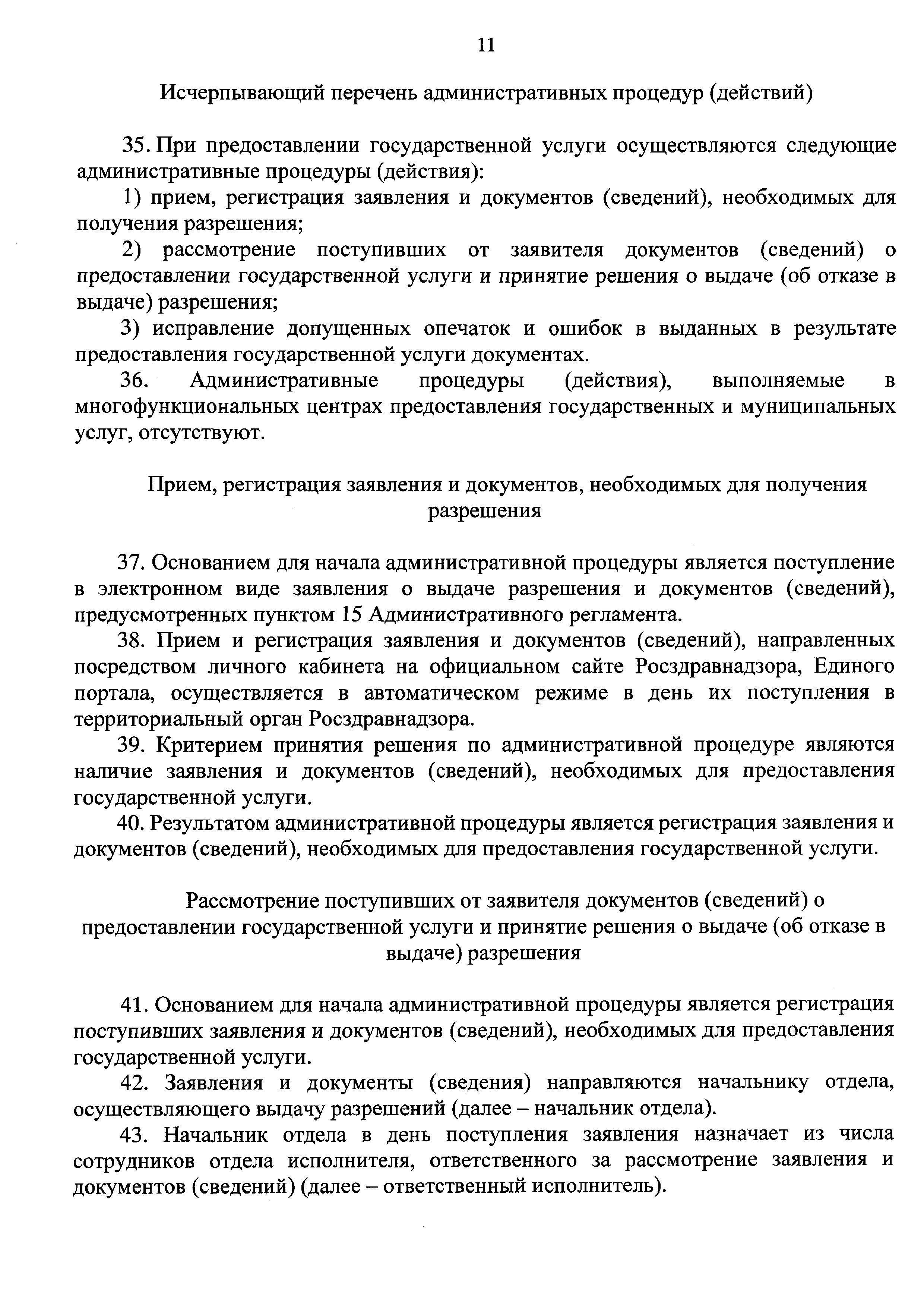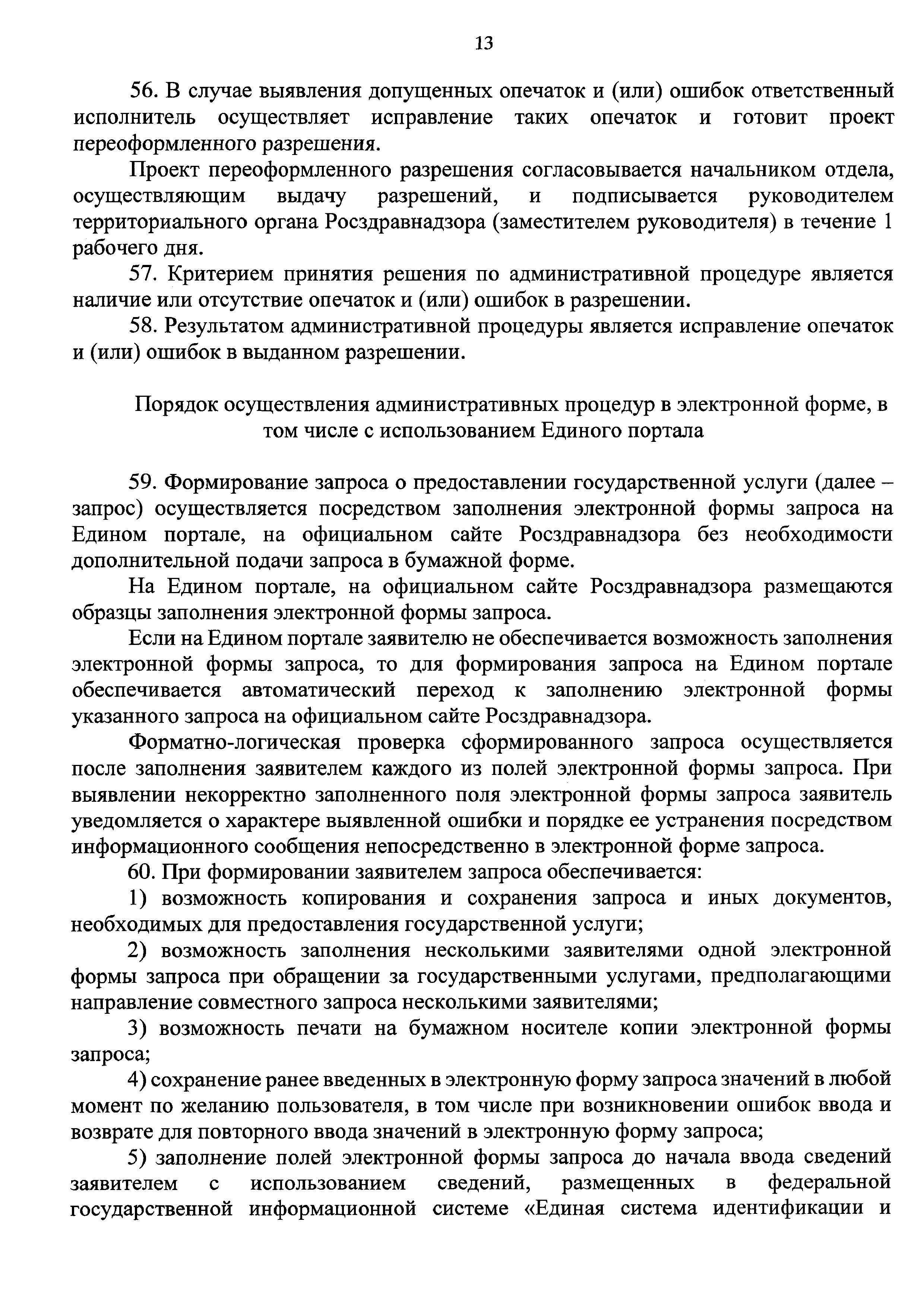 Административный регламент Федеральной службы по надзору в сфере здравоохранения по предоставлению государственной услуги по выдаче разрешения на осуществление розничной торговли лекарственными препаратами для медицинского применения дистанционным способом| Статус: | действует | | Название рус.: | Административный регламент Федеральной службы по надзору в сфере здравоохранения по предоставлению государственной услуги по выдаче разрешения на осуществление розничной торговли лекарственными препаратами для медицинского применения дистанционным способом | | Дата добавления в базу: | 01.01.2021 | | Дата актуализации: | 01.01.2021 | | Дата введения: | 08.09.2020 | | Область применения: | Административный регламент устанавливает сроки и последовательность административных процедур (действий) должностных лиц территориальных органов Федеральной службы по надзору в сфере здравоохранения по субъектам Российской Федерации при предоставлении государственной услуги, порядок взаимодействия между структурными подразделениями территориальных органов Росздравнадзора и их должностными лицами, а также взаимодействия территориальных органов Росздравнадзора с заявителями, иными органами государственной власти и органами местного самоуправления, организациями при предоставлении государственной услуги | | Оглавление: | I. Общие положения II. Стандарт предоставления государственной услуги III. Состав, последовательность и сроки выполнения административных процедур (действий), требования к порядку их выполнения, в том числе особенности выполнения административных процедур (действий) в электронной форме IV. Формы контроля за предоставлением государственной услуги V. Досудебный (внесудебный) порядок обжалования решений и действий (бездействия) территориального органа Росздравнадзора, а также его должностных лиц | | Утверждён: | 19.06.2020 Федеральная служба по надзору в сфере здравоохранения (5161)