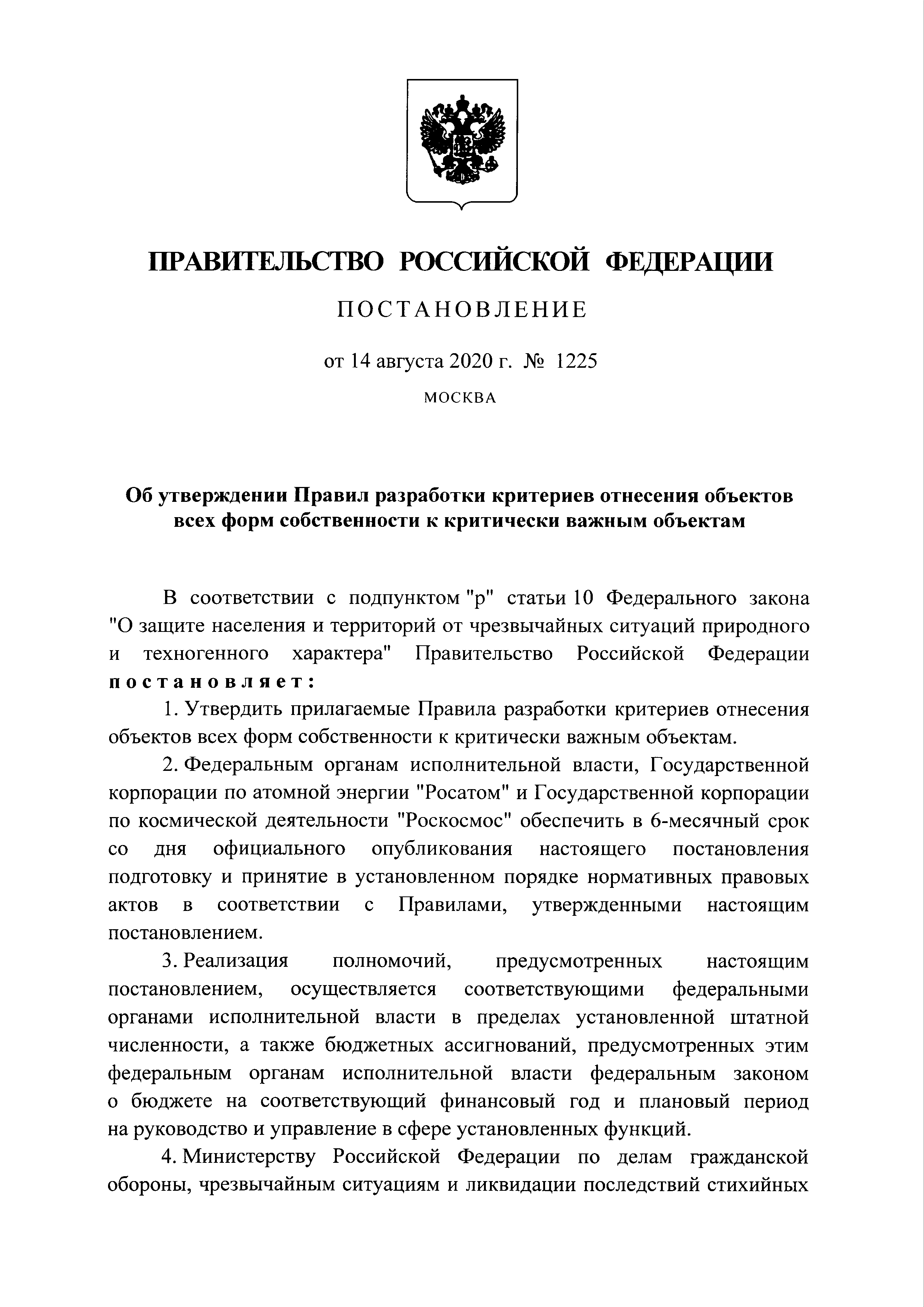| Утверждён: | 14.08.2020 Правительство Российской Федерации (1225)
