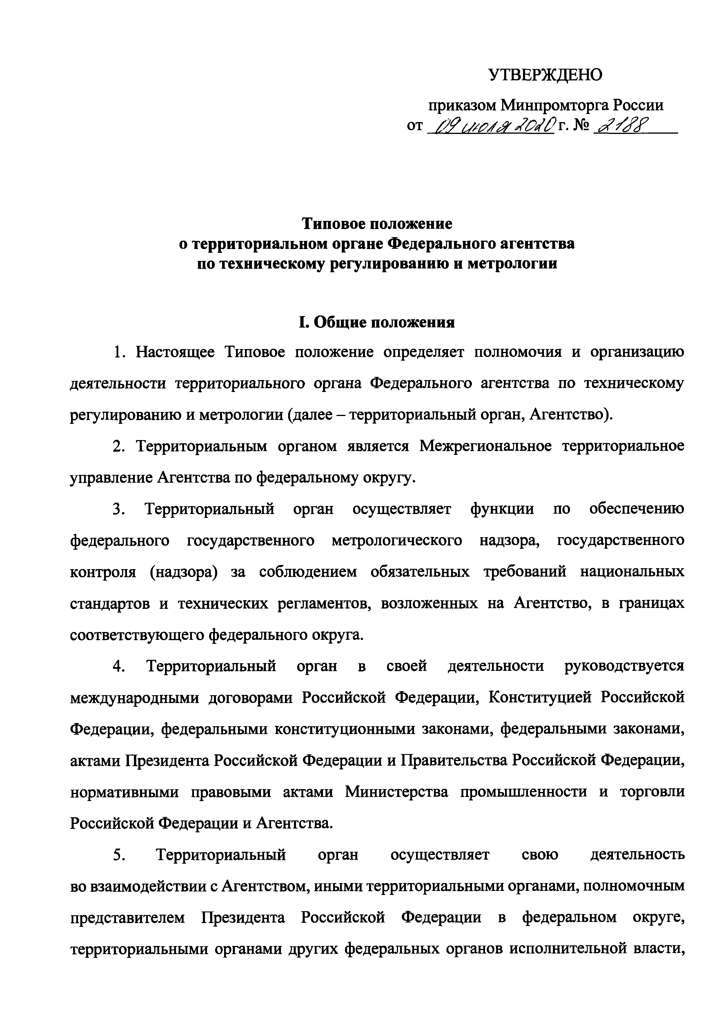 | Утверждён: | 09.07.2020 Министерство промышленности и торговли РФ (2188)