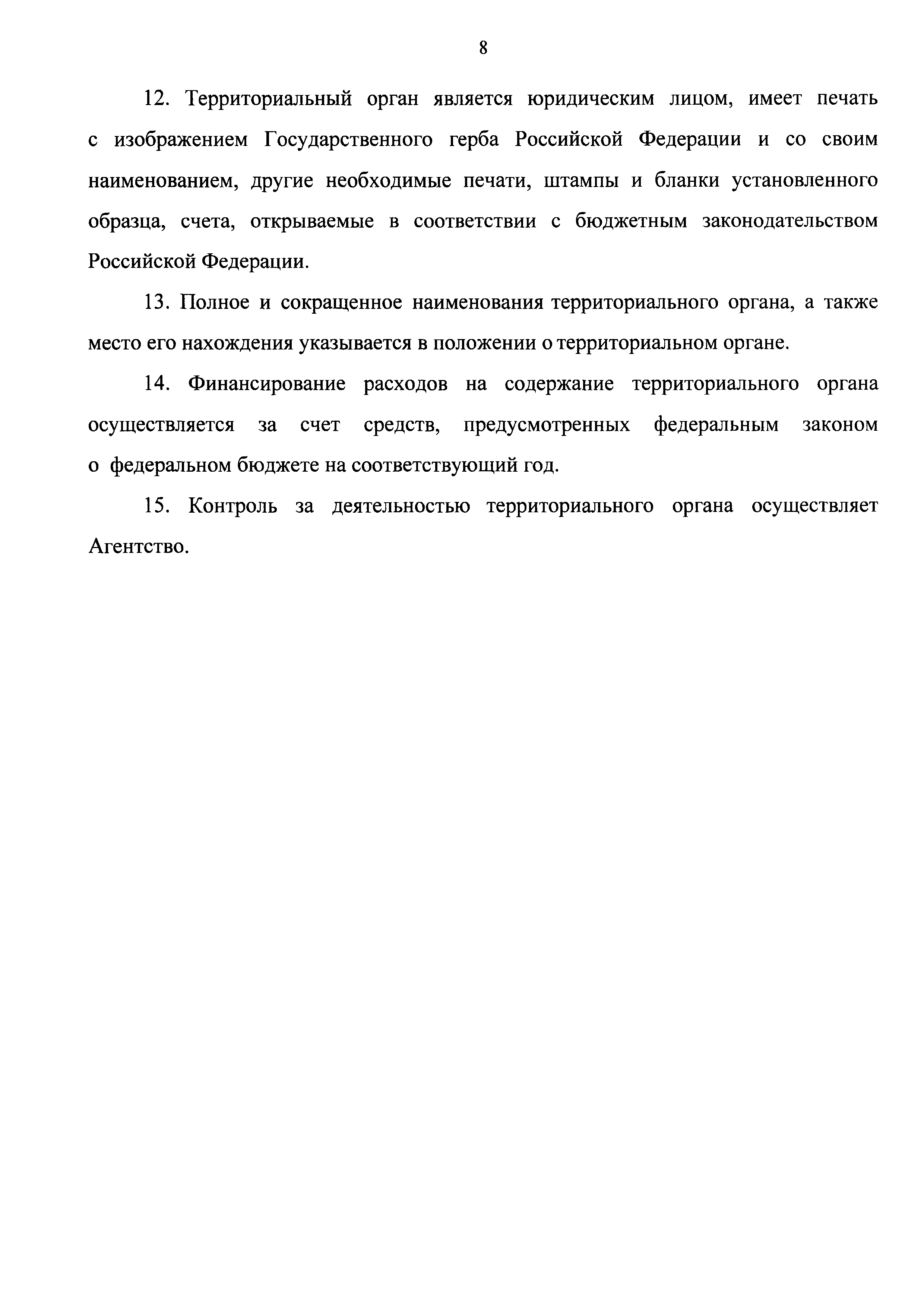 | Оглавление: | I. Общие положения II. Полномочия территориального органа III. Организация деятельности территориального органа |