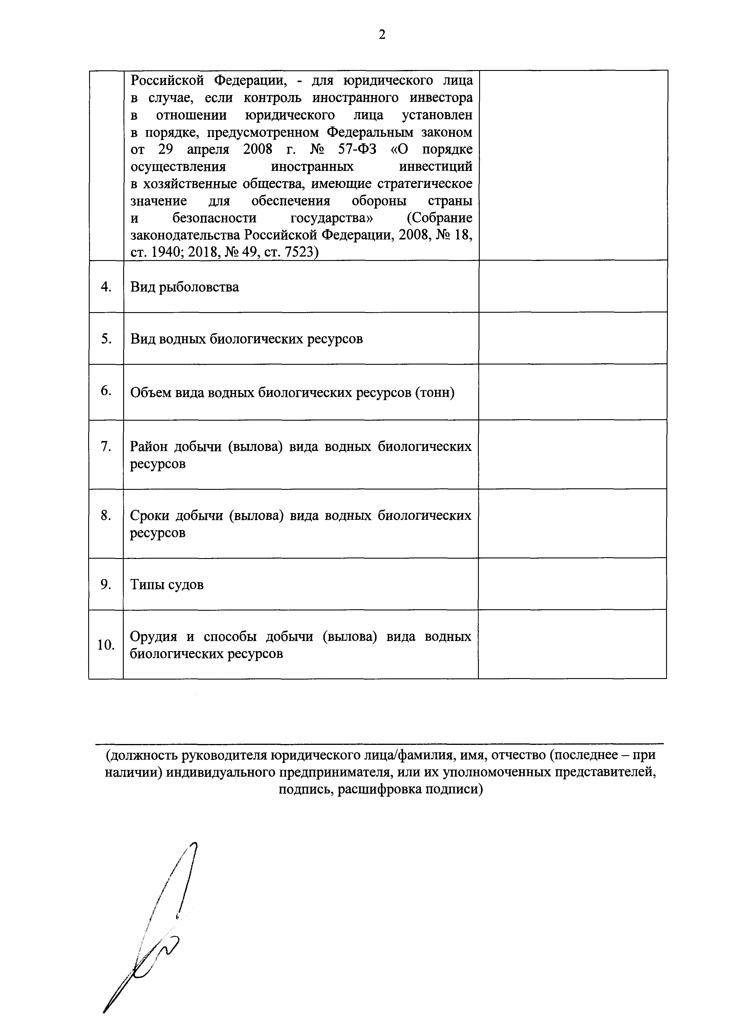 Скачать Форма заявления о заключении договора пользования водными биологическими ресурсами, общий допустимый улов которых не устанавливаетсяДата актуализации: 01.01.2021