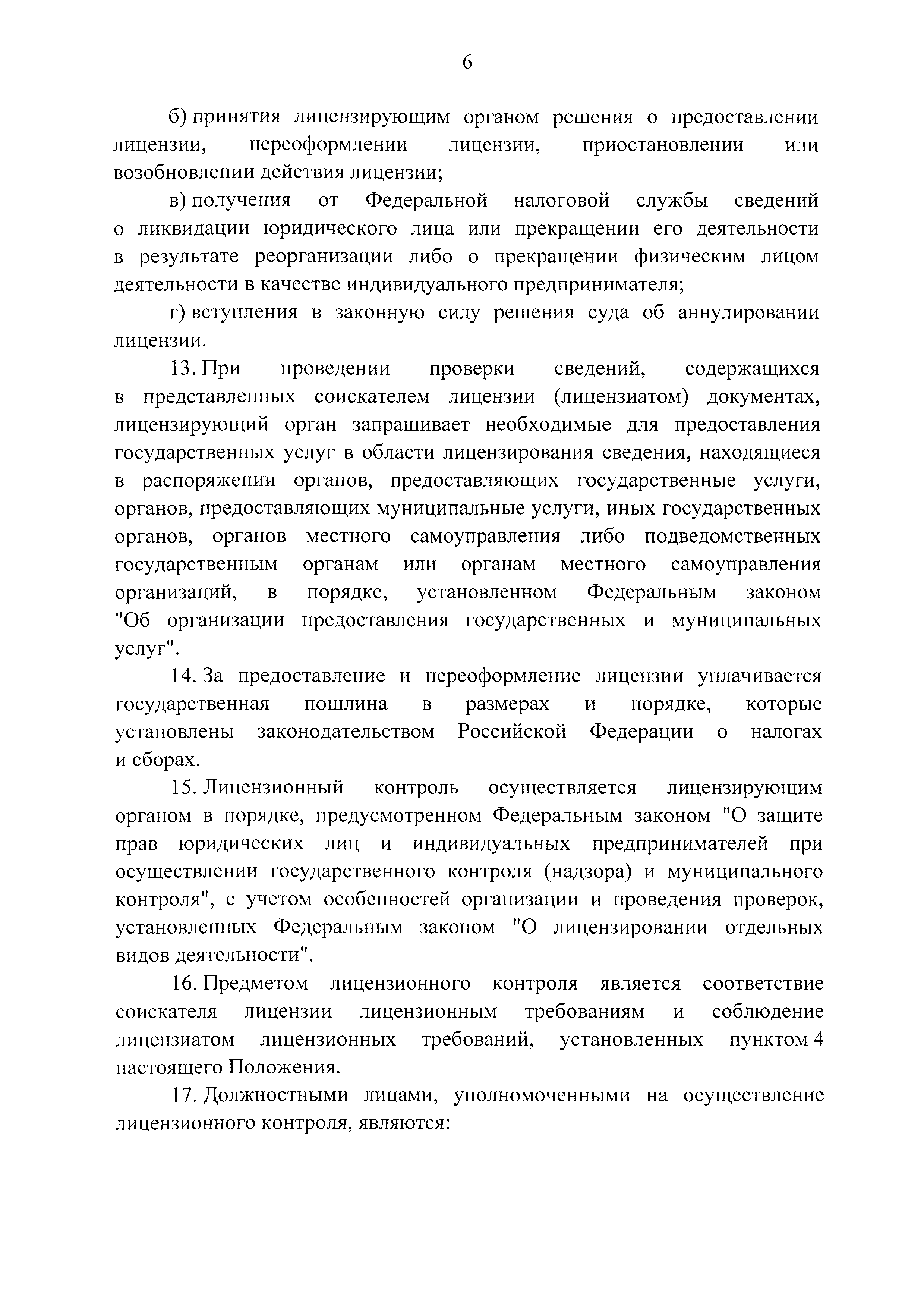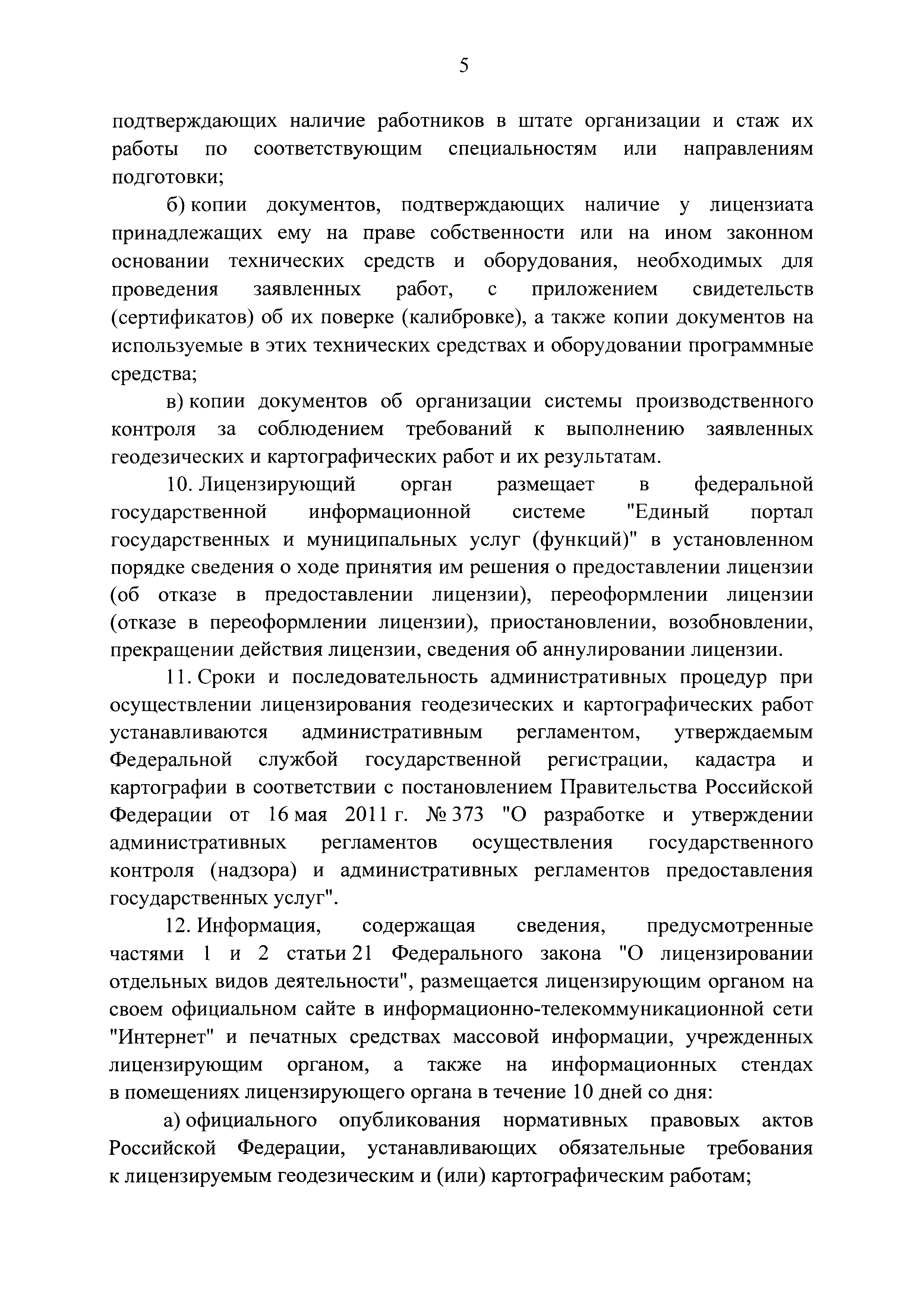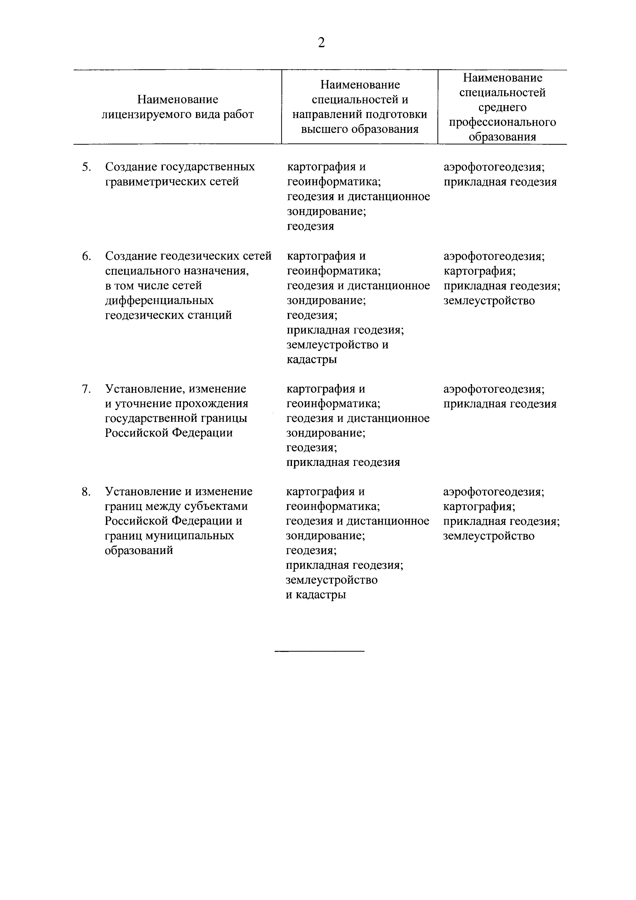 Положение о лицензировании геодезической и картографической деятельности| Статус: | принят | | Название рус.: | Положение о лицензировании геодезической и картографической деятельности | | Дата добавления в базу: | 01.01.2021 | | Дата актуализации: | 01.01.2021 | | Дата введения: | 01.01.2021 | | Область применения: | Положение определяет порядок лицензирования геодезической и картографической деятельности (за исключением указанных видов деятельности, осуществляемых личным составом Вооруженных Сил Российской Федерации в целях обеспечения обороны Российской Федерации, а также при осуществлении градостроительной и кадастровой деятельности, недропользования), в результате которой осуществляются создание (обновление) государственных топографических карт или государственных топографических планов, государственных геодезических сетей, государственных нивелирных сетей и государственных гравиметрических сетей, геодезических сетей специального назначения, в том числе сетей дифференциальных геодезических станций, определение параметров фигуры Земли и гравитационного поля в этих целях, установление, изменение и уточнение прохождения государственной границы Российской Федерации, установление и изменение границ между субъектами Российской Федерации и границ муниципальных образований, а также порядок организации и осуществления лицензионного контроля в указанной сфере деятельности | | Оглавление: | Приложение. Перечень выполняемых работ, составляющих геодезическую и картографическую деятельность, подлежащих лицензированию, а также необходимых для их выполнения специальностей или направлений подготовки работников юридического лица(индивидуального предпринимателя), обратившегося в лицензирующий орган с заявлением о предоставлении лицензии, или работников юридического лица (индивидуального предпринимателя), имеющего лицензию | | Утверждён: | 28.07.2020 Правительство Российской Федерации (1126)