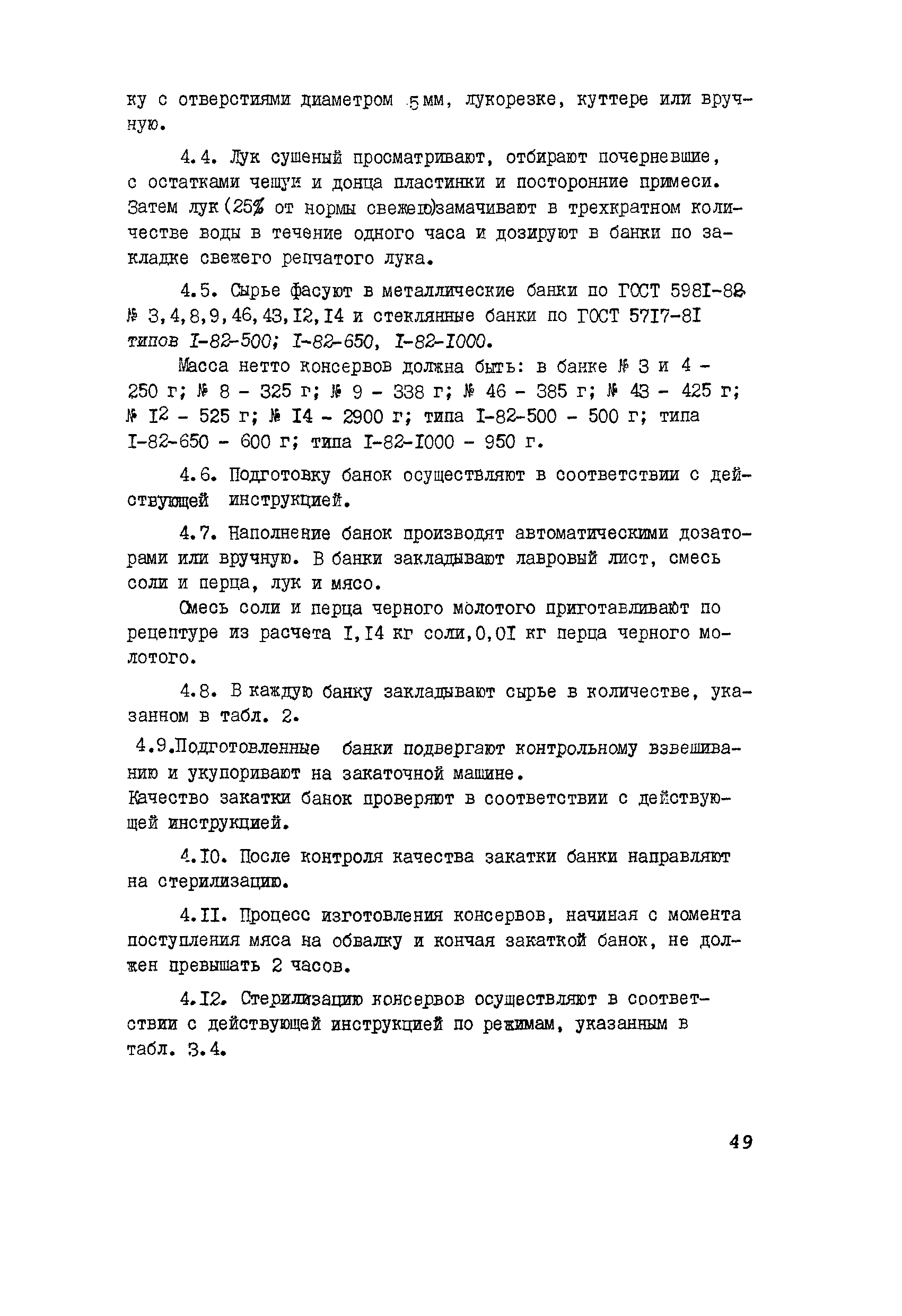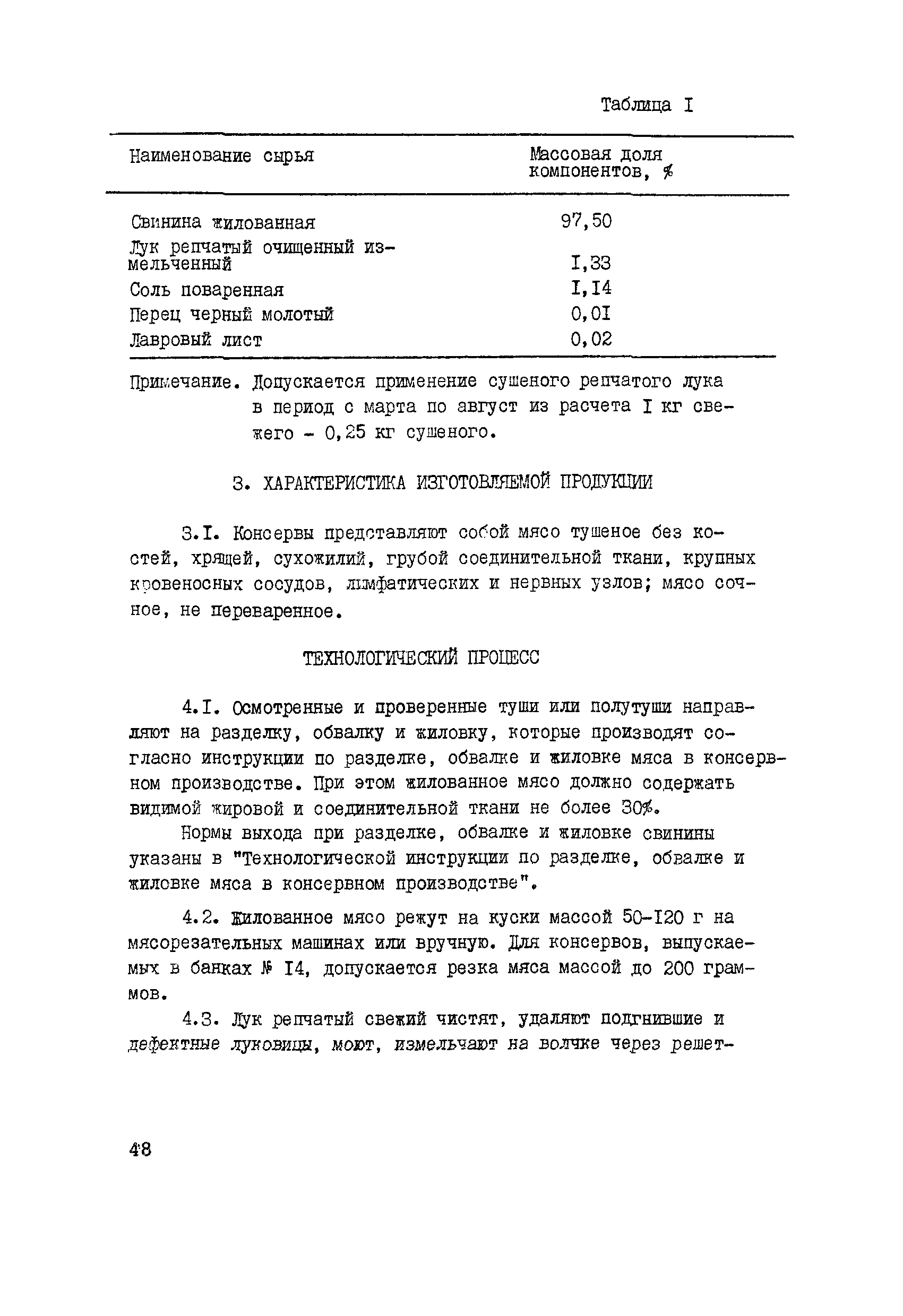 Технологическая инструкция по производству мясных консервов "Свинина тушеная"