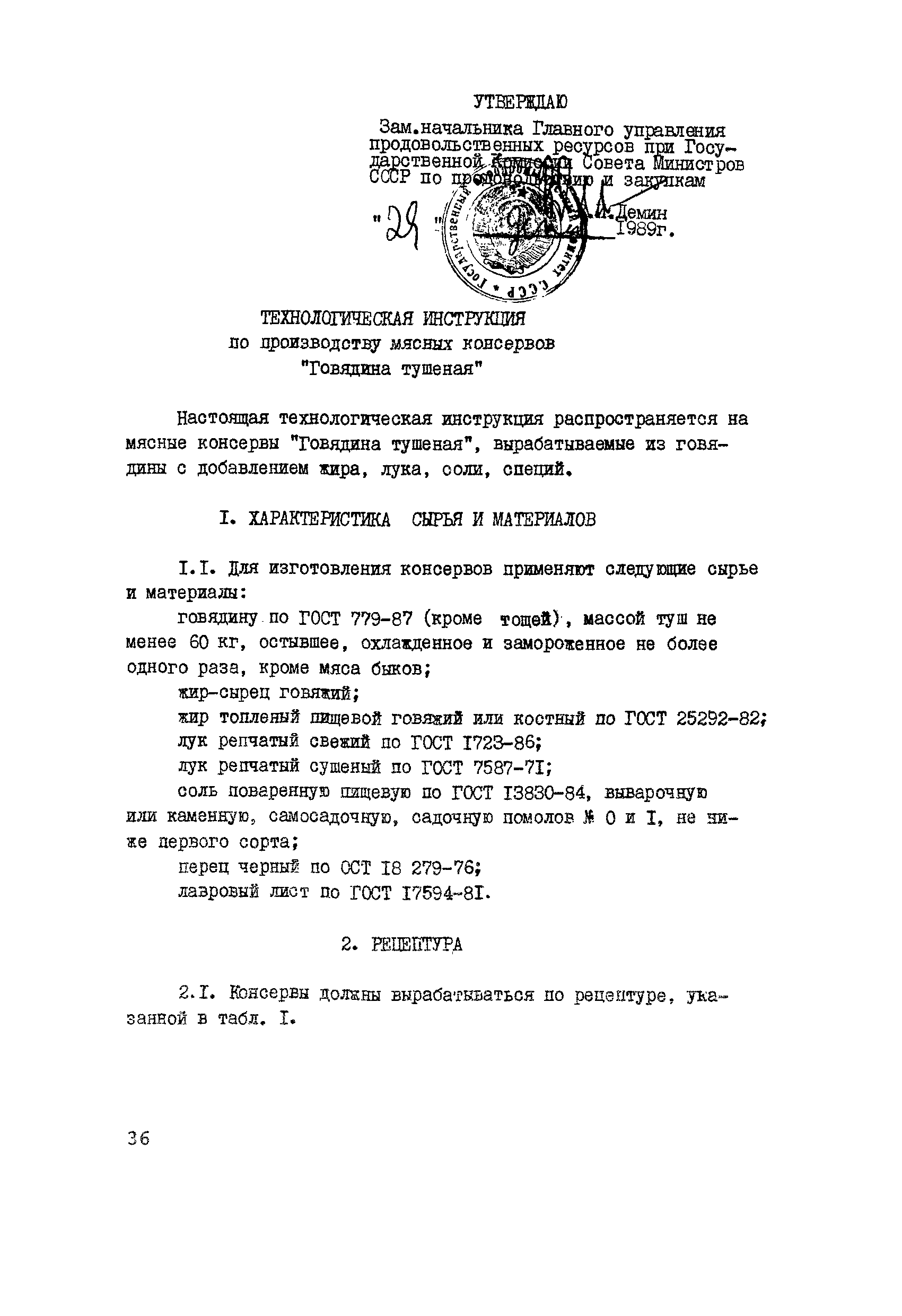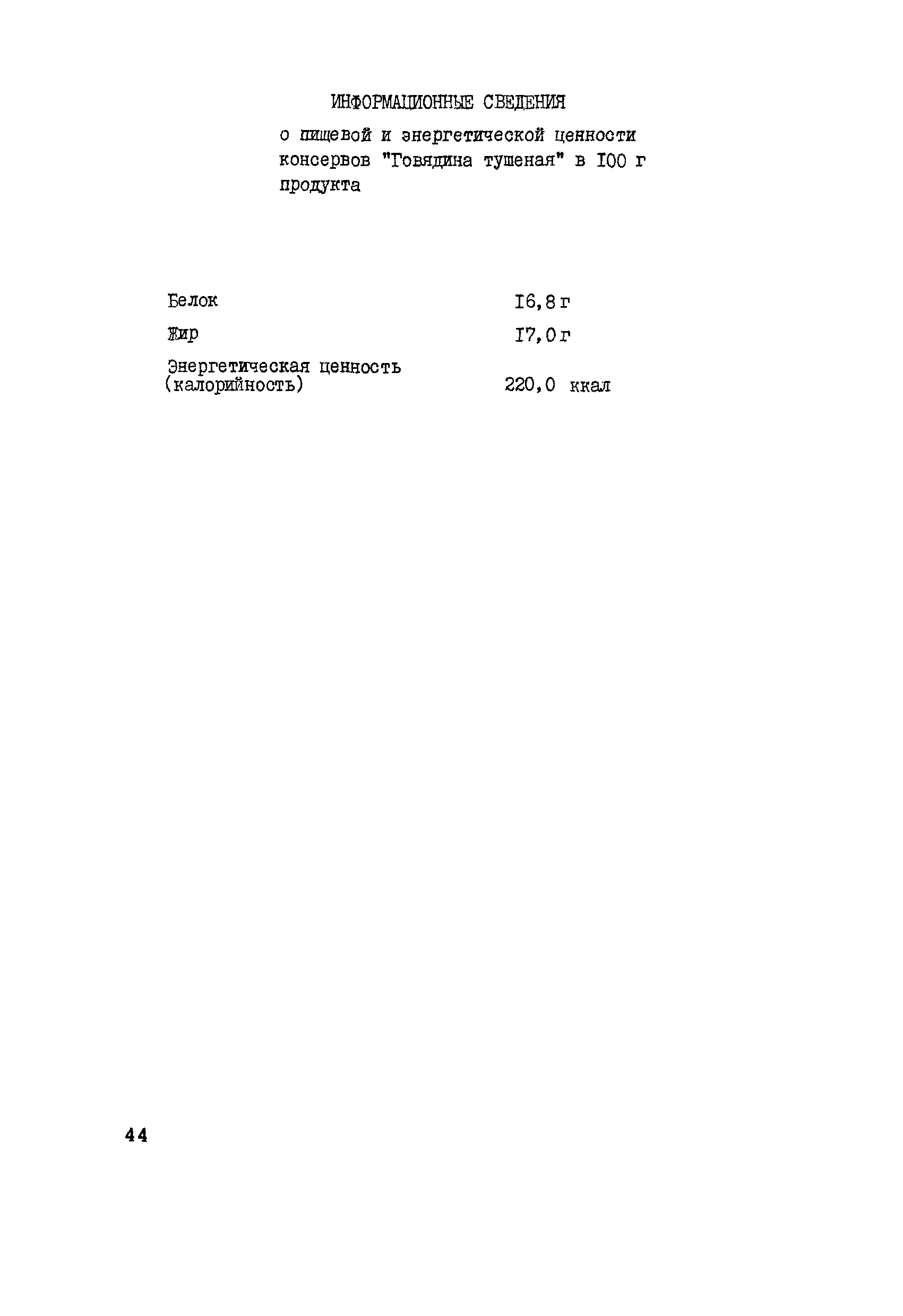Скачать Технологическая инструкция по производству мясных консервов Говядина тушеная