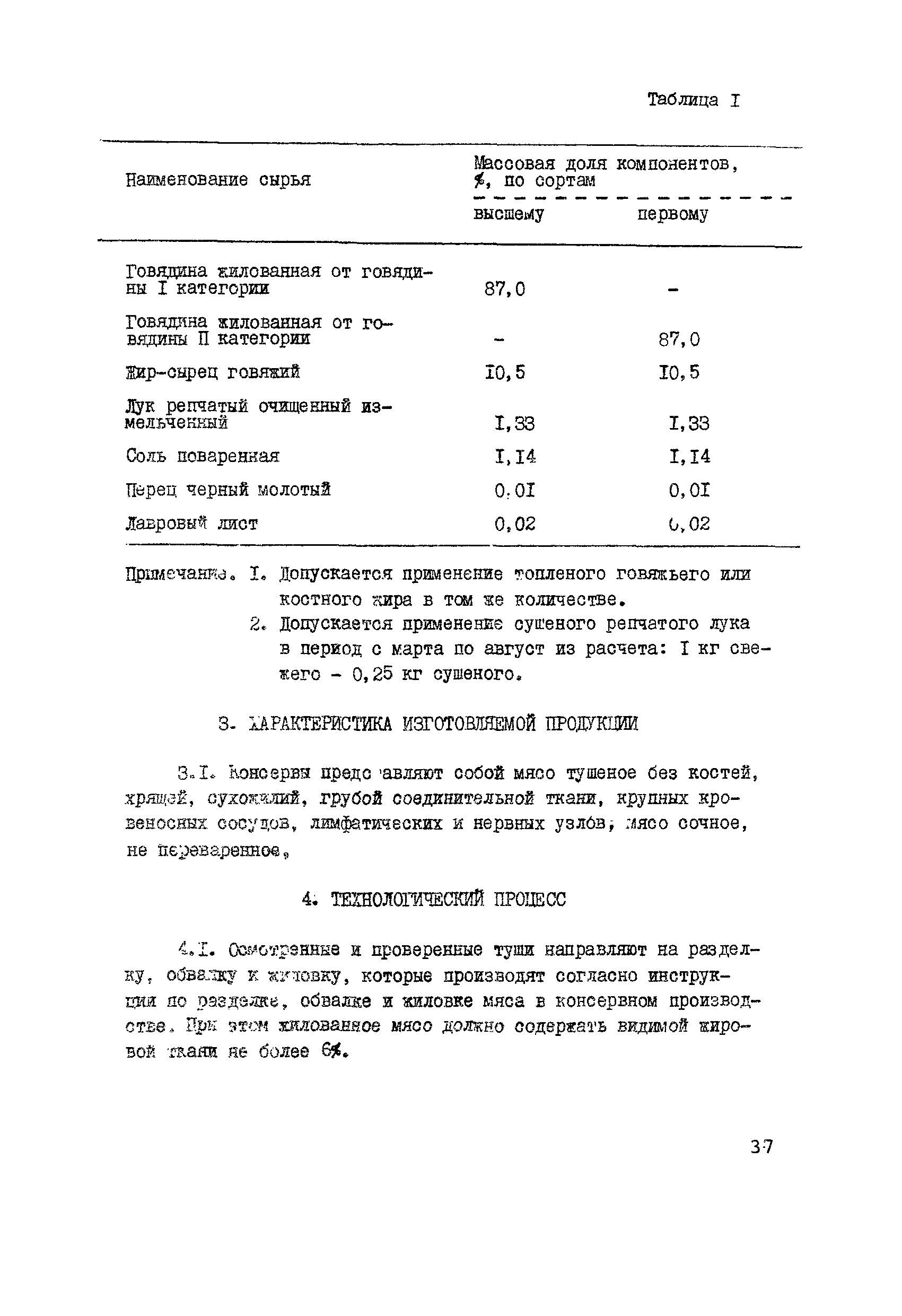 Технологическая инструкция распространяется на мясные консервы "Говядина тушеная", вырабатываемые из говядины с добавлением жира, лука, соли, специй.