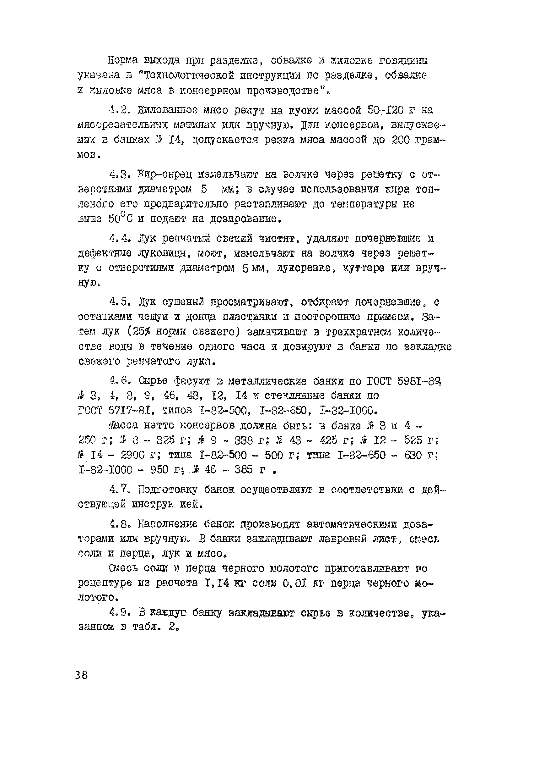 Технологическая инструкция по производству мясных консервов "Говядина тушеная"