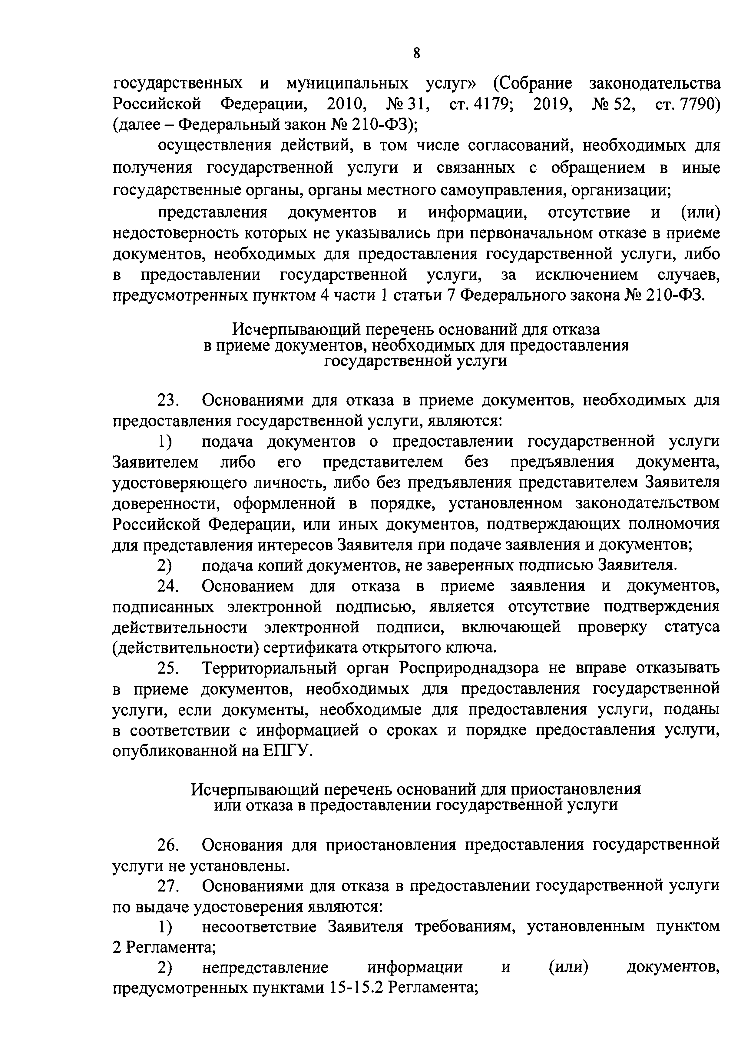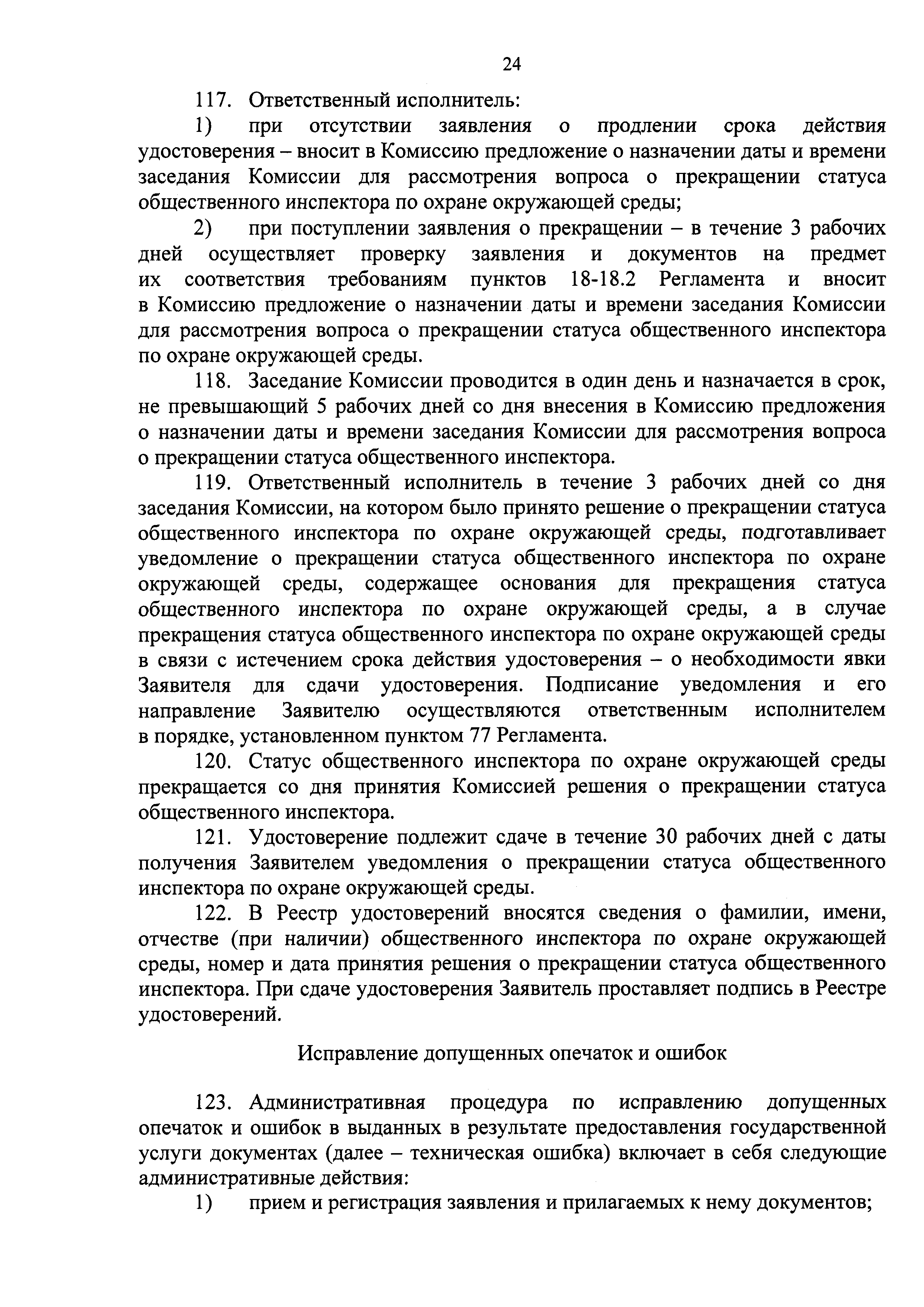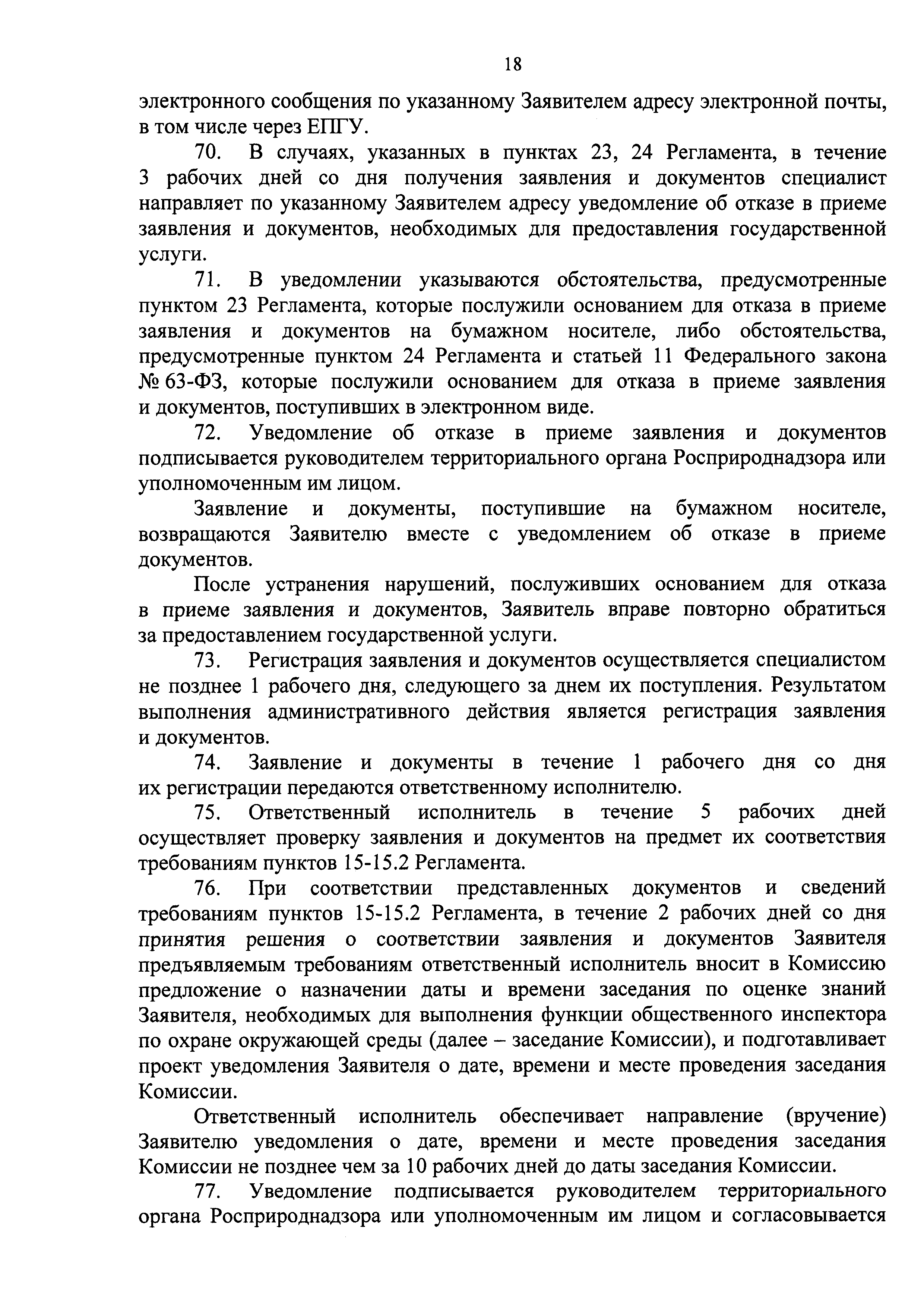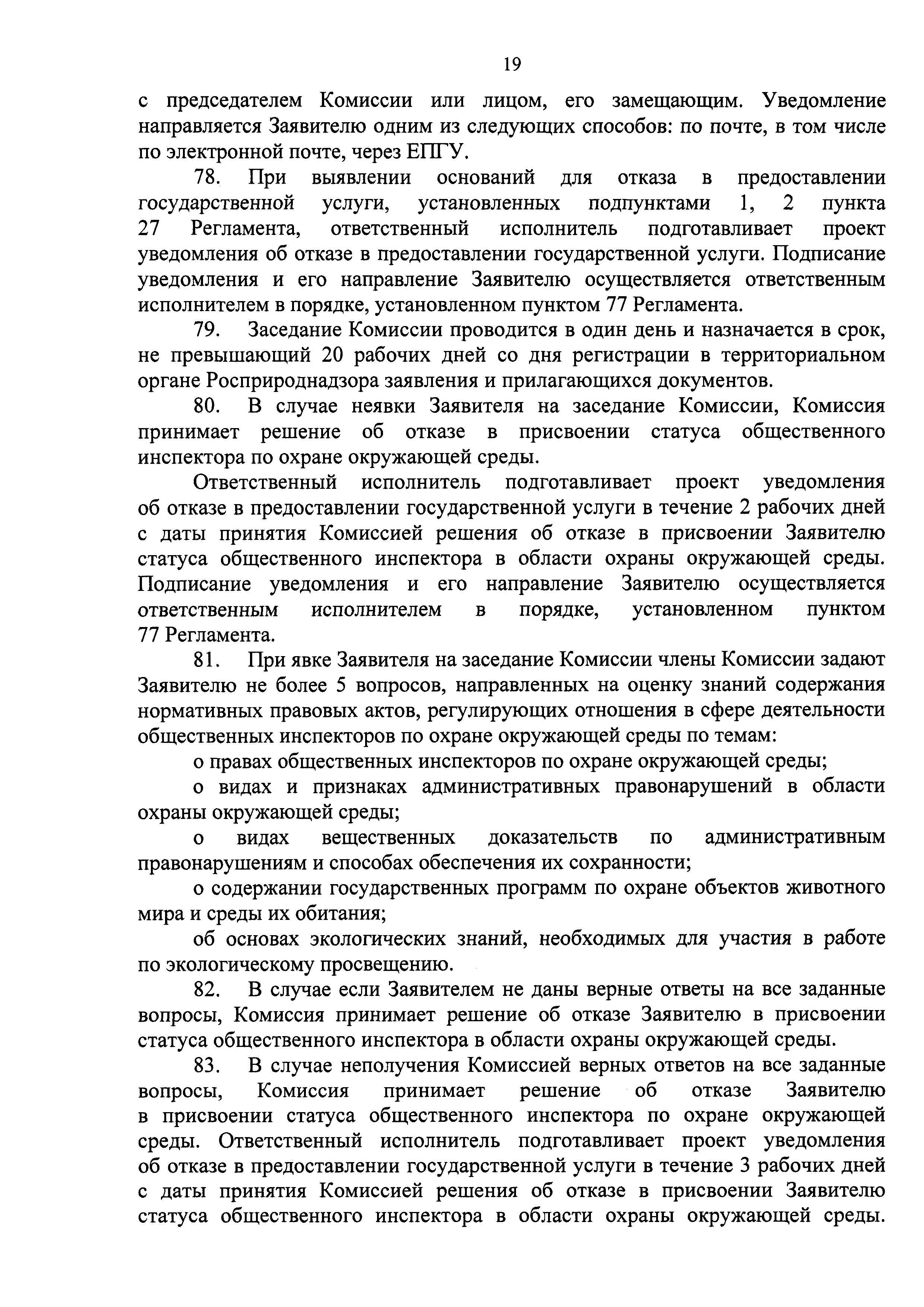 | Область применения: | Административный регламент Федеральной службы по надзору в сфере природопользования предоставления государственной услуги по выдаче удостоверений общественного инспектора по охране окружающей среды определяет сроки, последовательность административных процедур (действий) и принятия решений территориальными органами Федеральной службы по надзору в сфере природопользования, а также порядок взаимодействия между структурными подразделениями, должностными лицами территориального органа Росприроднадзора и заявителями при предоставлении государственной услуги по выдаче удостоверений общественного инспектора по охране окружающей среды. |