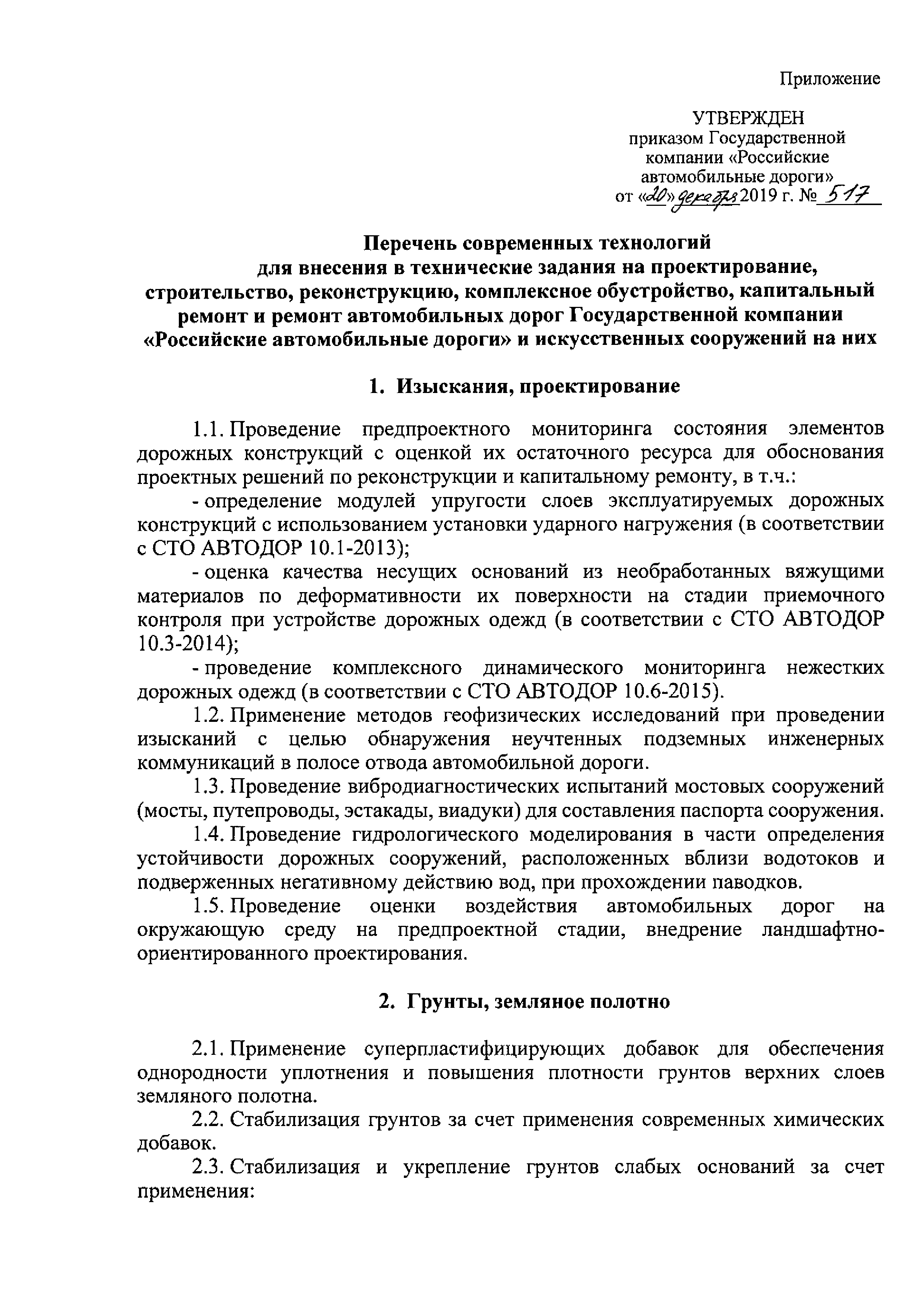 | Утверждён: | 20.12.2019 Государственная компания АВТОДОР (517) |