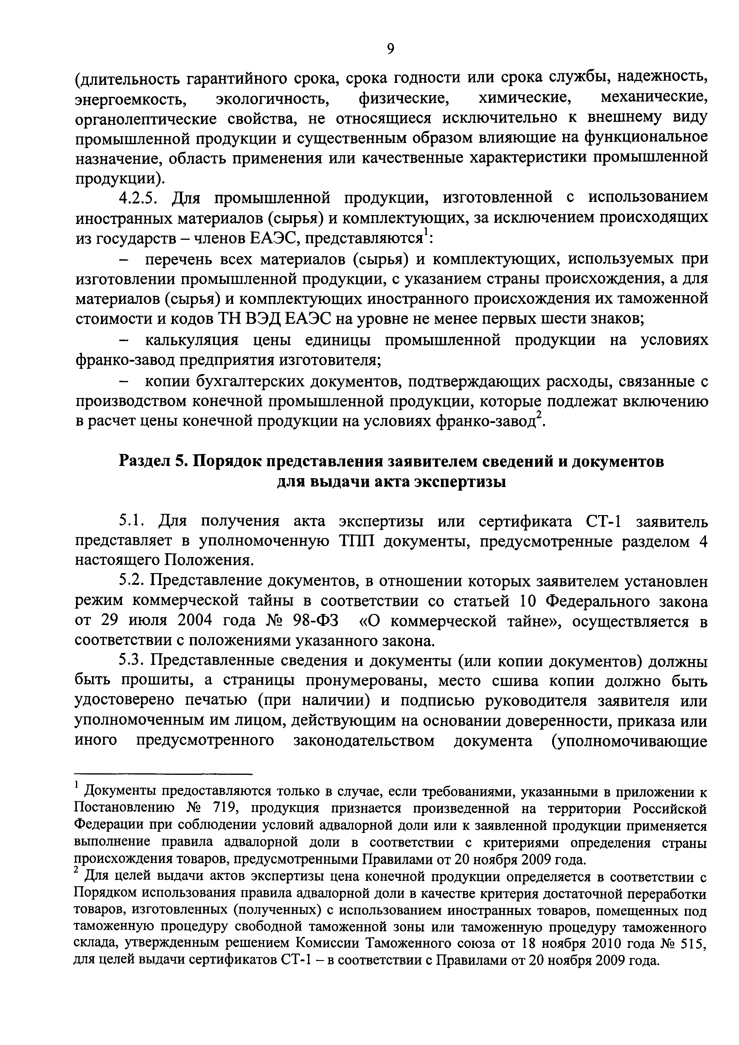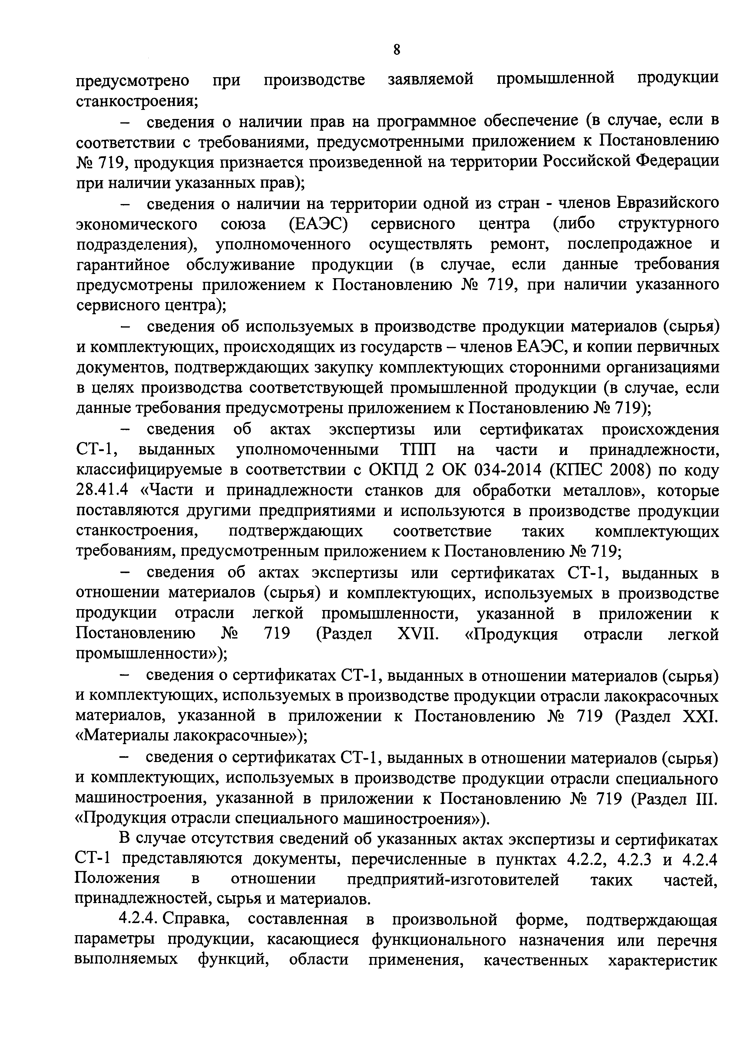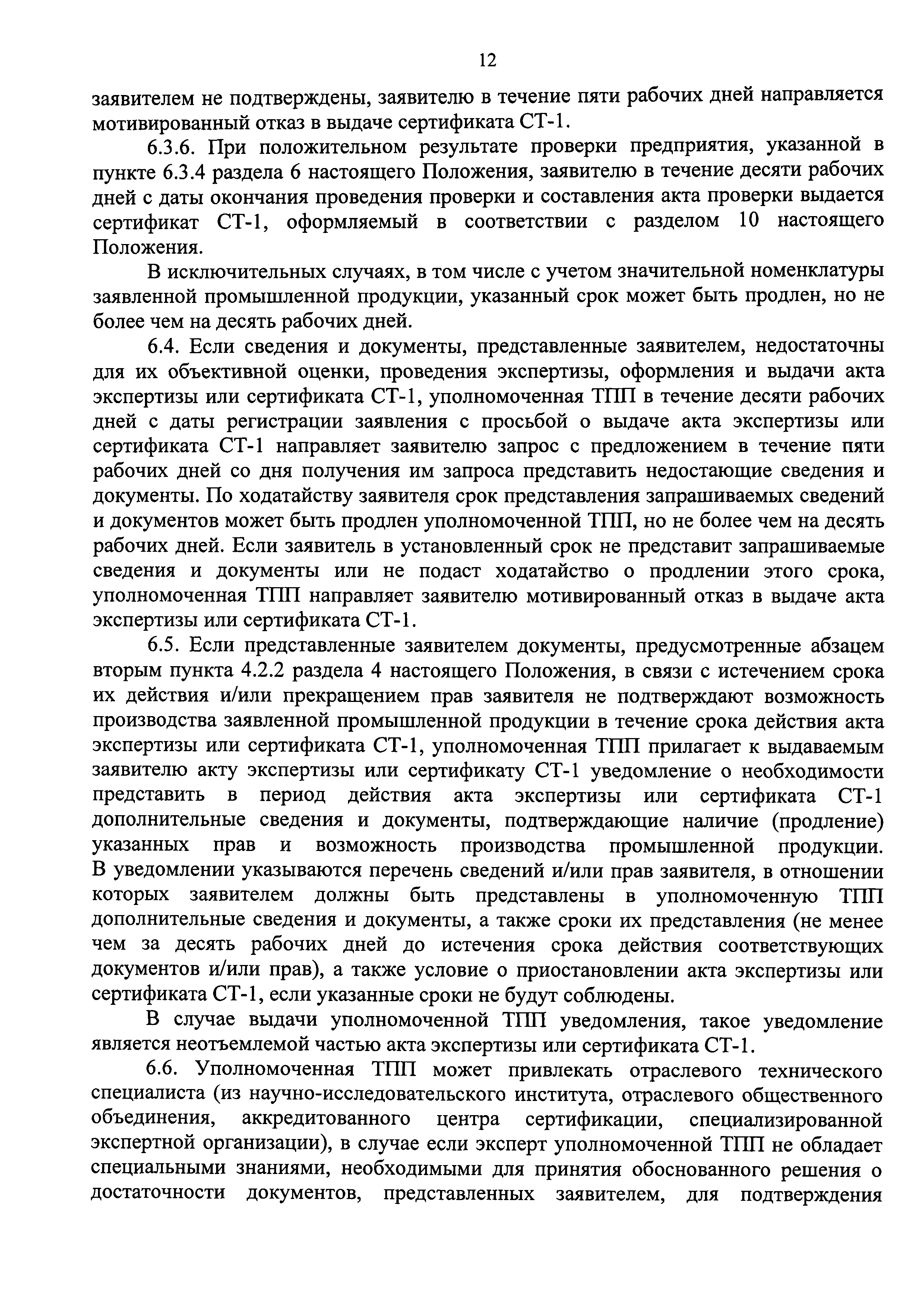 | Оглавление: | Раздел 1. Основные понятия, используемые в Положении Раздел 2. Общие положения Раздел 3. Условия и особенности выдачи актов экспертизы и сертификатов СТ-1 Раздел 4. Документы, необходимые для получения акта экспертизы или сертификата СТ-1 Раздел 5. Порядок представления заявителем сведений и документов для выдачи акта экспертизы Раздел 6. Порядок принятия и рассмотрения документов для выдачи актов экспертизы или сертификатов СТ-1 Раздел 7. Порядок проведения выездной проверки Раздел 8. Приостановление, возобновление или отмена действия акта экспертизы или сертификата СТ-1 Раздел 9. Форма и порядок заполнения акта экспертизы Раздел 10. Форма и порядок заполнения сертификата СТ-1 Приложение 1. Заявление на получение акта экспертизы о соответствии производимой промышленной продукции требованиям, предъявляемым в целях ее отнесения к продукции, произведенной на территории Российской Федерации Приложение. Опись документов на получение акта экспертизы о соответствии производимой промышленной продукции требованиям, предъявляемым в целях ее отнесения к продукции, произведенной на территории Российской Федерации Приложение 2. Заявление на получение сертификата о происхождении товара формы СТ-1, в соответствии с которым Российская Федерация является страной происхождения товара (промышленной продукции) Приложение. Опись документов на получение сертификата о происхождении товара формы СТ-1, в соответствии с которым Российская Федерация является страной происхождения товара (промышленной продукции) Приложение 3. Акт проверки Приложение 4. Акт экспертизы о соответствии производимой промышленной продукции требованиям, предъявляемым в целях ее отнесения к продукции, произведенной на территории Российской Федерации Приложение 5. Экспертное заключение к сертификату о происхождении товара формы СТ-1, в соответствии с которым Российская Федерация является страной происхождения товара (промышленной продукции) Приложение 6. Справка о деятельности предприятия |
