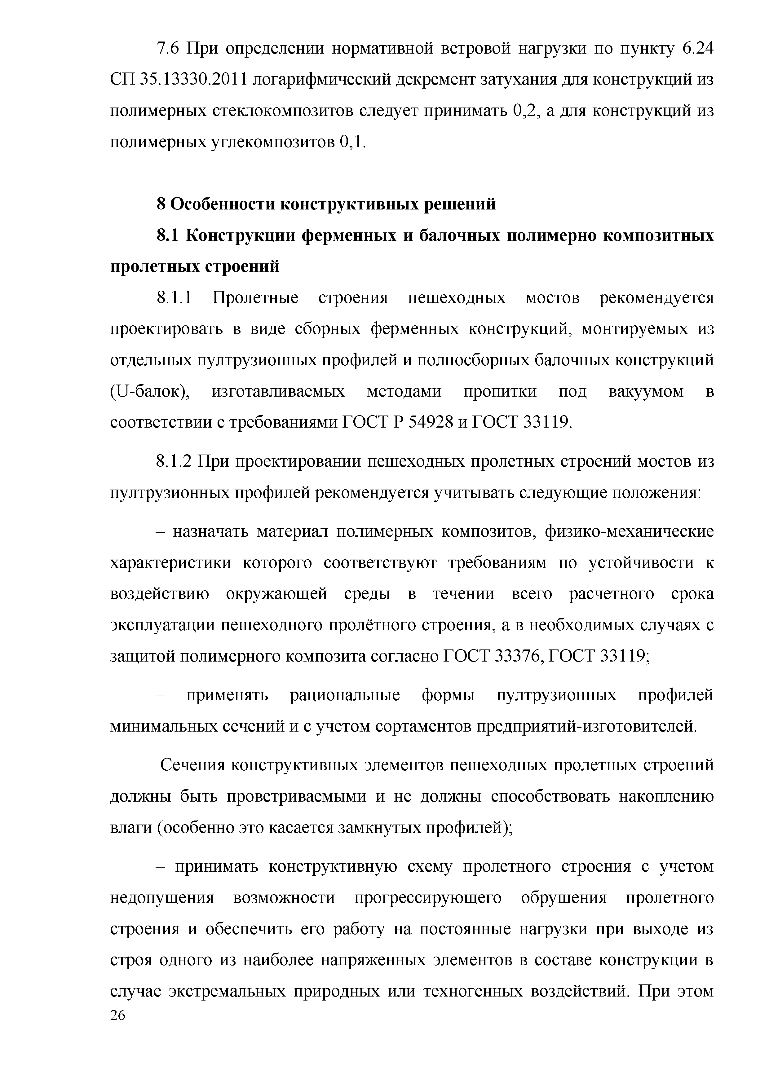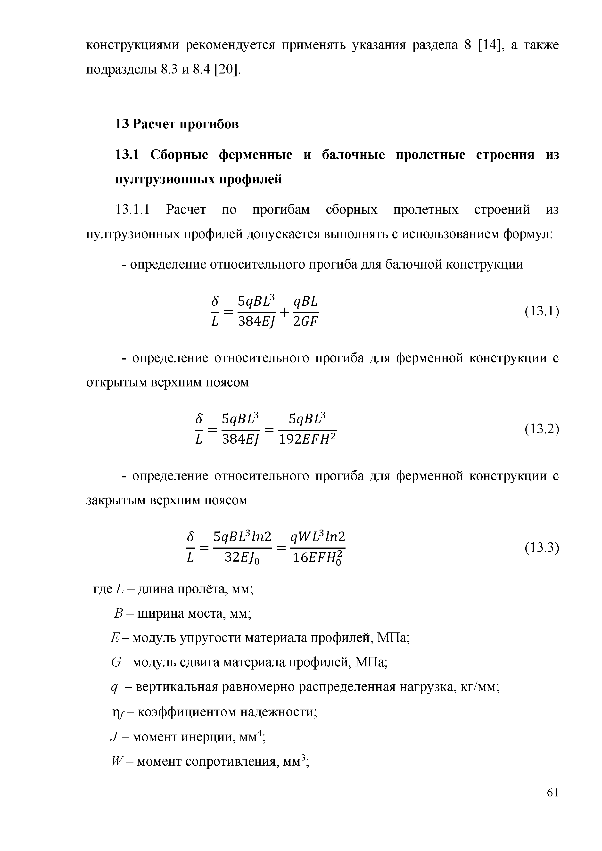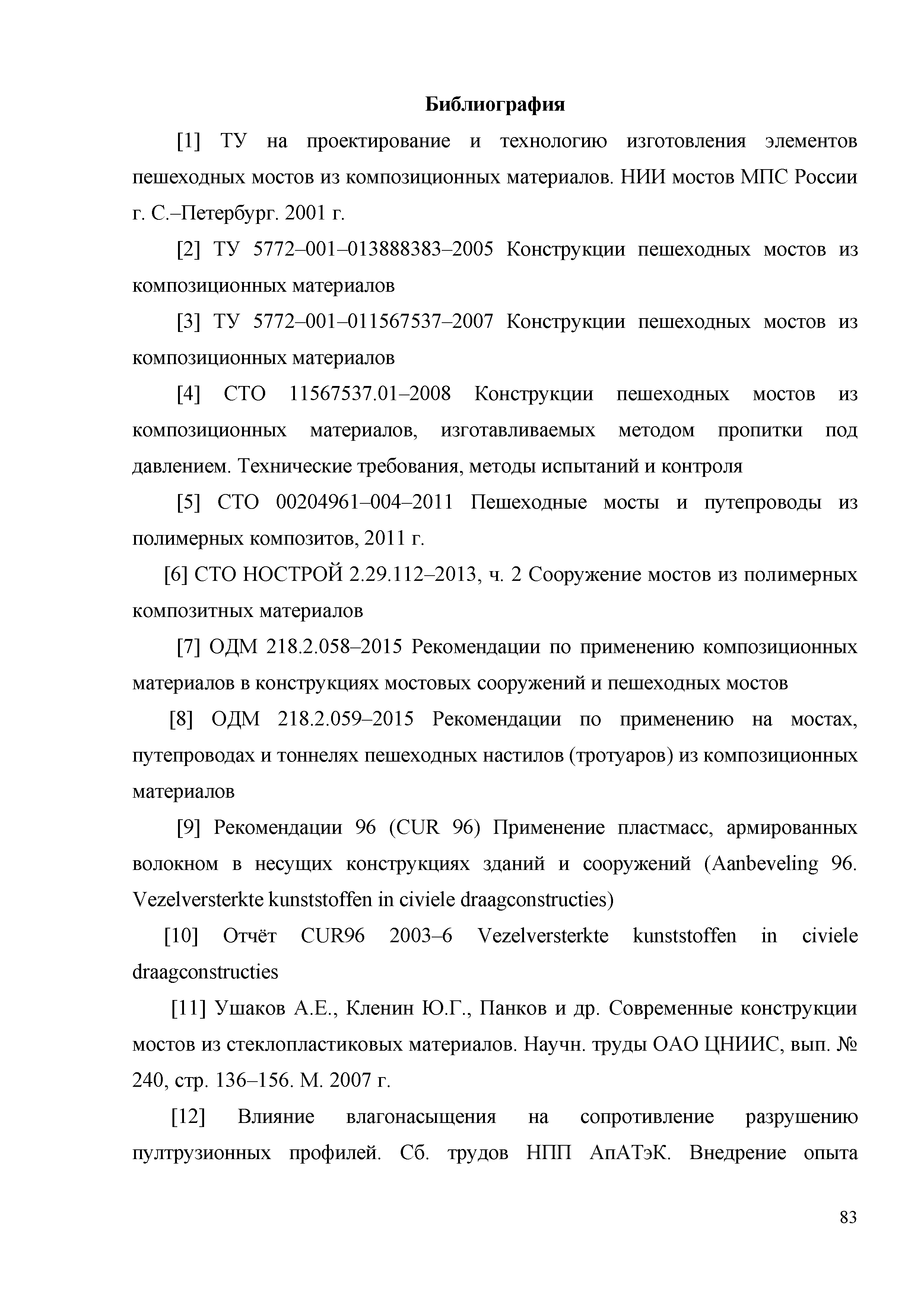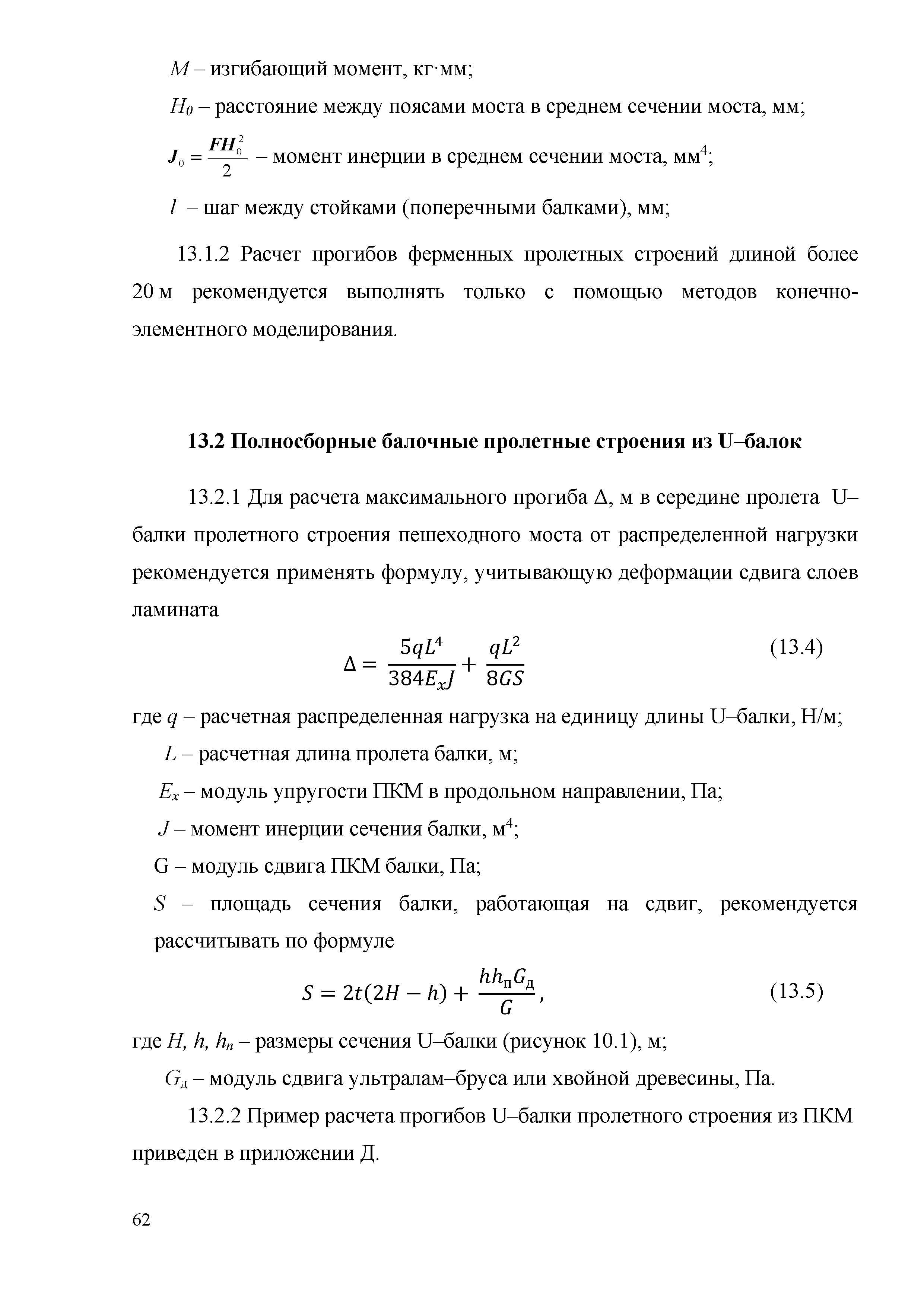 | Область применения: | Методические рекомендации предназначены для специалистов и руководителей проектных учреждений и служб заказчика (инвестора) и других заинтересованных организаций, с целью обеспечения их проектными материалами, которые позволяют разрабатывать и применять высокоэффективные технические решения мостовых конструкций, обеспечивающие качество и конкурентоспособность строящихся объектов. Методические рекомендации следует использовать при расчетах для проектирования полимерных композитных пролетных строений пешеходных мостов. |