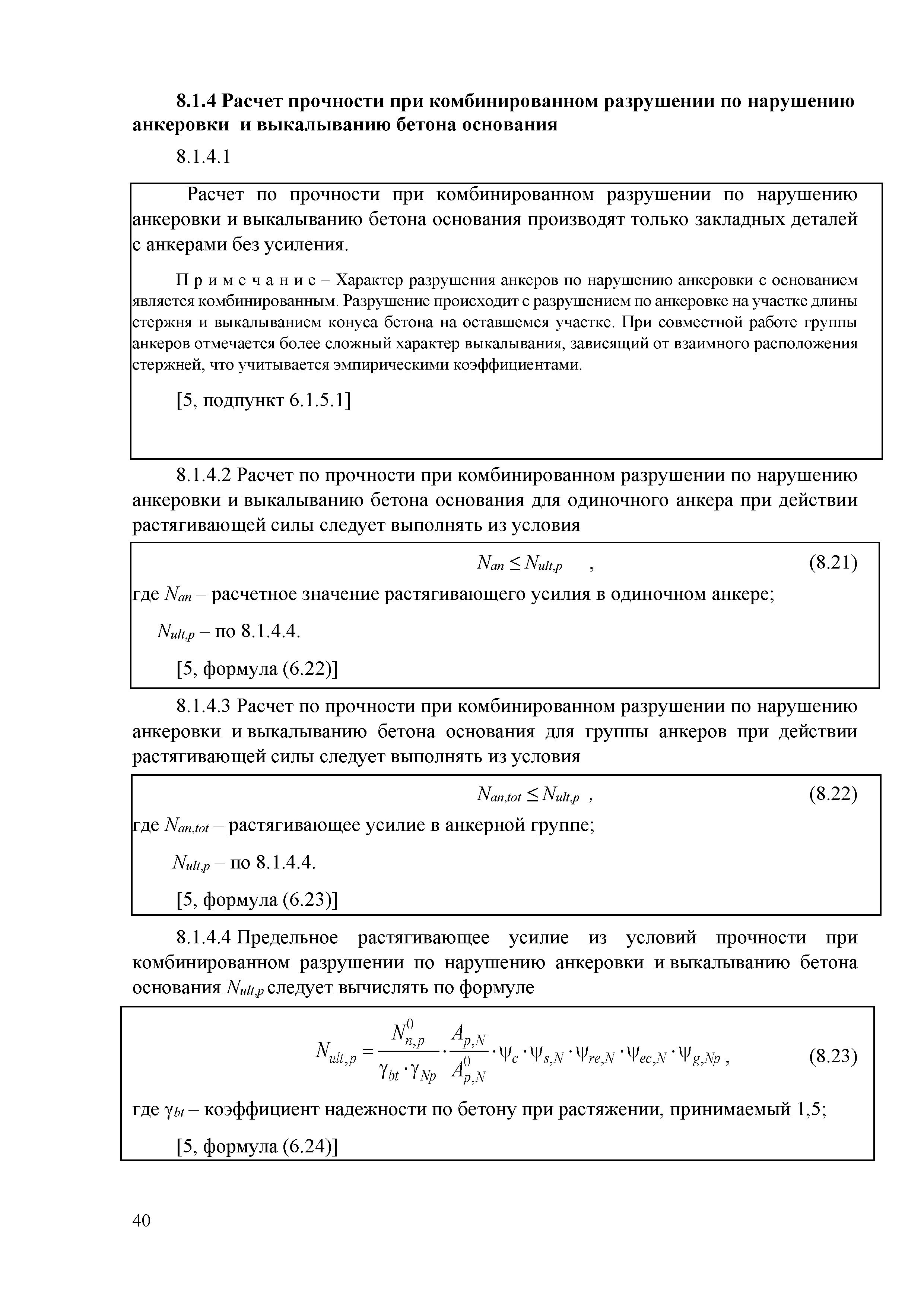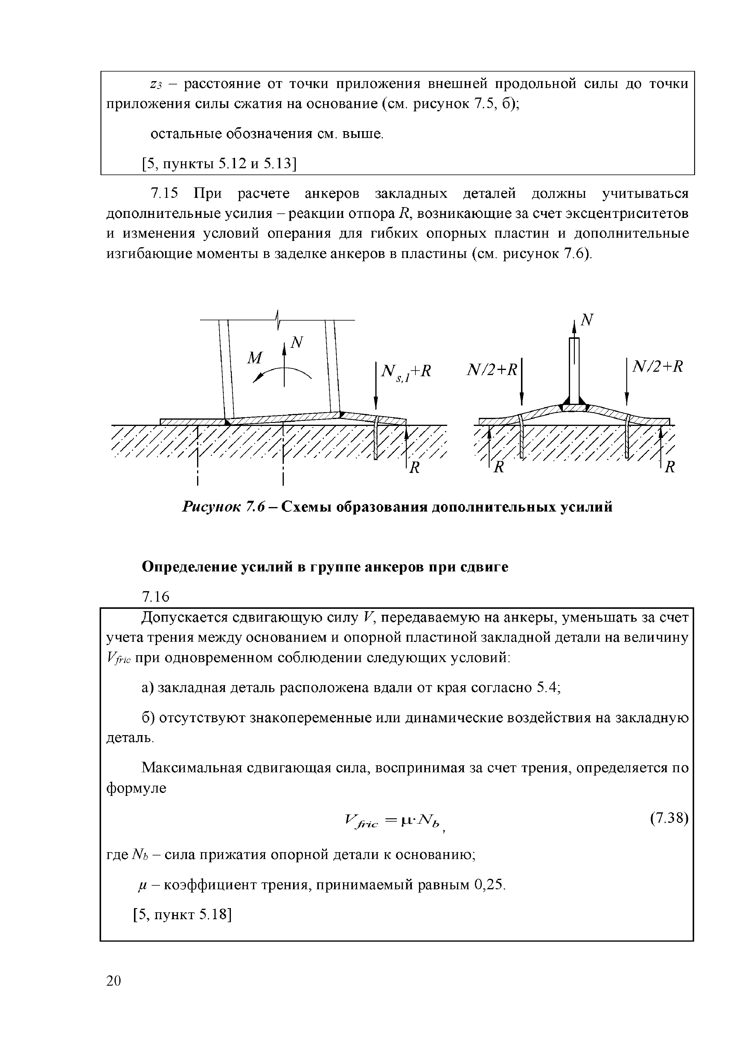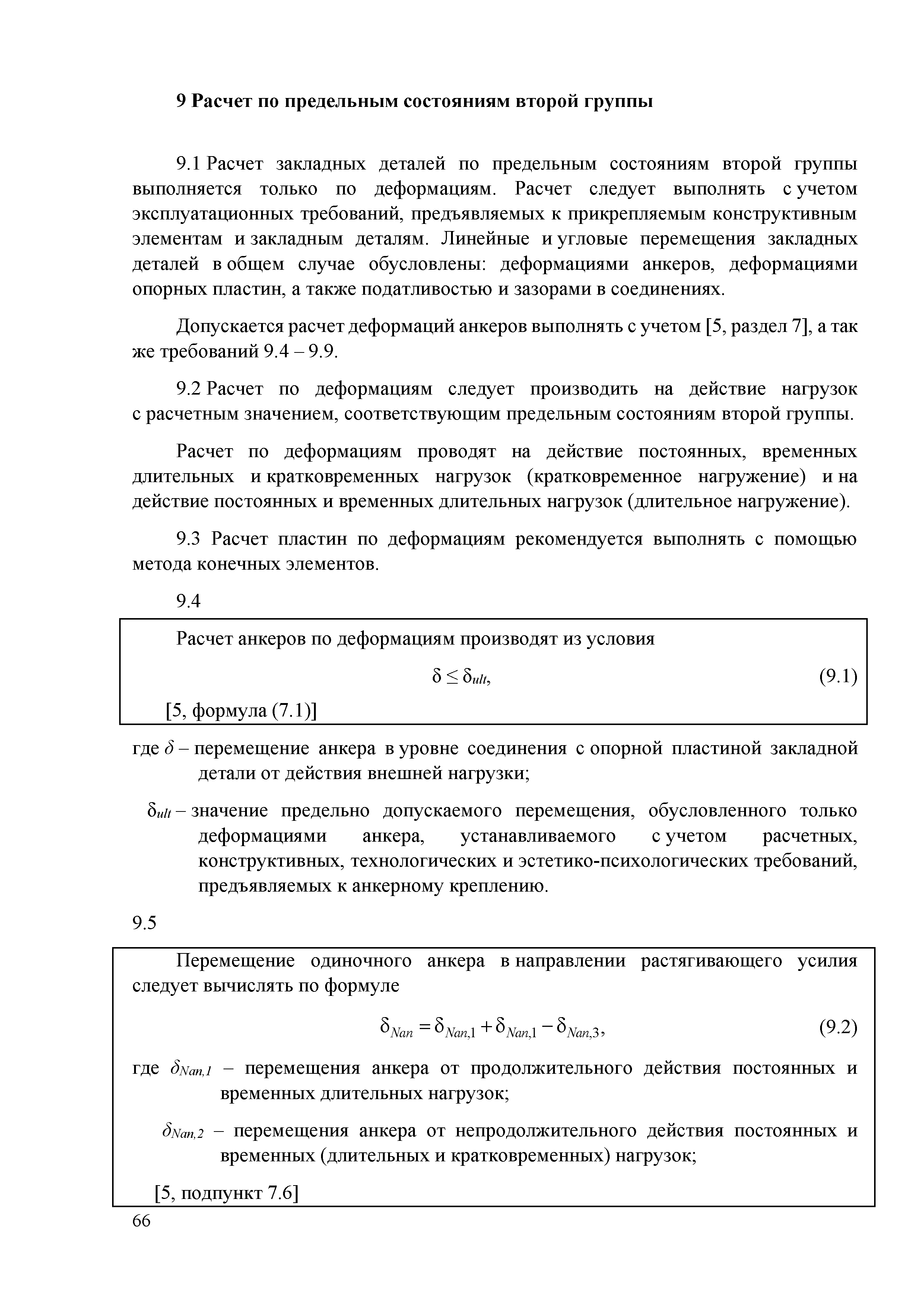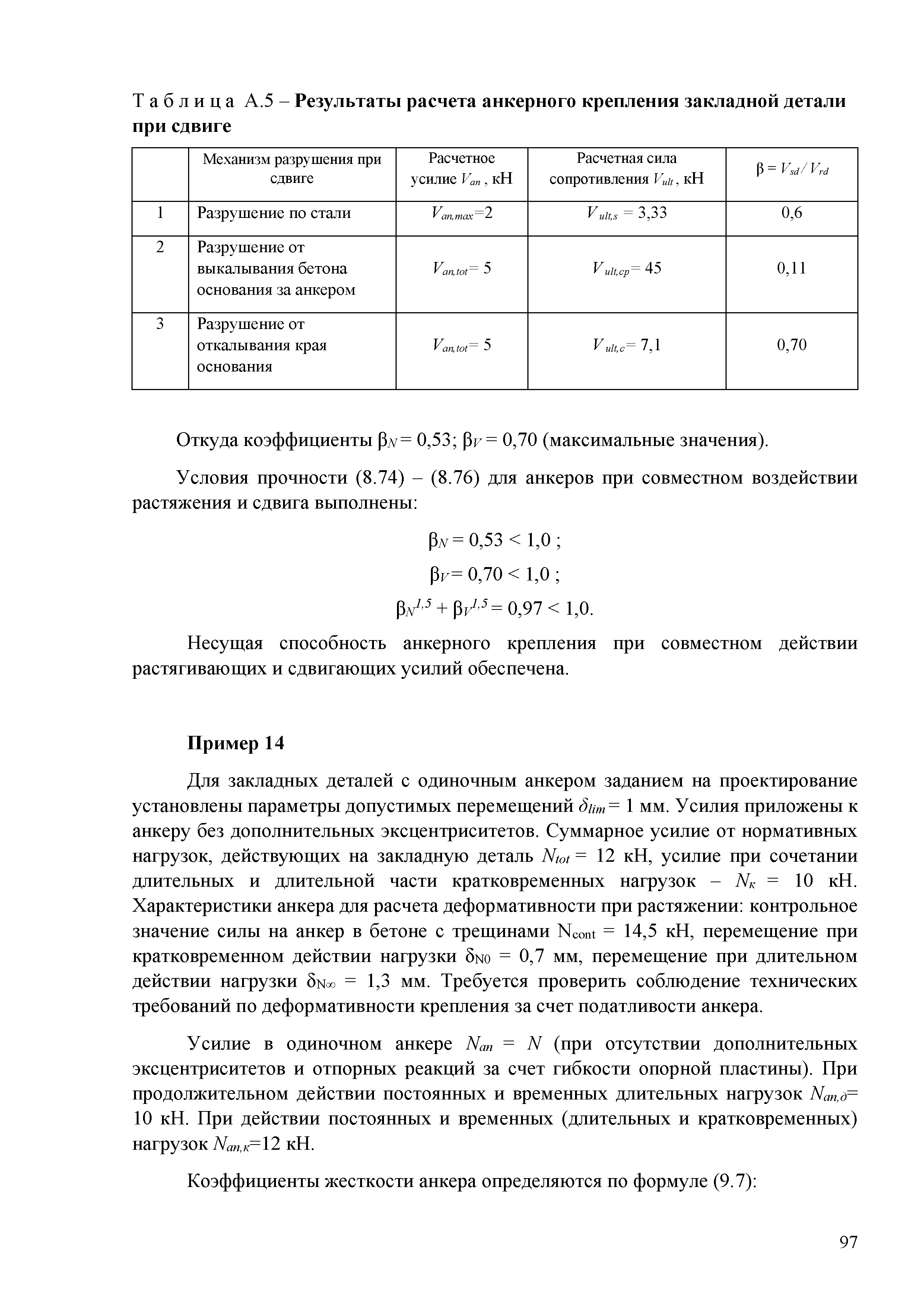 | Оглавление: | 1 Область применения 2 Нормативные ссылки 3 Термины, определения и обозначения 4 Классификация закладных деталей 5 Общие положения 6 Требования к материалам 7 Определение усилий 8 Расчет по предельным состояниям первой группы 9 Расчет по предельным состояниям второй группы 10 Конструктивные требования Приложение А Примеры расчетов Библиография |